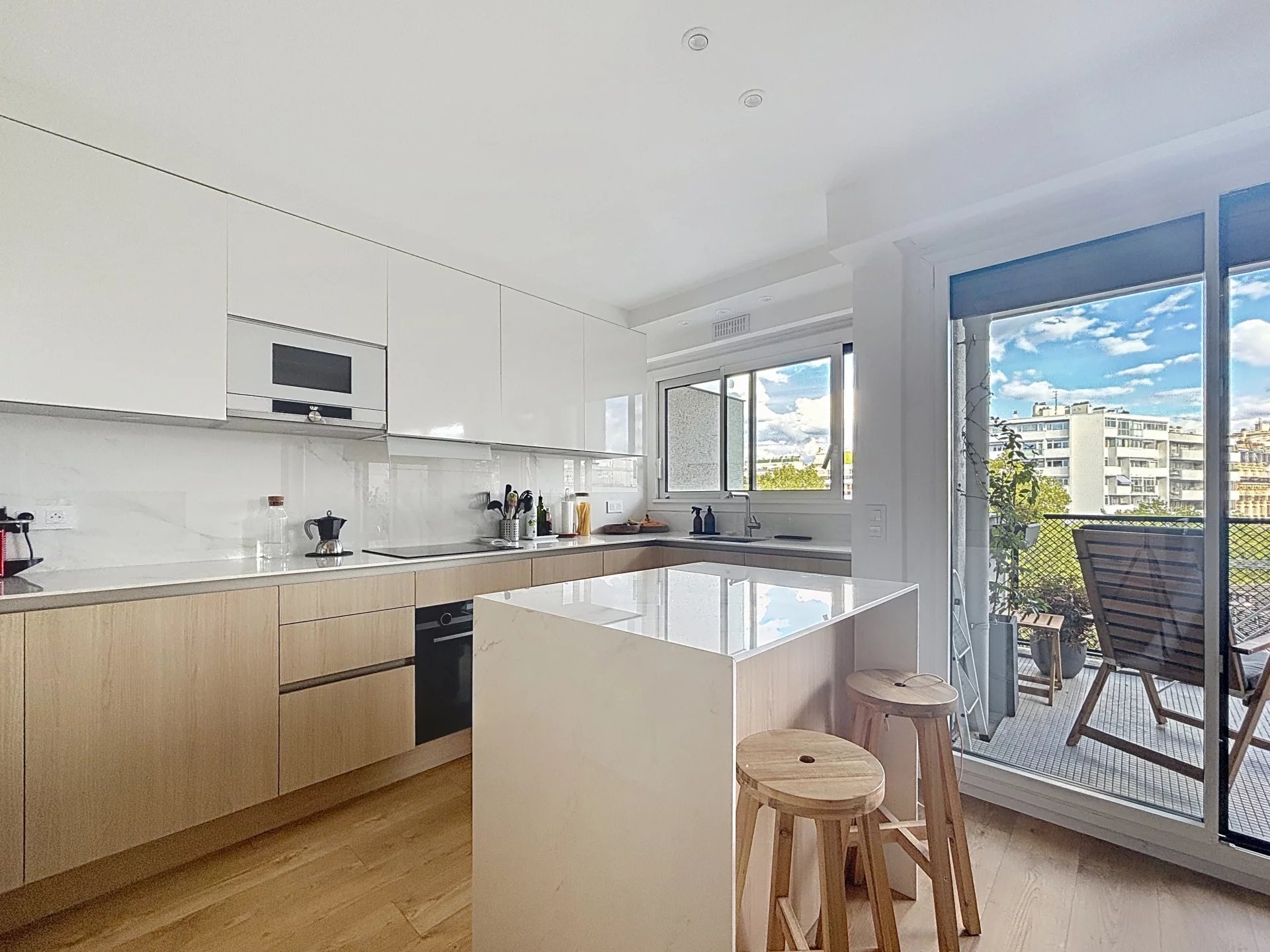 Situé dans le quartier Auteuil du 16è arrondissement, un appartement meublé de 78 m² avec balcon de 9m2 situé au 5 e étage avec ascenseur, entièrement rénové par un architecte.