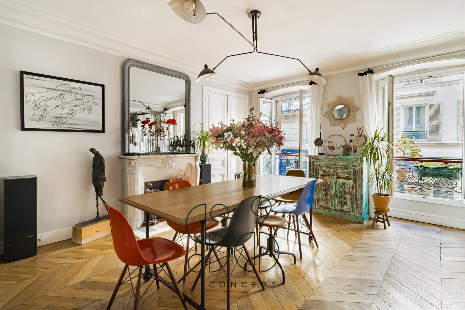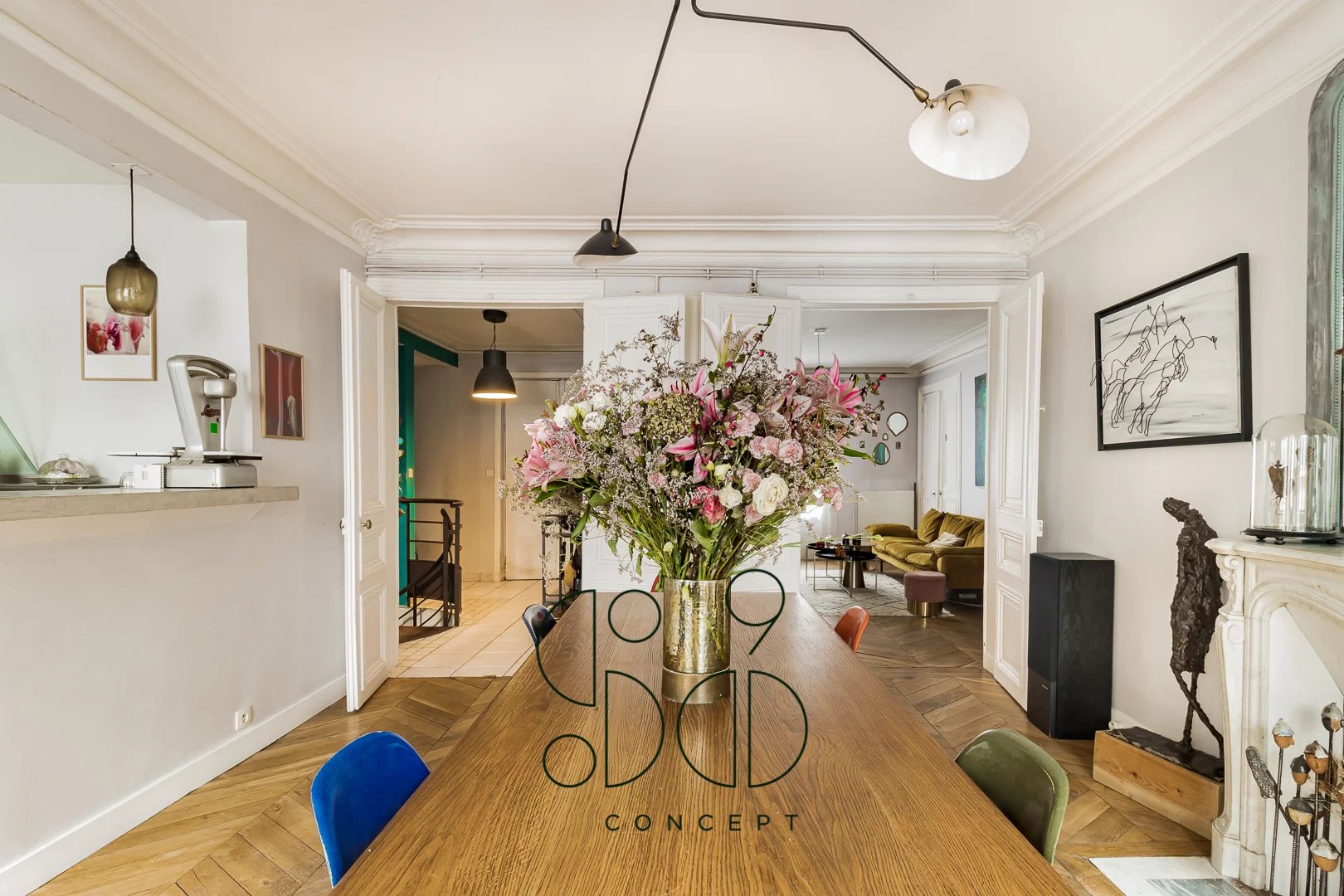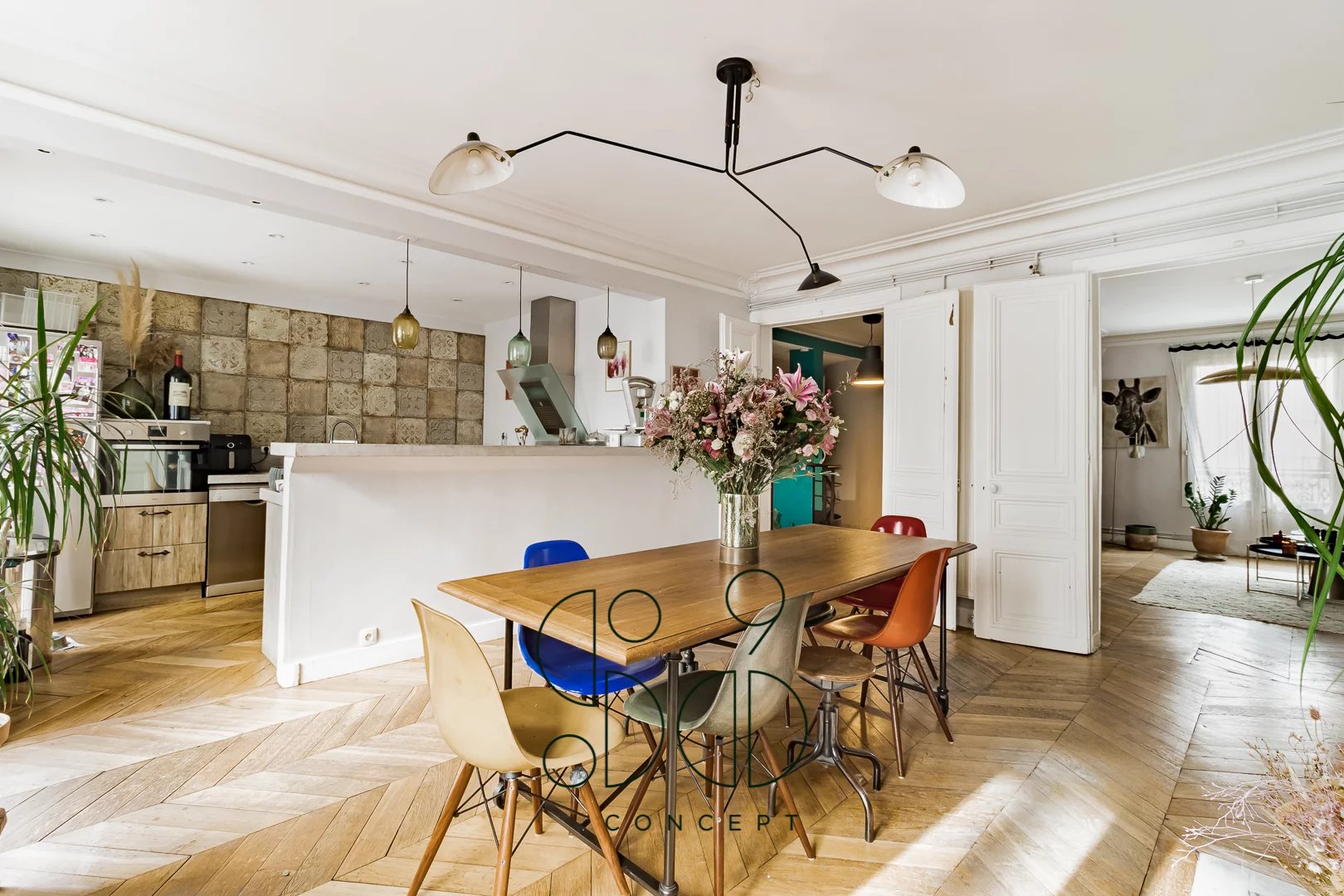 Découvrez cet appartement familial situé à deux pas de l'avenue Trudaine et de la rue des Martyrs, dans le quartier commerçant et très prisé du 9ème arrondissement au sein d'un bel immeuble en pierre de taille bien entretenu. Cet appartement, actuellement aménagé en duplex, est le résultat de la fusion de deux appartements, l'un de presque 30 m² et l'autre de 115 m², reliés par un escalier. Cette configuration offre une multitude de possibilités d'aménagement, que vous choisissiez de les garder séparés ou de les unifier en un seul espace. Le premier niveau, avec son accès direct, se compose d'une suite parentale avec salle d'eau, toilettes et de grands rangements historiquement une cuisine. L'étage supérieur, quant à lui, comprend une entrée menant à un bel espace de réception traversant de plus de 50 m², incluant un salon avec cuisine ouverte et une salle à manger. Autour de cet espace central s'organisent trois chambres, une salle de bain, une salle d'eau et des toilettes. Les étages peuvent être utilisés ensemble ou séparément, offrant ainsi la possibilité d'aménager un local professionnel libéral, un appartement indépendant pour une fille au pair ou pour la famille. Deux caves complètent ce bien. Des travaux de rafraichissement sont à prévoir. Ce que l'on aime : - le quartier commerçant et dynamique - les différentes options d'aménagement - les espaces de réception traversants et lumineux - la possibilité de créer une 5ème chambre