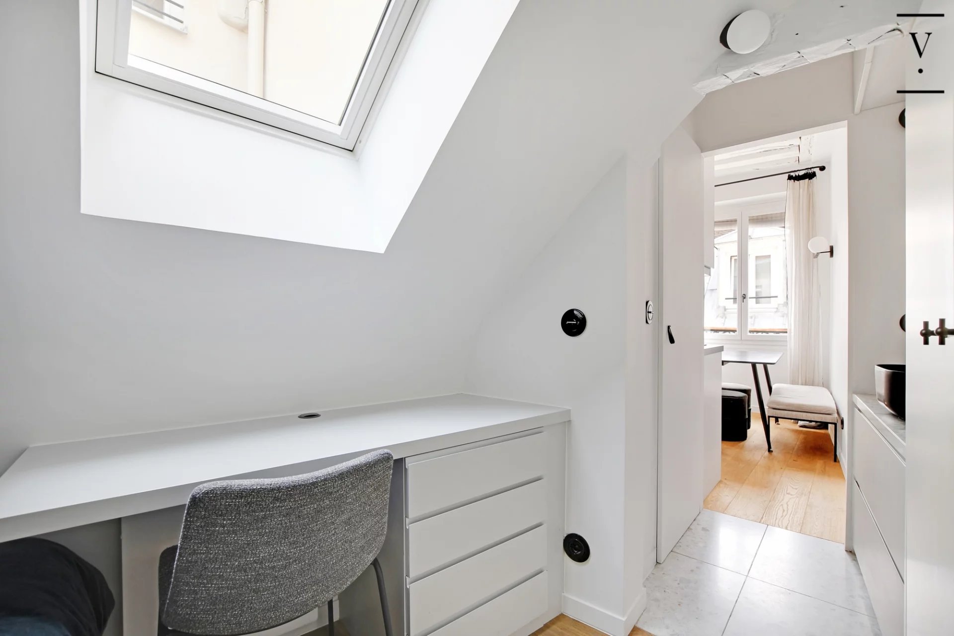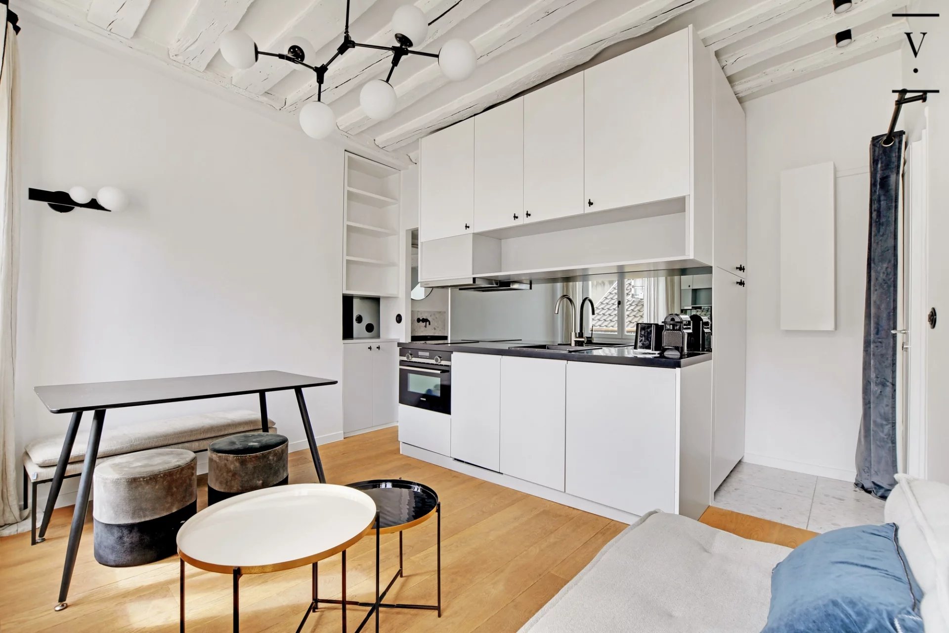 Cet appartement moderne et lumineux de 19,35 m² est idéalement situé à Saint-Gervais, dans le 4ème arrondissement de Paris. Doté d'une chambre confortable, il offre un agencement astucieux de deux pièces, parfait pour une optimisation de l'espace. L'appartement bénéficie de belles prestations, incluant des fenêtres à double vitrage assurant une isolation thermique et sonore optimale. La présence d'un digicode garantit un accès sécurisé à l'immeuble, offrant ainsi une tranquillité d'esprit à ses futurs occupants. Entièrement meublé avec goût, cet espace est prêt à accueillir ses nouveaux propriétaires sans travaux à prévoir. La décoration soignée et les équipements modernes en font un lieu de vie aussi esthétique que fonctionnel. Ne manquez pas cette opportunité unique !