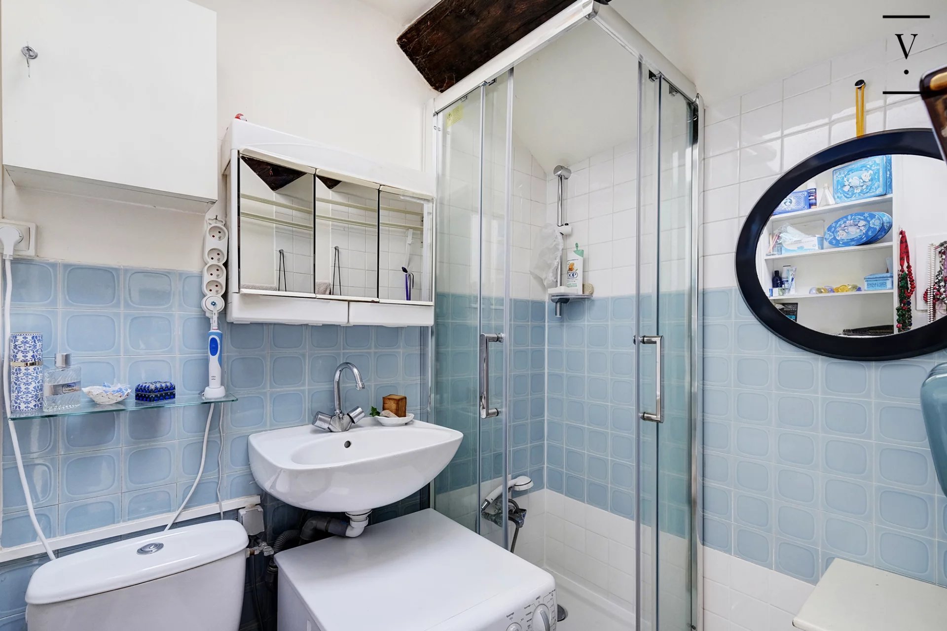 Villaret Immobilier vous propose un beau 2P de 50,16 m² au sol (38,68 m² Carrez) idéalement situé dans un magnifique immeuble de 1750 avec escalier inscrit aux Monuments Historiques et gardien à demeure. Au 4e étage et dernier étage par escalier au sein d'un hôtel particulier, il se compose d’une entrée avec rangements, d’une salle à manger avec cuisine semi-ouverte, d’un séjour lumineux exposé plein sud, d’une chambre et d’une salle d’eau avec WC. A RENOVER. Charme de l’ancien, vue dégagée sur une belle cour arborée et sur les toits. Prestations : gardien, vue dégagée, exposition SUD, lumineux et calme. Idéal première acquisition ou pied-à-terre.