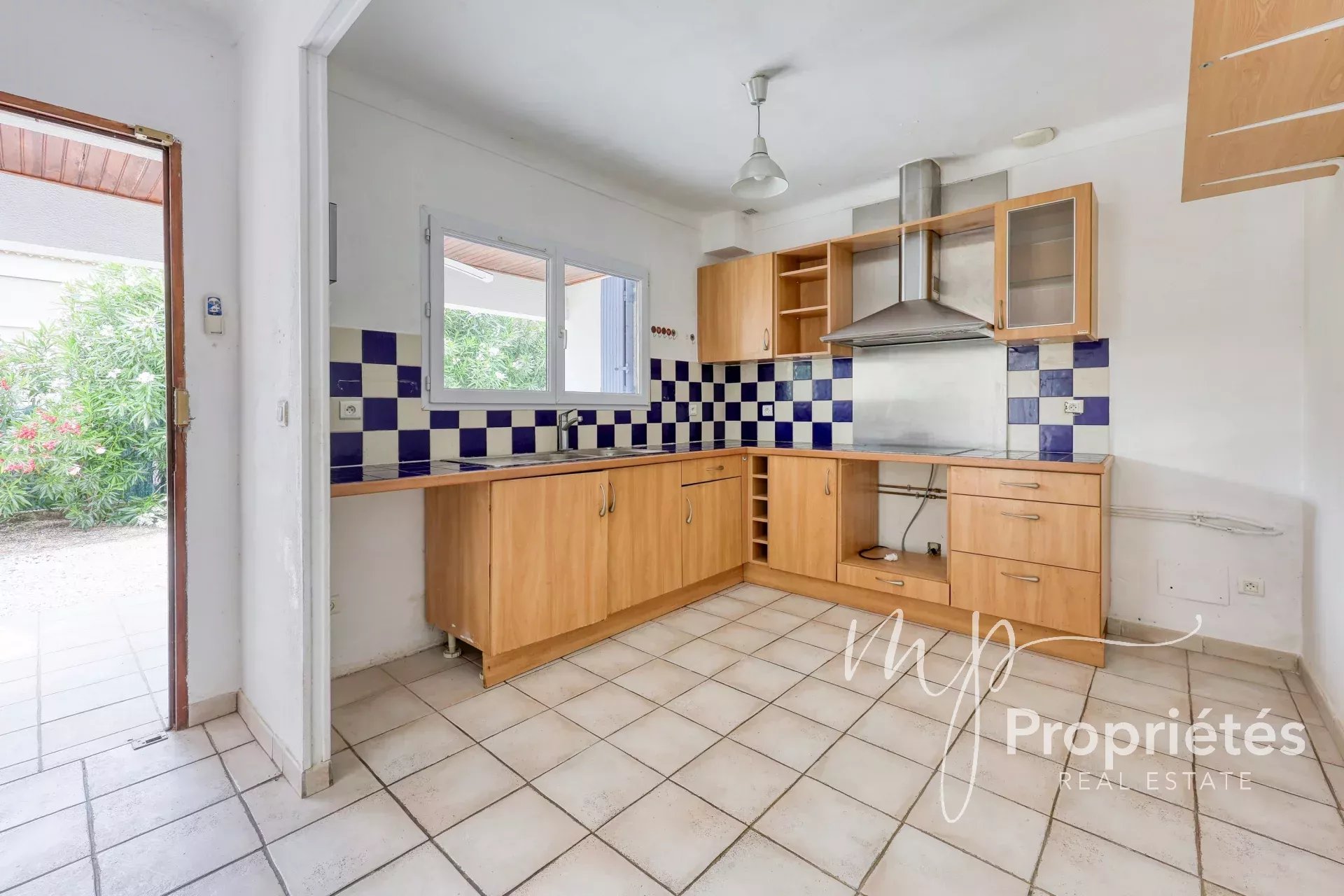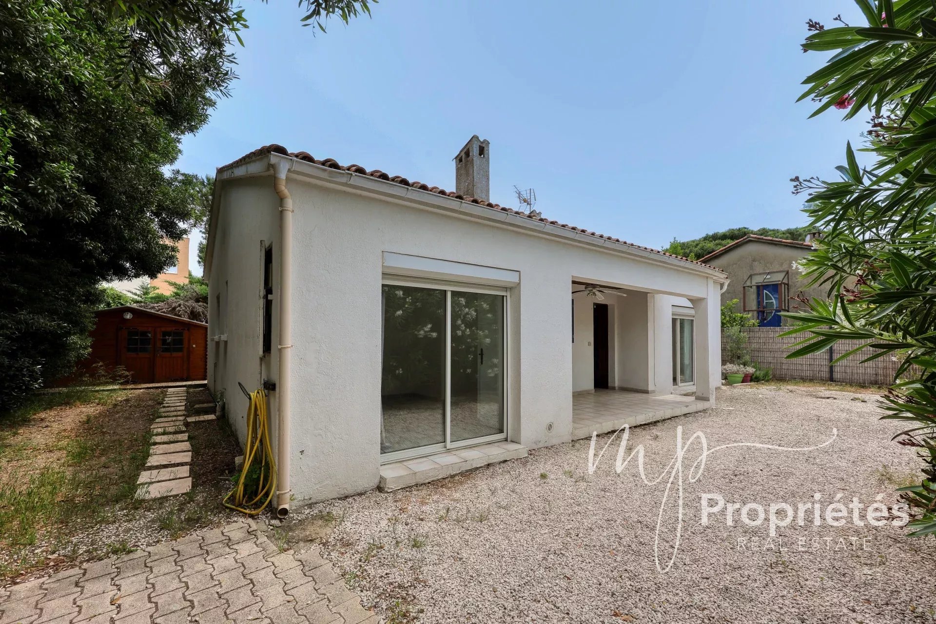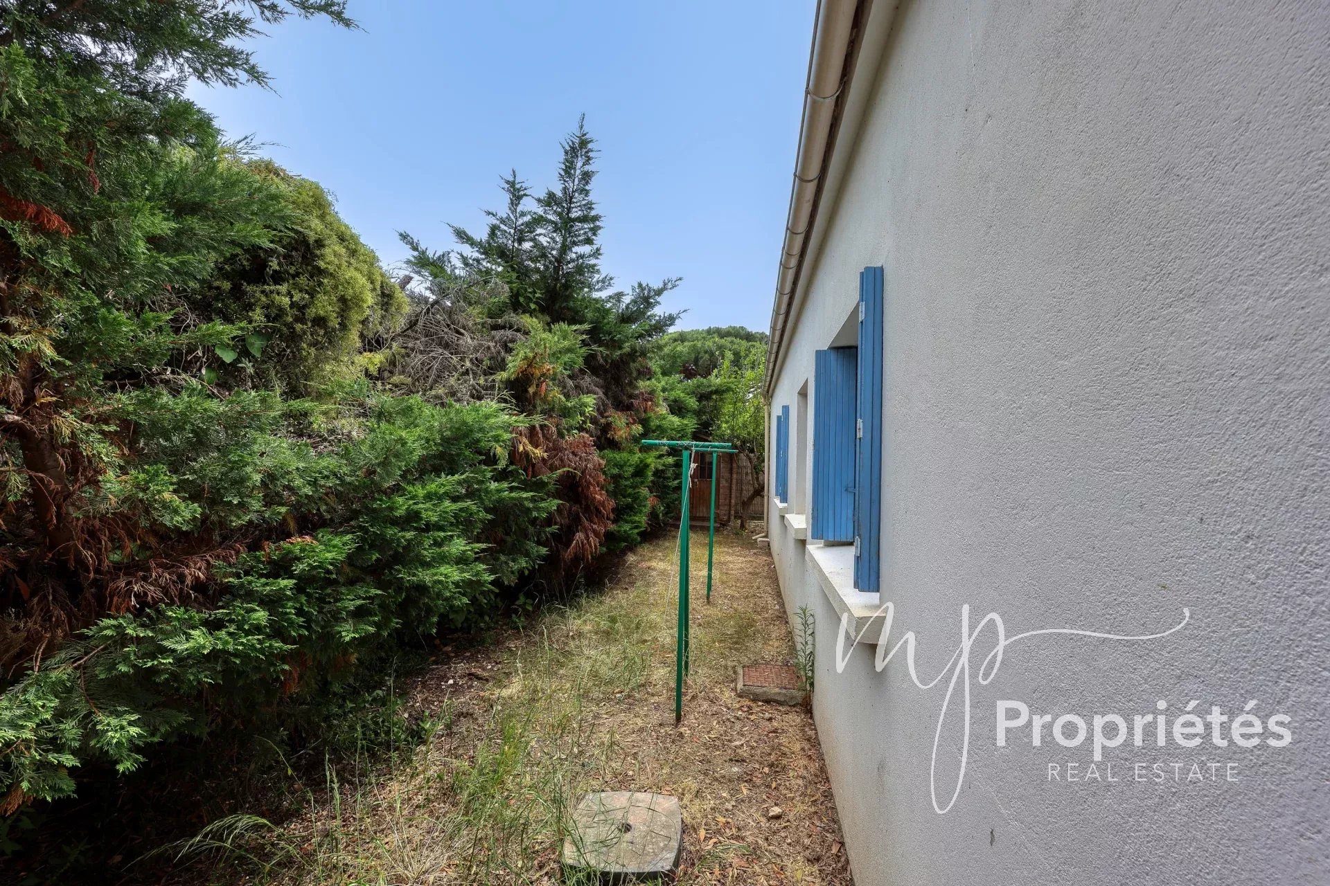 Située dans une impasse au calme absolu, à seulement 900 mètres des plages et du port et à 10 minutes à pied du centre-ville, cette maison de plain-pied de 90,47 m² habitables offre un cadre de vie paisible et agréable.
