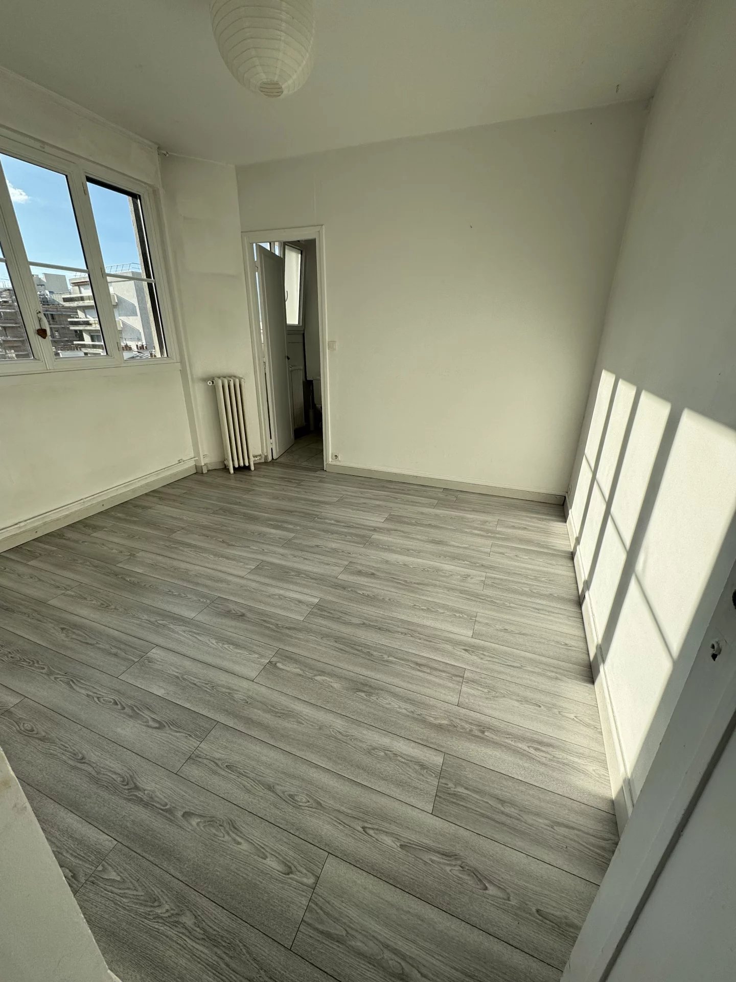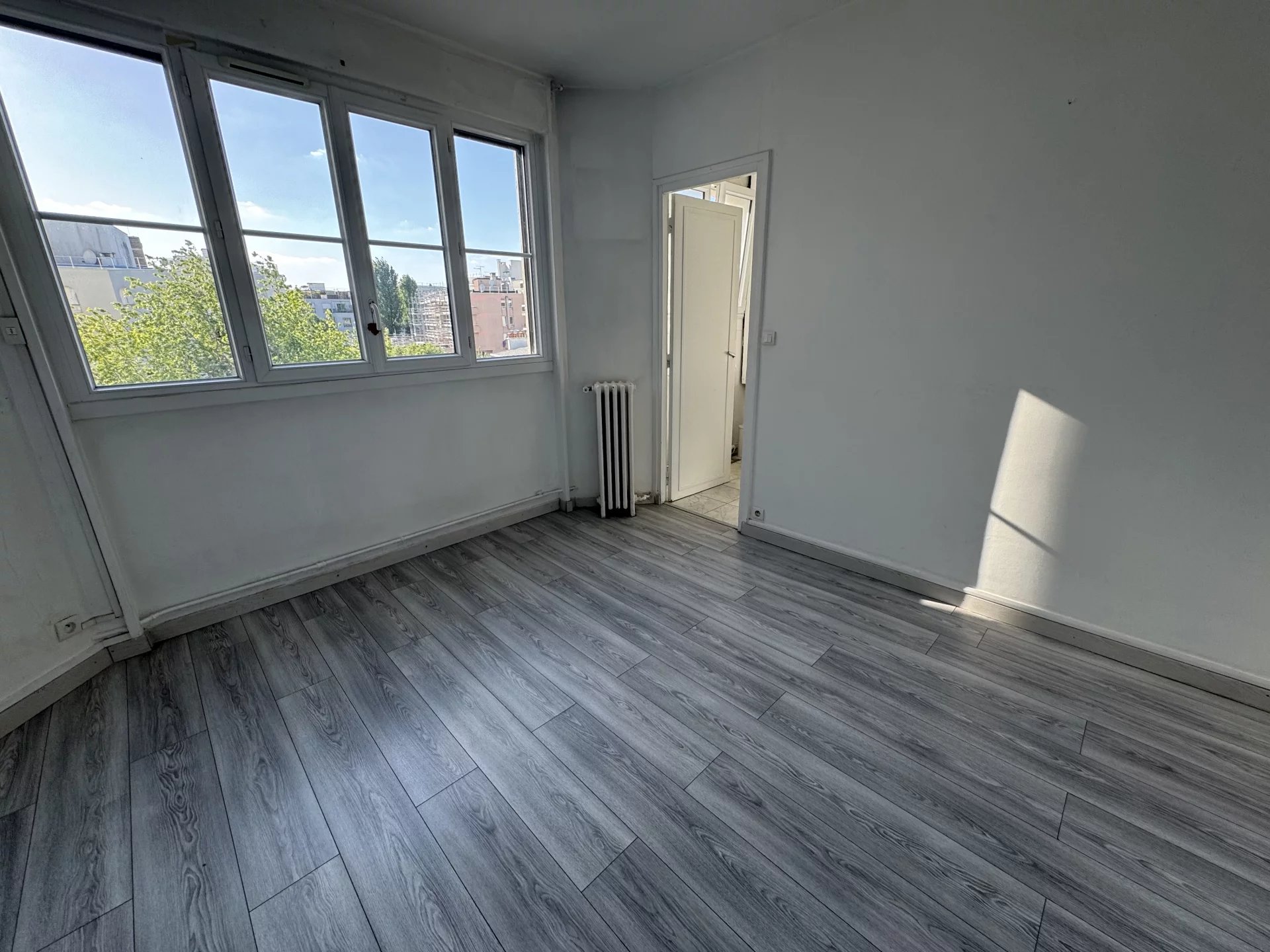 Entre Belleville et le parc des Buttes Chaumont, au 5eme étage avec ascenseur dans un magnifique immeuble art déco, un appartement exposé ouest, sans vis à vis et au calme, composé d'une petite entrée, une chambre, une salle de bains avec WC, un salon et une cuisine séparée ouvrable sur le séjour. Local à vélos. Gardiennage.