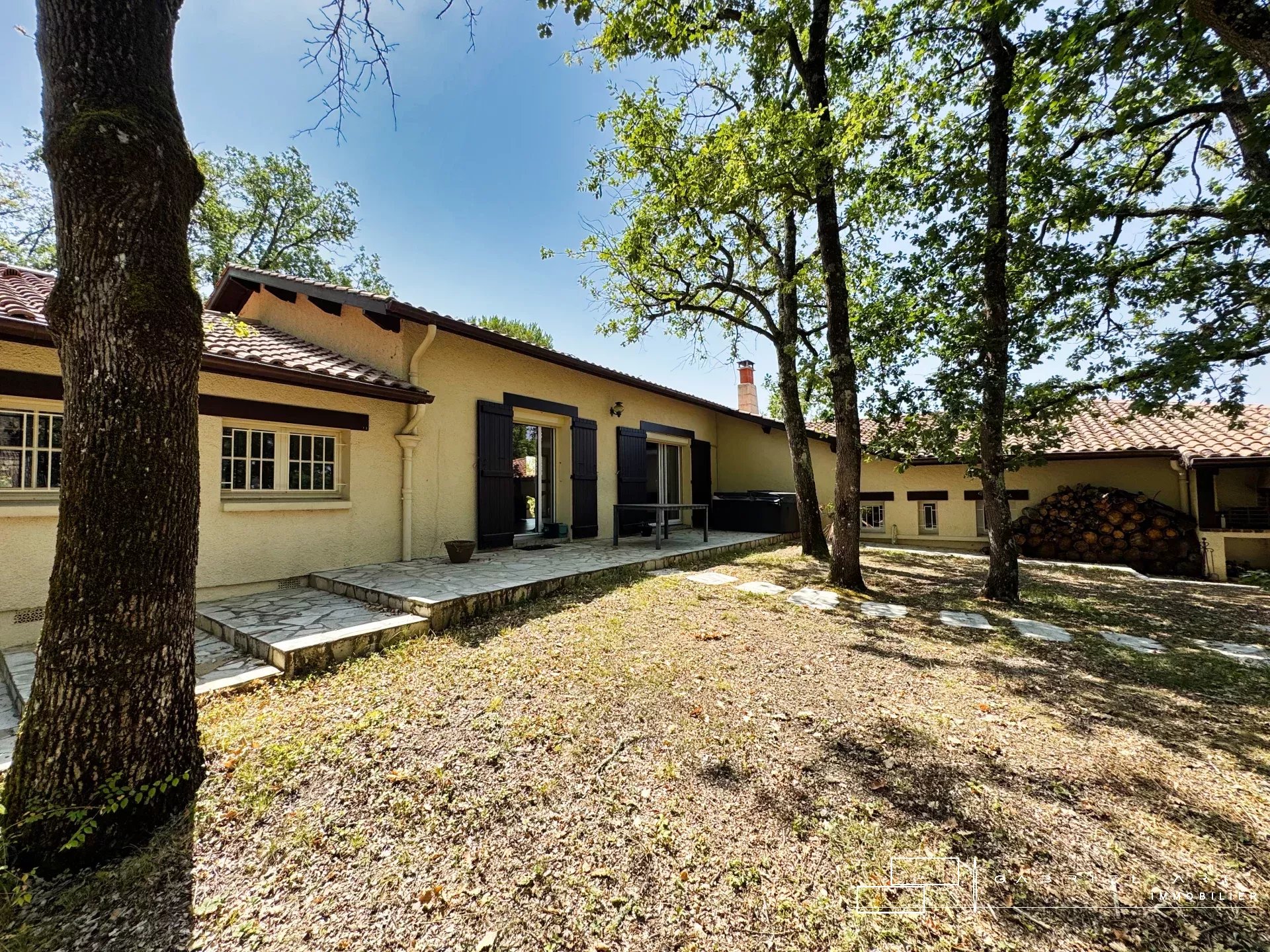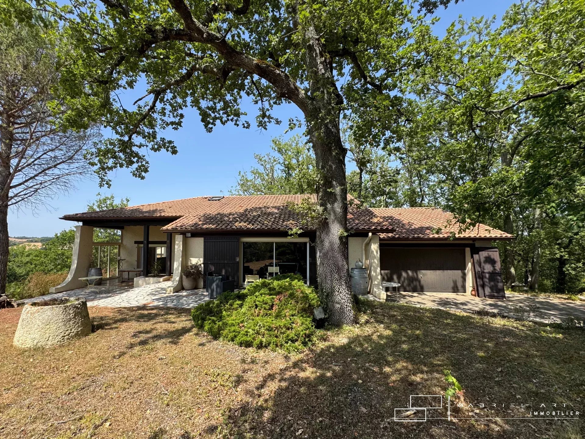 Bâtie au sommet d'une colline, dans un écrin de verdure, cette construction de qualité offre de nombreux atouts : la proximité des commerces, une belle superficie, la climatisation, une salle de billard avec un bar, cinq chambres, un SPA et un grand garage fonctionnel. Elle bénéficie de deux belles terrasses agréables et idéales pour toutes les saisons.
