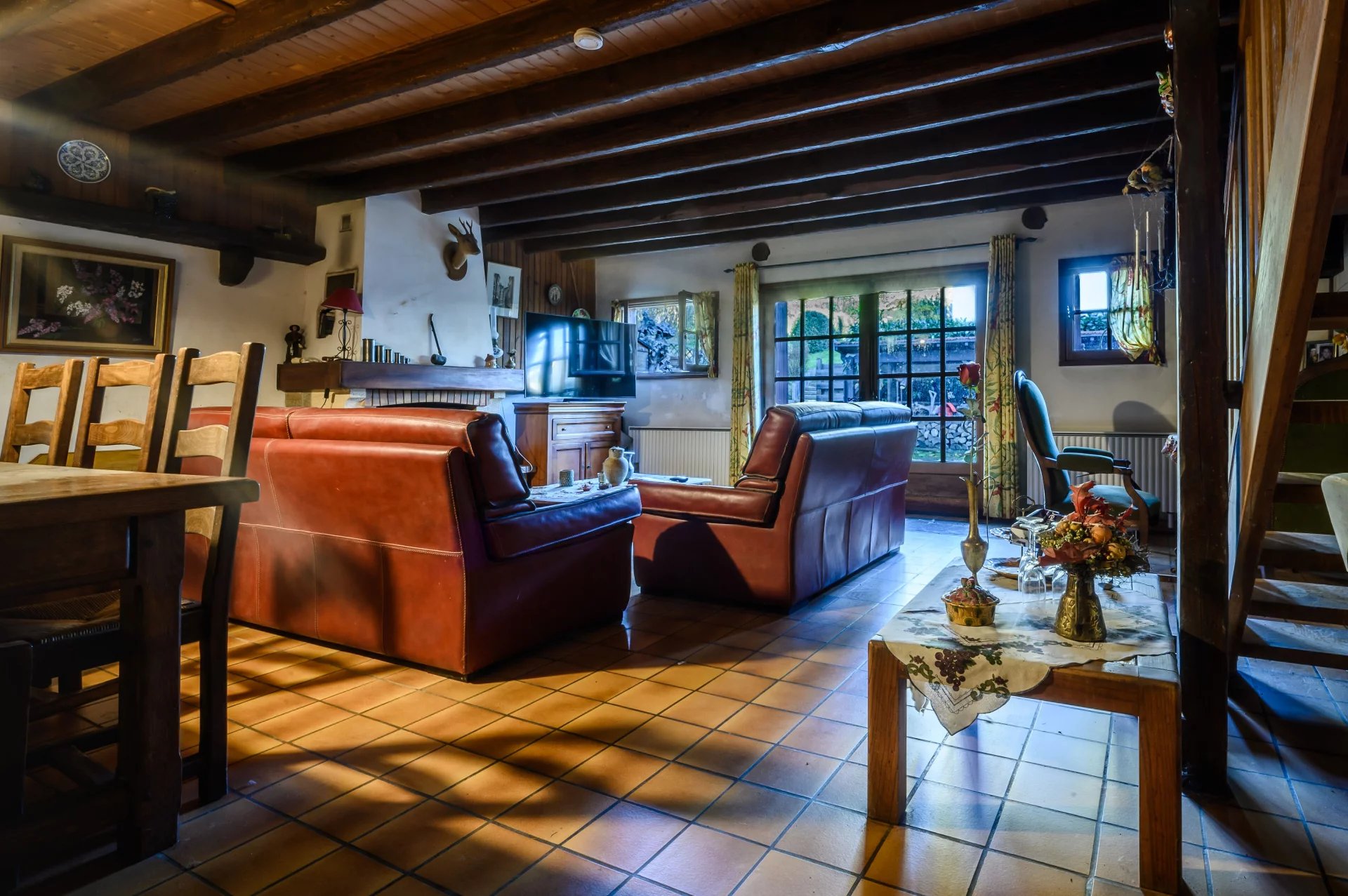 Pièces de vie : Un vaste salon de plain pied avec une cheminée chaleureuse, parfait pour vos soirées d'hiver.