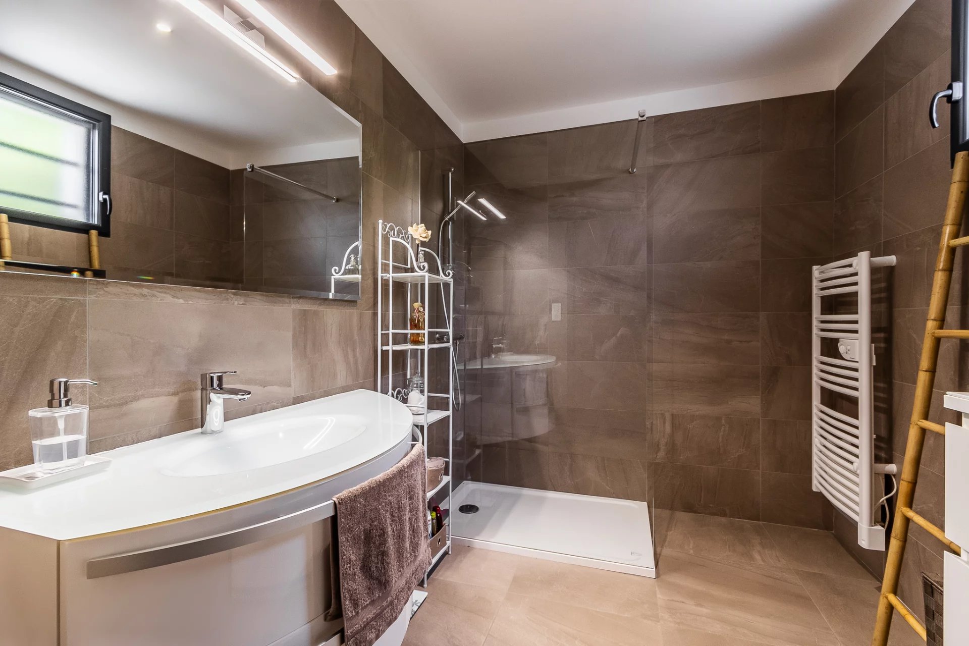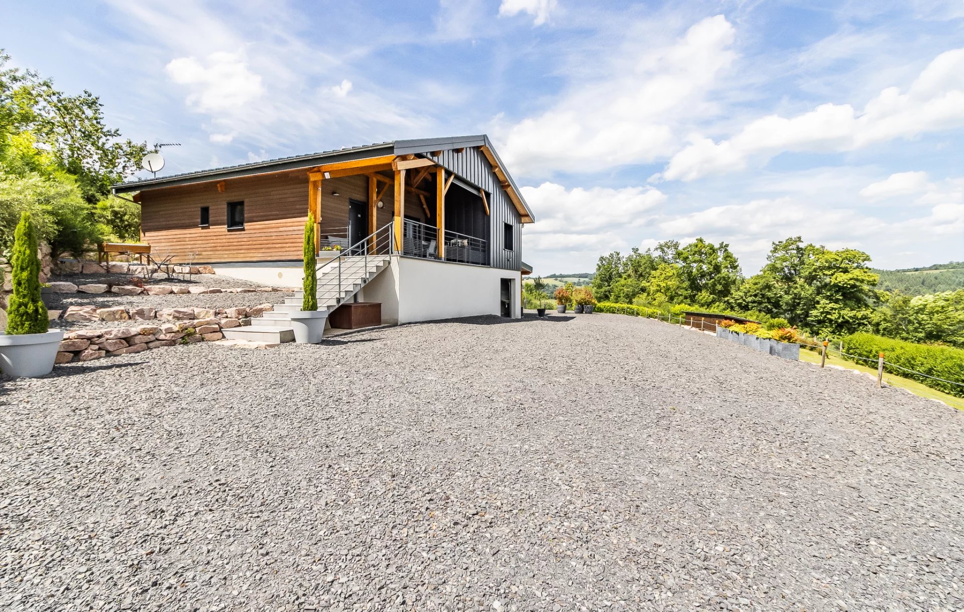 Terrasse couverte : Une terrasse spacieuse de 23 m², idéale pour vos repas en plein air et moments de détente, tout en admirant le panorama exceptionnel.