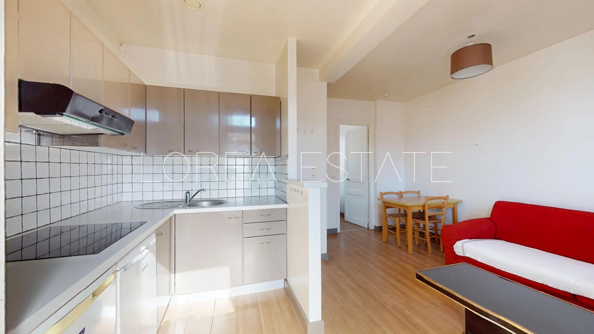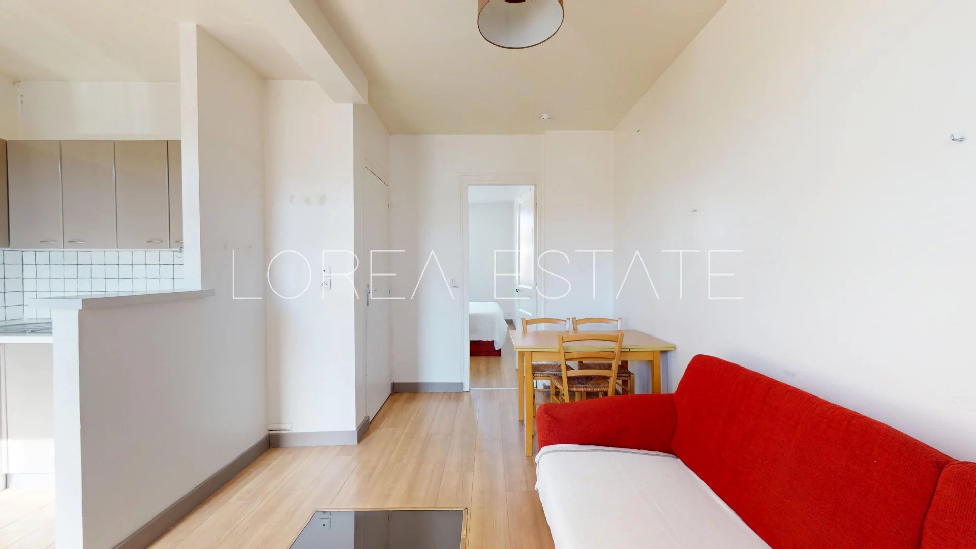 L’appartement se compose d’une pièce de vie regroupant le salon et la cuisine, d’une grande chambre, ainsi que d’une salle d’eau avec WC. Une cave vient compléter ce bien, offrant un espace de rangement supplémentaire apprécié.