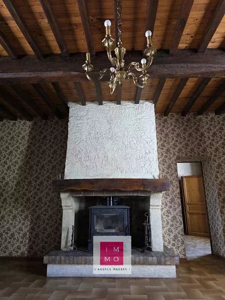 La porte d'entrée s'ouvre l'espace de jour qui s'organise autour d'un séjour avec cheminée/poêle à bois, une grande cuisine, une arriéré cuisine, buanderie, chaufferie et les toilettes séparées.