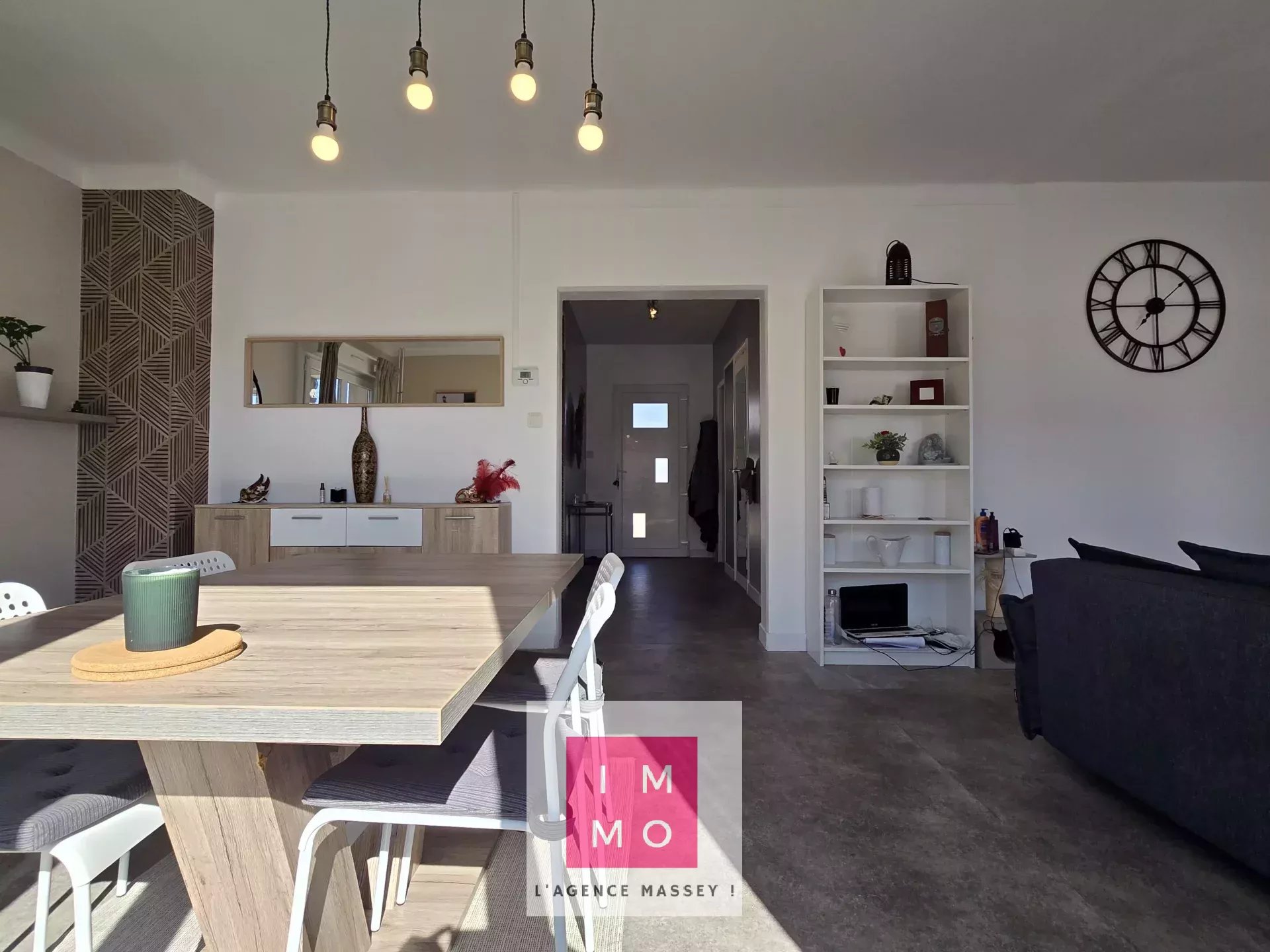 La porte d'entrée s'ouvre sur un espace d'accueil avec vestiaire. L'espace de jour est séparé de l'espace nuit, l'agencement est contemporain.