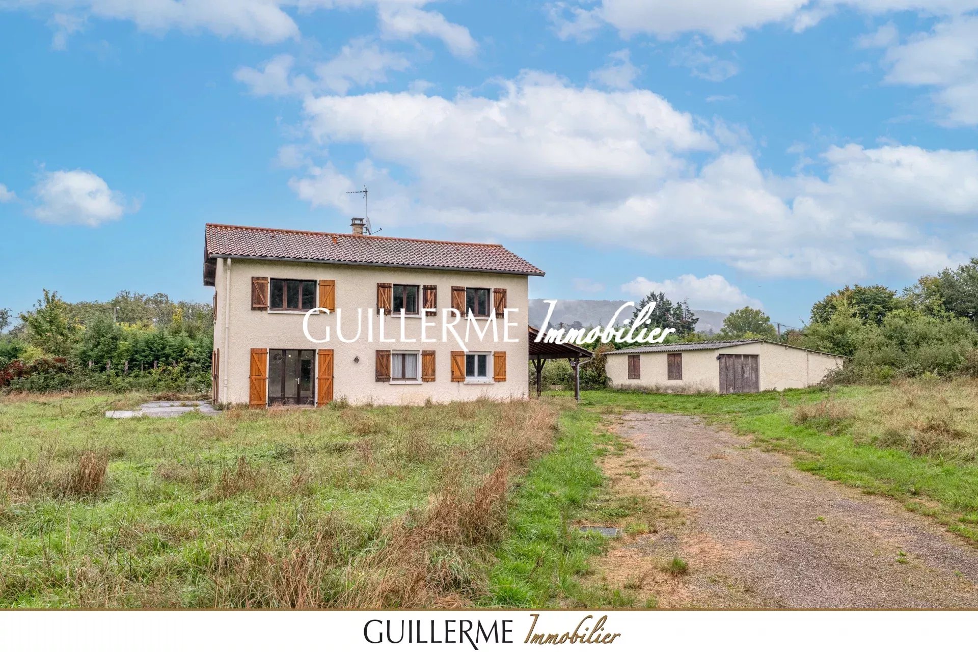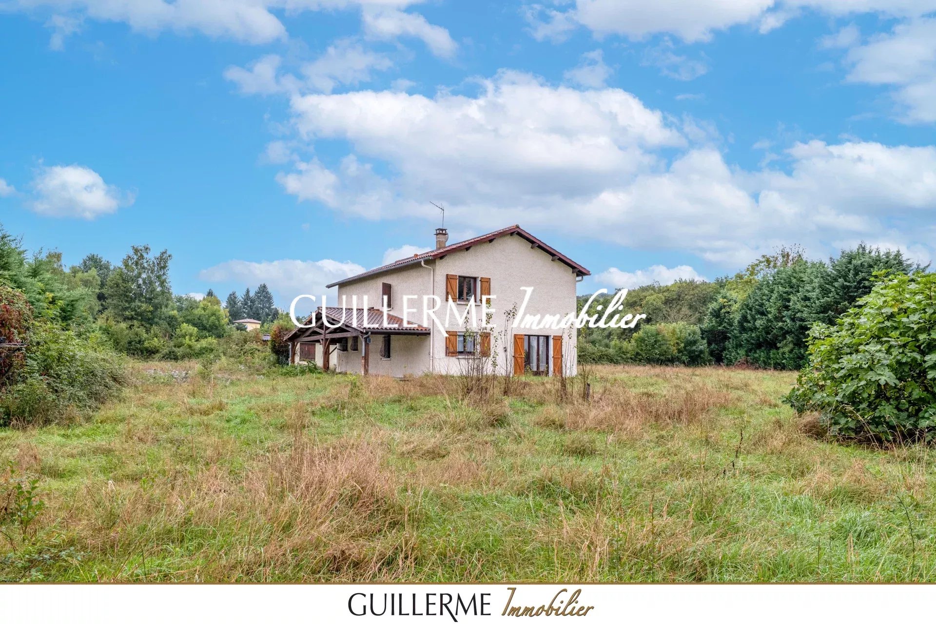 Votre Agence Guillerme Immobilier vous propose à la vente cette spacieuse maison d’environ 173 m² habitables avec garage indépendant de 54 m², implantée sur un vaste terrain arboré de 4 622 m² en zone naturelle (non constructible).