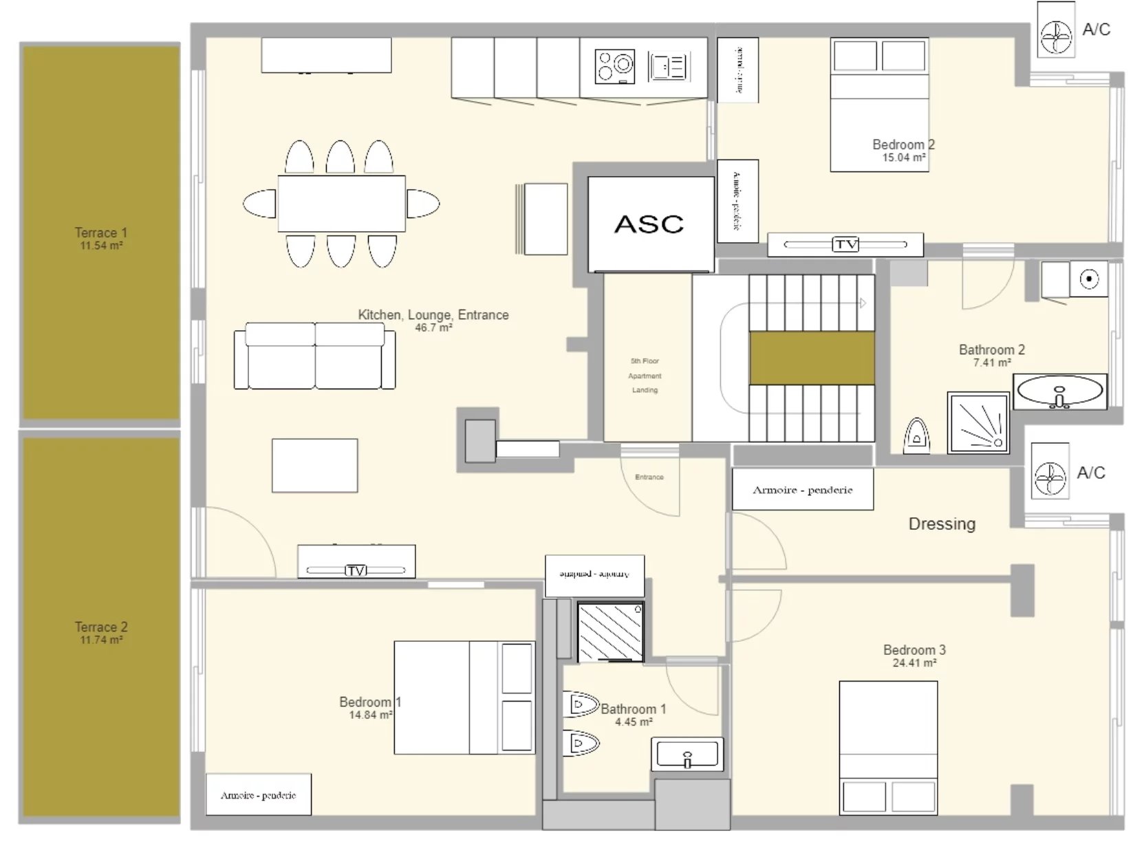 •Troisième chambre avec salle d’eau et toilettes.