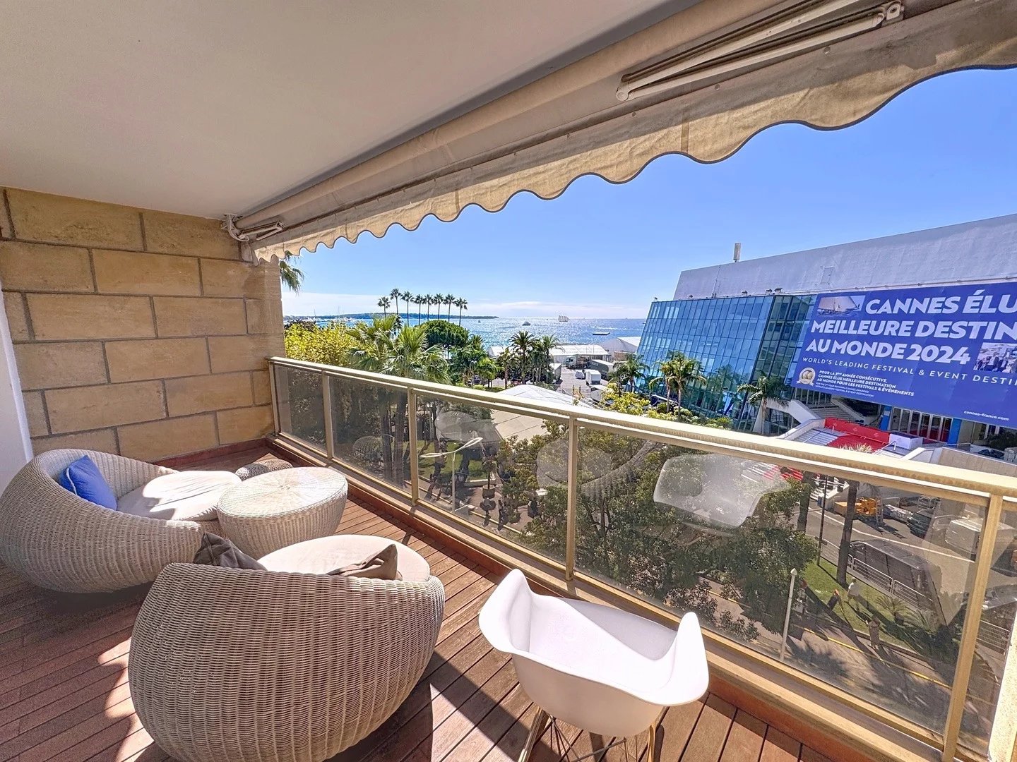 Situé au 5ᵉ étage de l’une des résidences les plus prestigieuses de Cannes, face au Palais des Festivals et au-dessus de la célèbre boutique CHANEL, ce bien rare offre 111,15 m² d’espaces raffinés (102,73 m² Carrez) avec un panorama spectaculaire sur le tapis rouge et la Méditerranée.