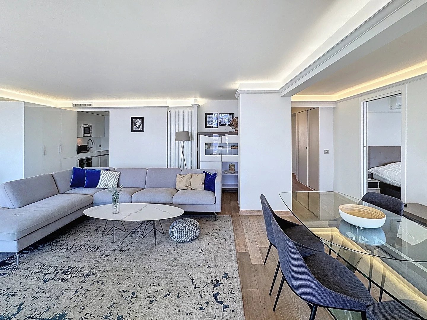 Idéalement placé au cœur de Cannes, à quelques pas de la Croisette, des restaurants gastronomiques, des boutiques de luxe et des plages dorées, cet appartement incarne le style de vie ultime de la Riviera — aussi parfait pour accueillir lors des congrès internationaux que pour profiter d’une élégante escapade en bord de mer.