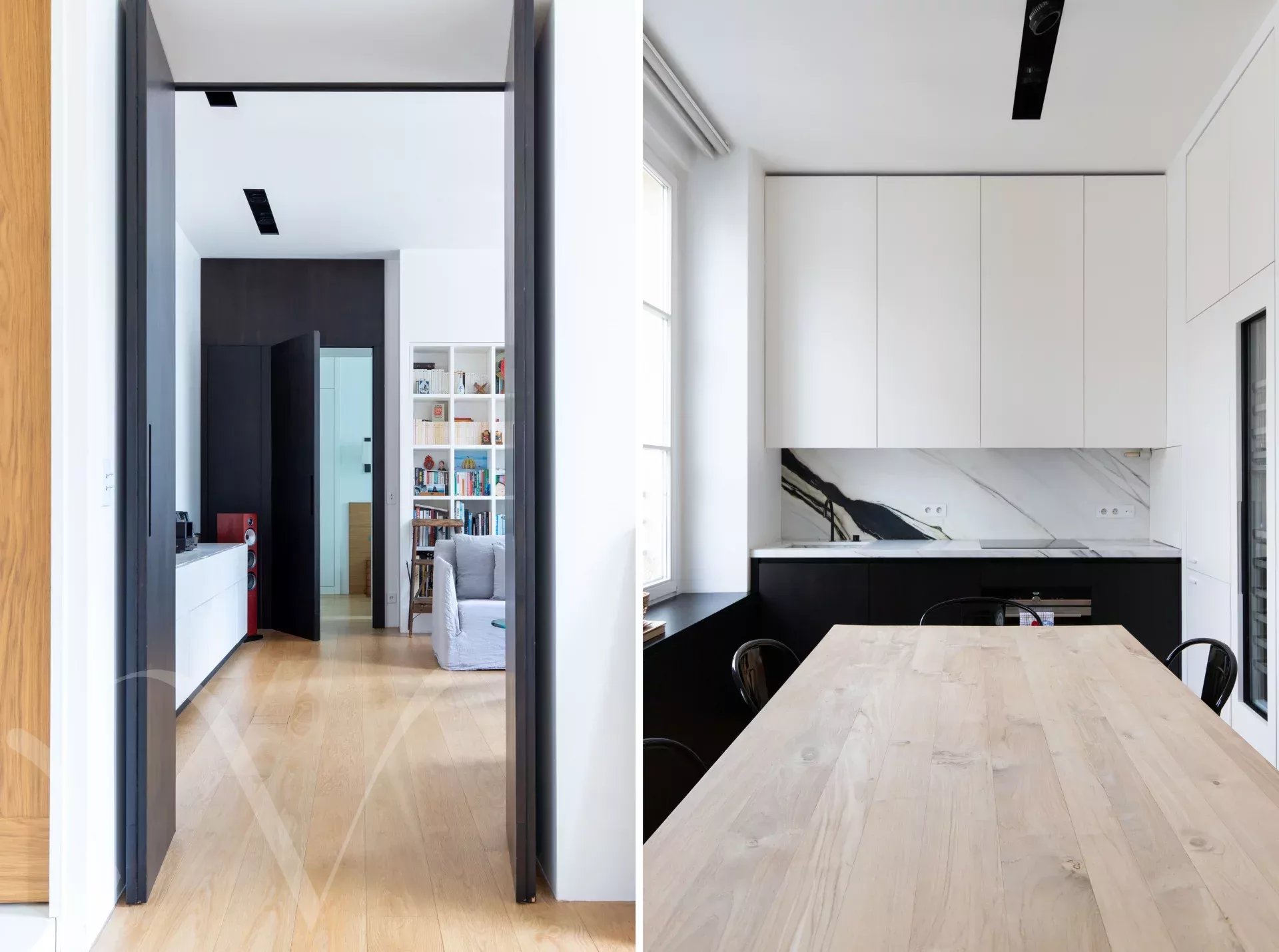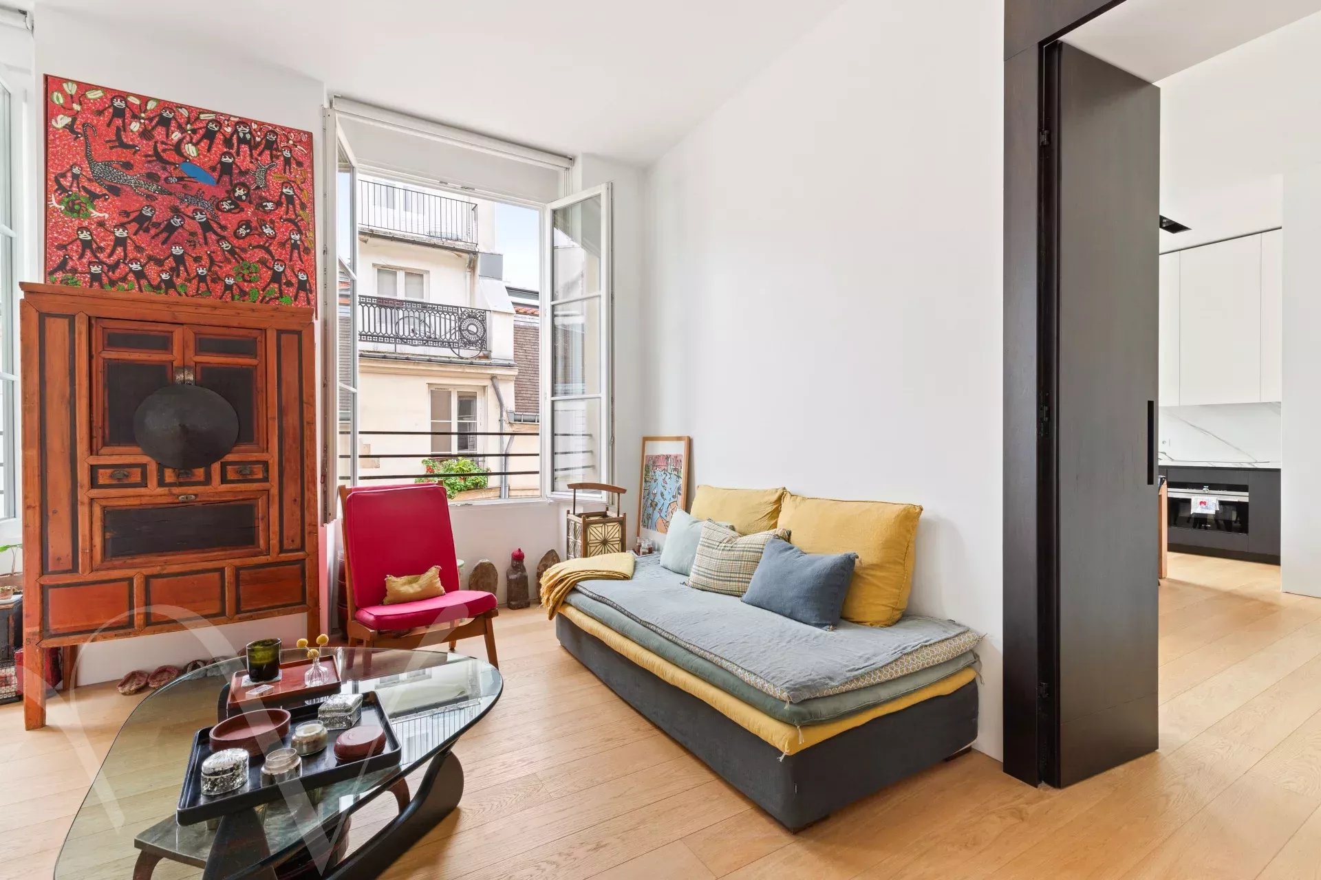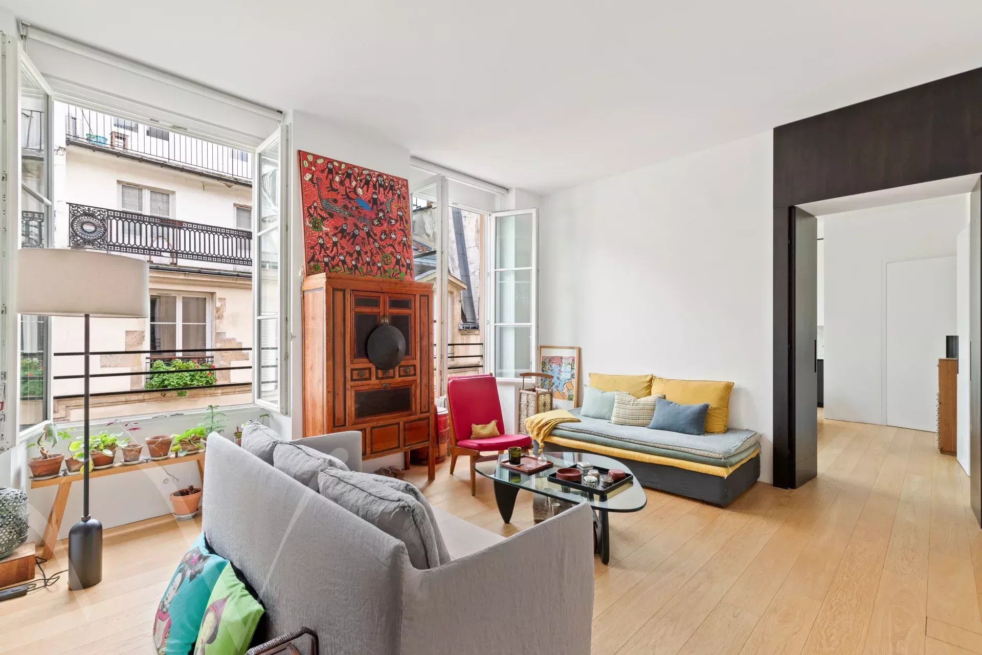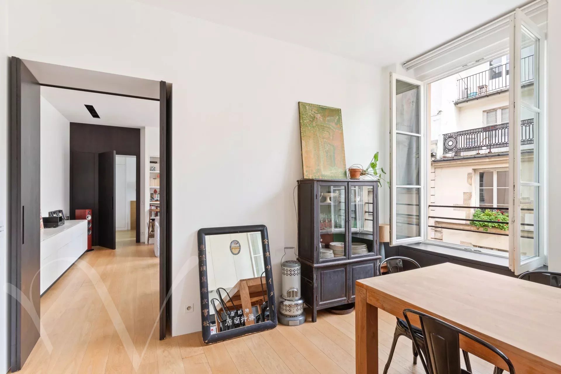 Rue de l'Odéon, entre le jardin du Luxembourg et Saint Germain des Prés, au troisième étage sans ascenseur d'un bel immeuble XVIIIème, un appartement de 74.70 m² loi Carrez et 79.20 m² au sol. L'appartement se compose d'une entrée, une salle à manger avec cuisine ouverte, un beau salon, une chambre sur rue, une chambre sur cour, une salle d'eau, wc séparés, espace buanderie, nombreux rangements. L'appartement a été rénové avec des matériaux haut de gamme, il est clé en mains et se démarque par la qualité exceptionnelle des travaux. La hauteur sous plafond de 3.10 mètres et les nombreuses fenêtres lui confèrent une très belle luminosité.