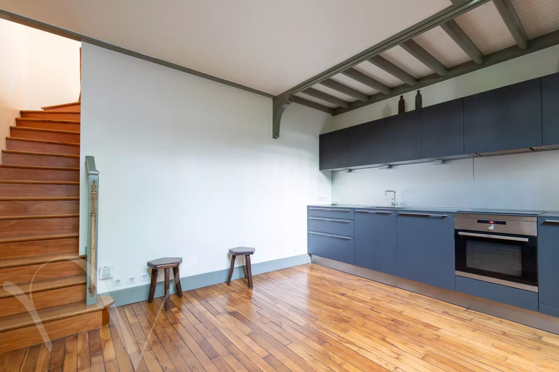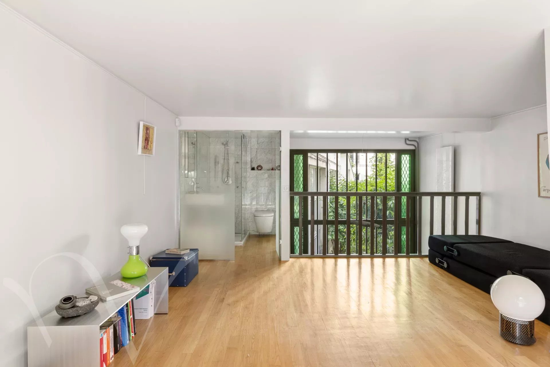 Exclusivité. Un bel atelier d'artiste de 42.5 m² en parfait état au sein d'une copropriété charmante au coeur du quartier Edgar Quinet, offrant une double exposition sur rue et cour jardin. Au rez-de-cour, se trouve une pièce de réception avec espace cuisine et une large verrière atelier. A l'étage, une grande chambre avec salle d'eau et toilettes, traversante entre rue et cour. Les huisseries et vitraux ont été rénovés récemment par des artisans de qualité. Proche de la gare Montparnasse, cet atelier est un lieu calme et rare au coeur d'un quartier animé par les restaurants, cinémas et commerces à toute proximité.