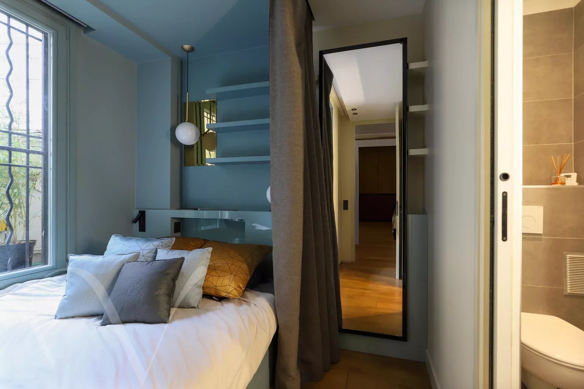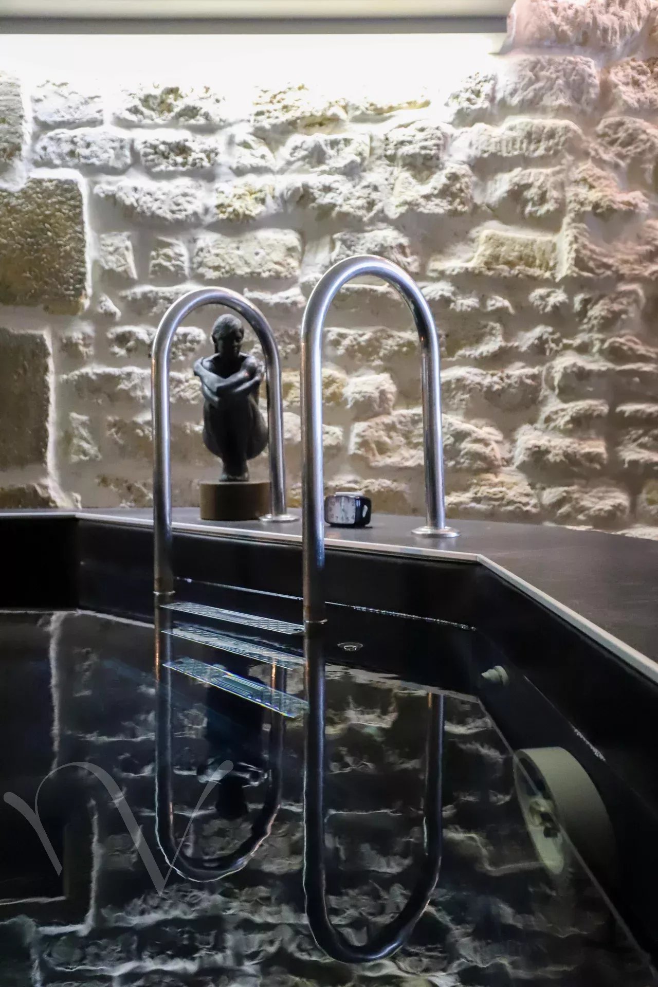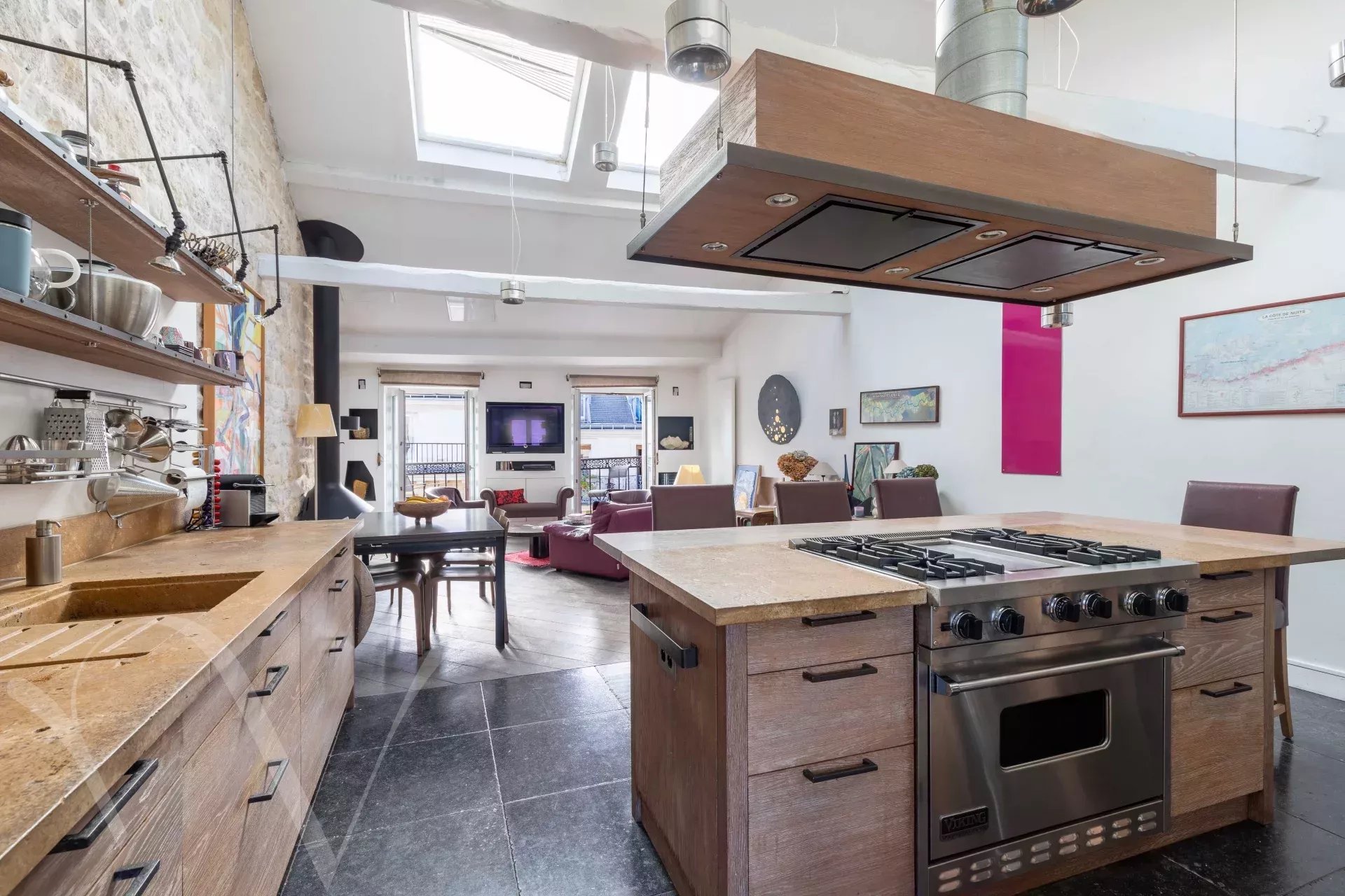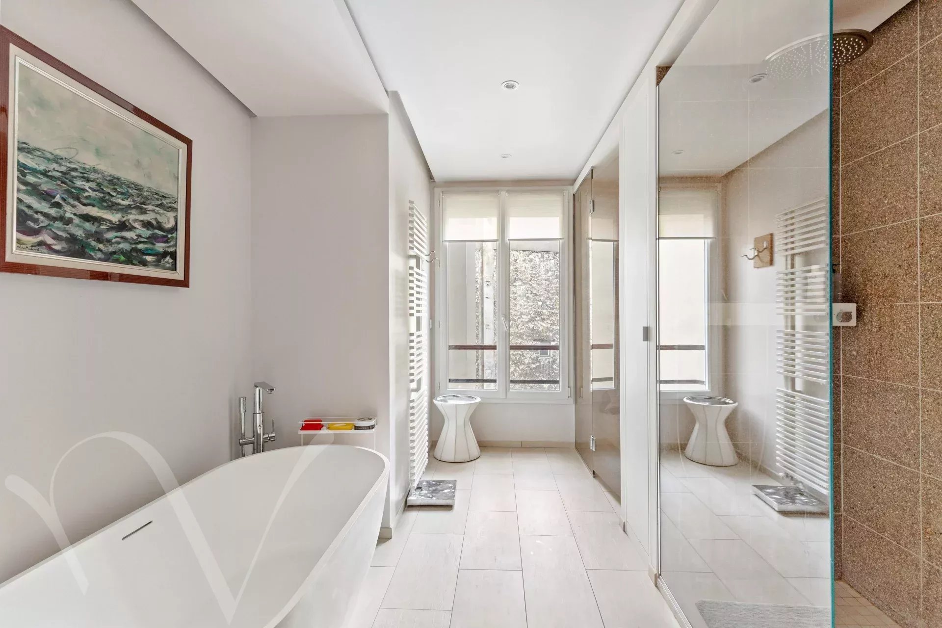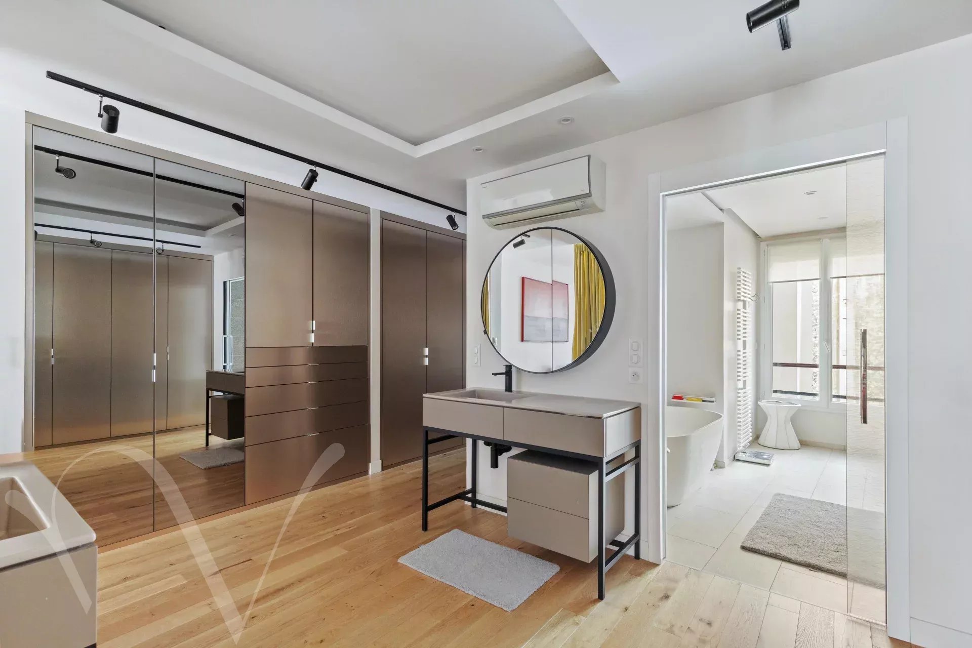 A quelques pas du jardin du Luxembourg, cette maison de ville de 427 m² au sol, et 324 m² habitables, est édifiée sur 5 niveaux desservis par ascenseur, ainsi que 2 sous-sols aménagés. Chaque étage mesure 60 m² environ. Au rez-de-chaussée, l’entrée de la maison dessert la piscine de nage à contre-courant ainsi que l’ascenseur et l’escalier qui dessert tous les niveaux. Premier, deuxième et troisième étages desservent chacun une grande chambre ou bureau, avec salle de bains et toilettes. Au quatrième étage, le salon de musique est aménagé à la manière d'un "piano bar". Au cinquième étage se situe une superbe pièce de réception "cathédrale" organisée en salon avec cuisine ouverte très conviviale. En sous-sol, une buanderie et une grande cave à vins.