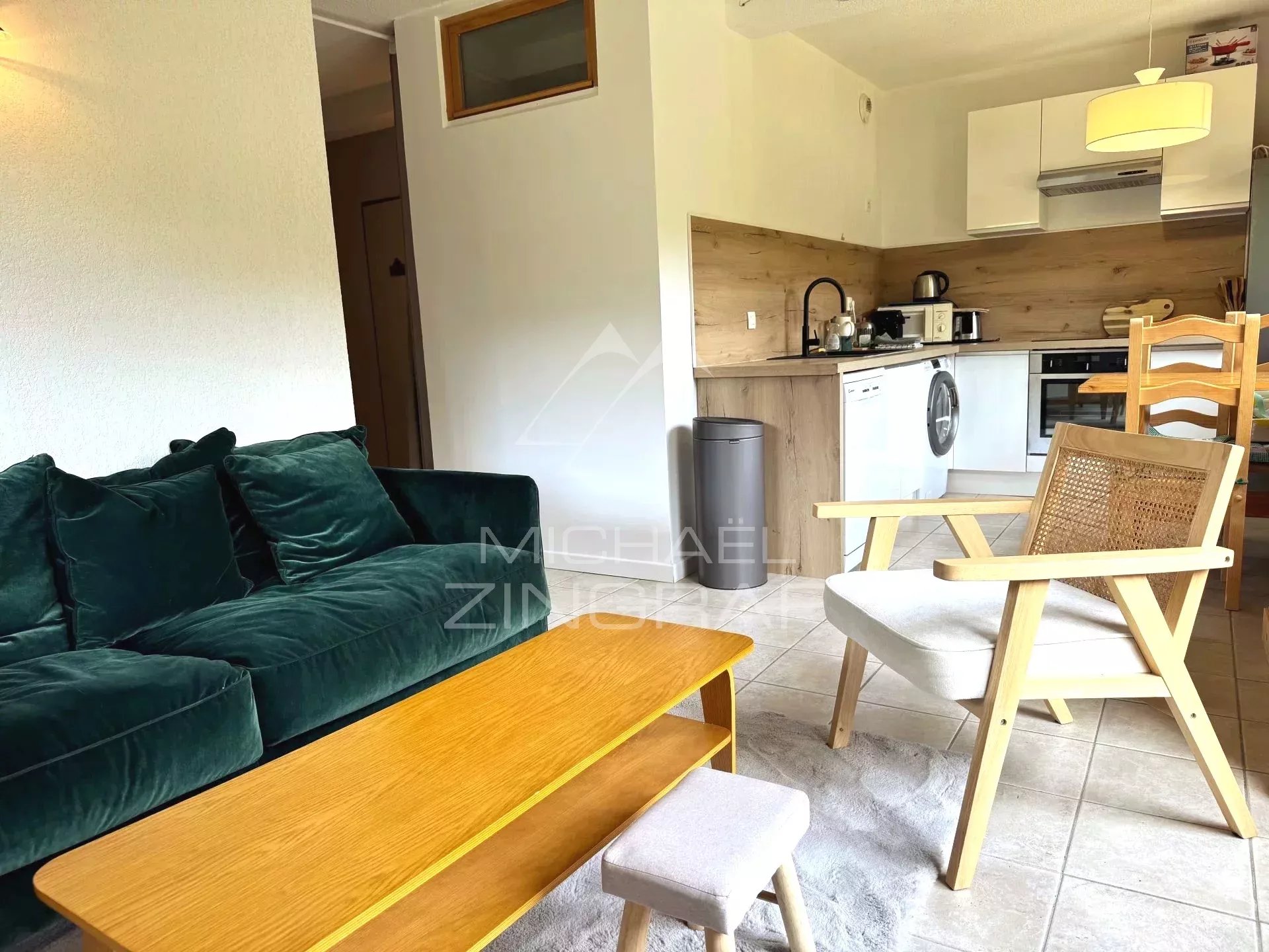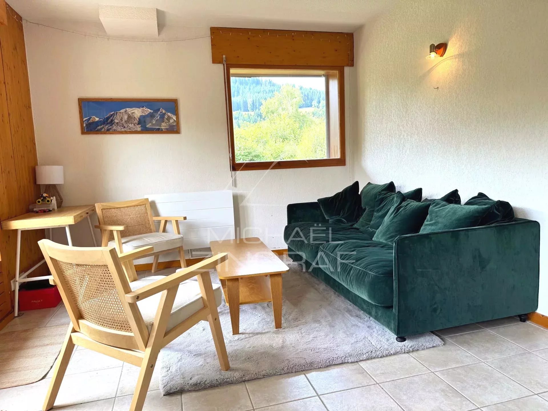 Votre maison Michaël Zingraf Real Estate Megève a le plaisir de vous proposer cet appartement de 38,30 m2 Carrez, agencé sans perte de place. Il se compose d'une chambre et d'un coin montagne, avec salle de bains et toilettes séparées. Sa pièce de vie, composée d'un salon / salle à manger et d'une cuisine ouverte, se prolonge sur un balcon / terrasse de plus de 17 m2. Situé dans une résidence soignée, à quelques minutes à pied du départ des pistes de Combloux, avec une dimension nature préservée et vue dégagée. En annexes : une cave et casier à skis (possible). En complément un garage box pourra être acquis (35 000€ HAI). Bien soumis au statut de copropriété (75 lots et seulement 26 appartements) ; pas de procédure en cours.
