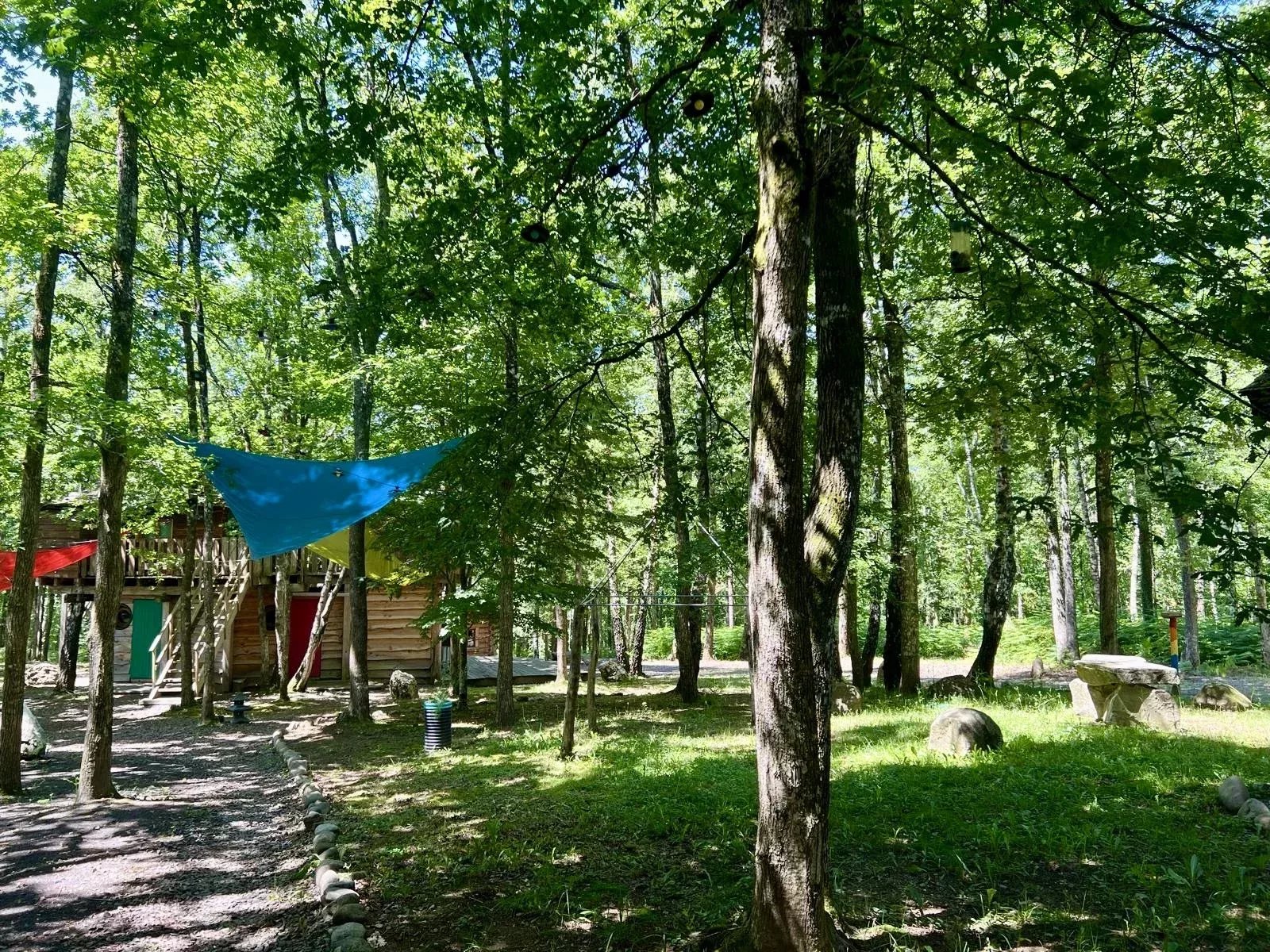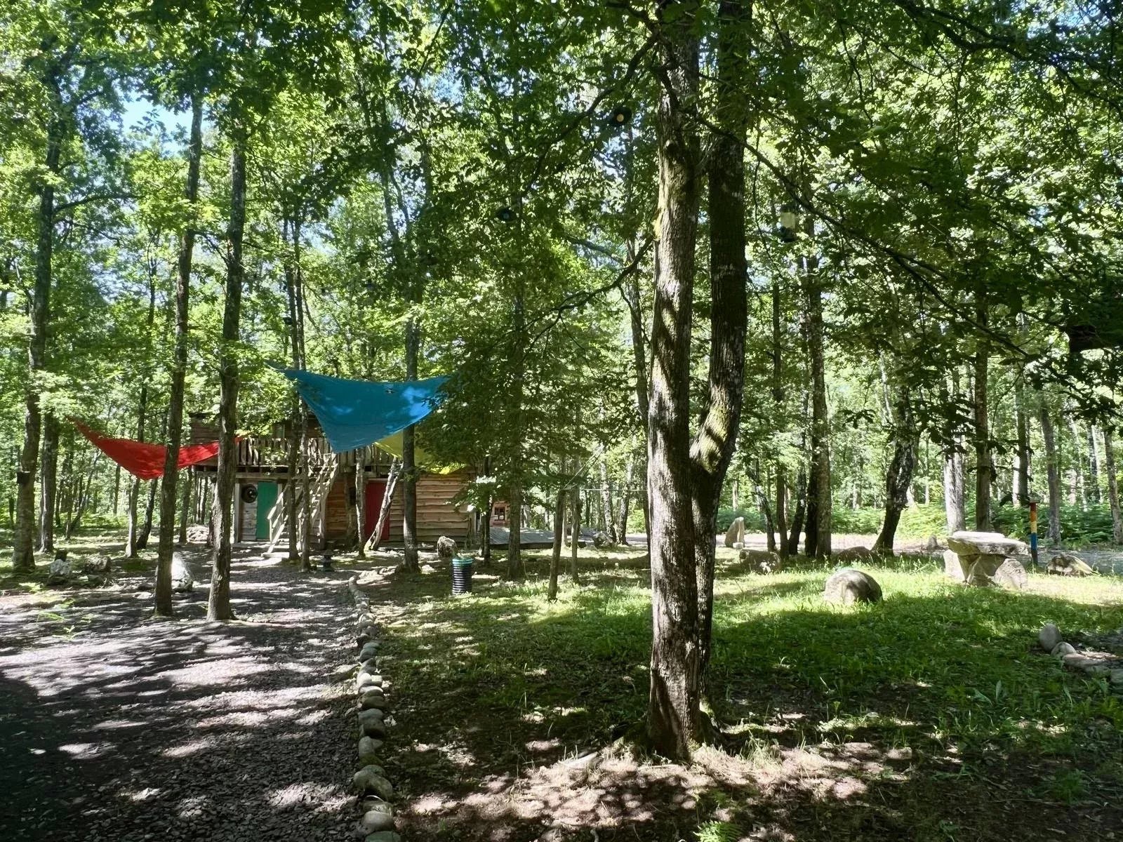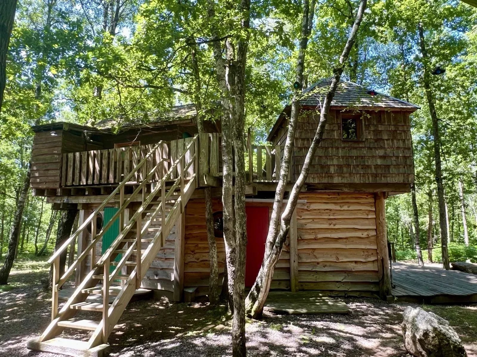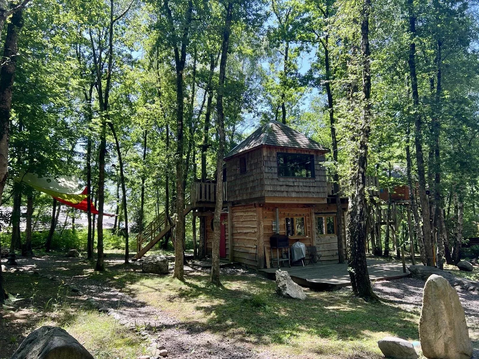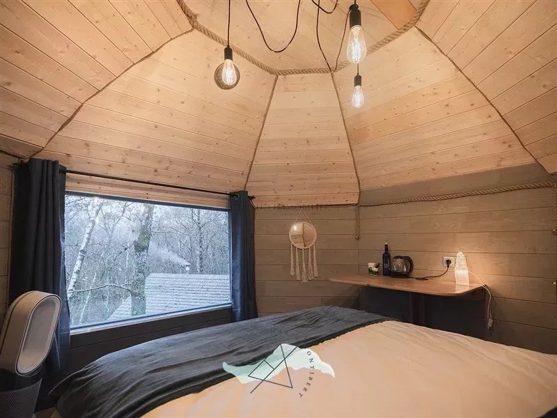 - 5 cabanes dans les arbres : toutes rénovées intégralement, isolées thermiquement et équipée de salle de douche et de toilettes.