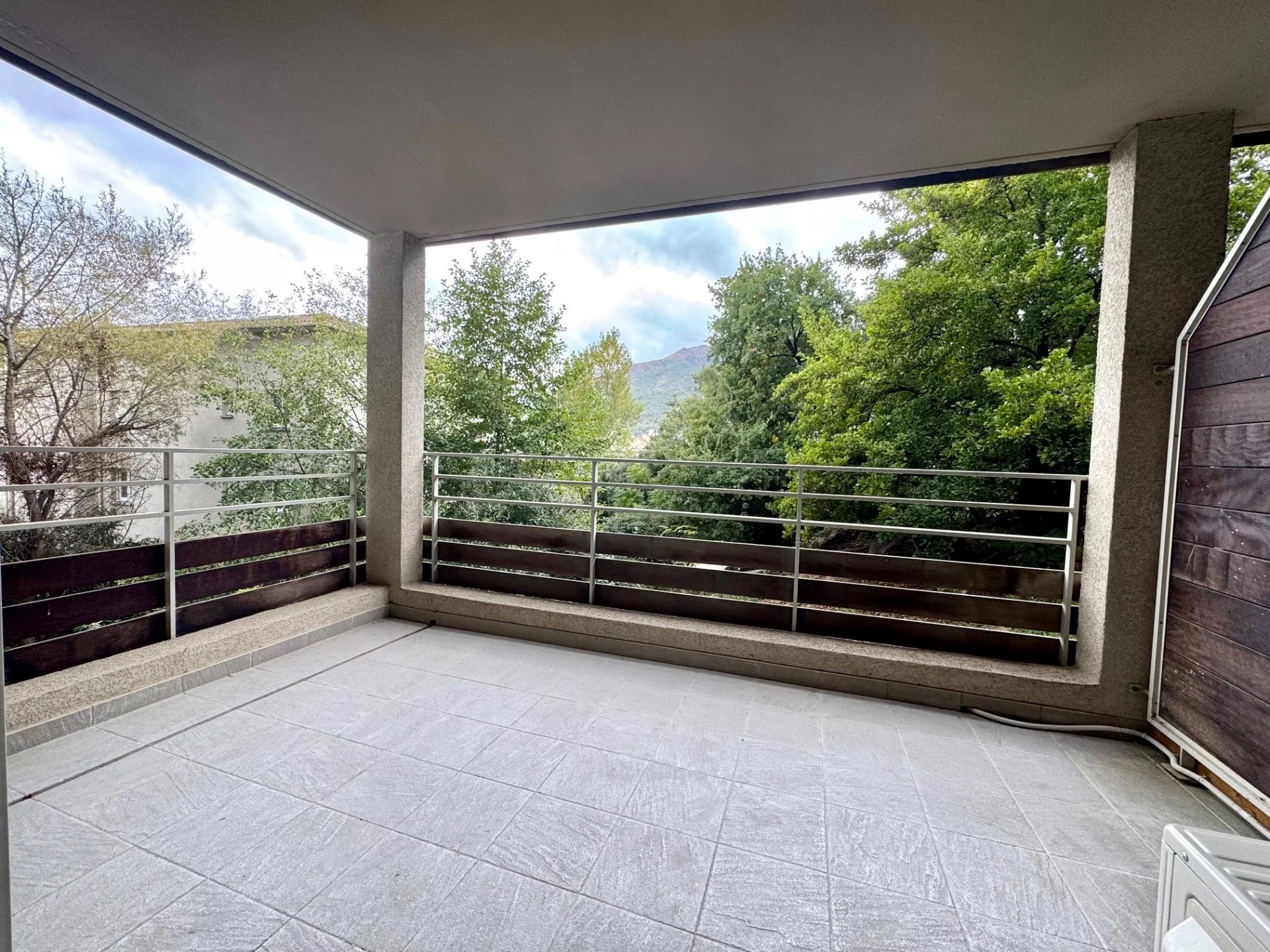 Corte, A deux pas du centre de Corte et face à la faculté, T2 avec terrasse composé d'un séjour avec cuisine ouverte équipée, une chambre avec placard, et une salle d'eau avec wc. Résidence bien entretenu et faibles charges. 1 place de parking privative. Le bien est loué à l'année en vide 670€/mois. Idéal investissement locatif.