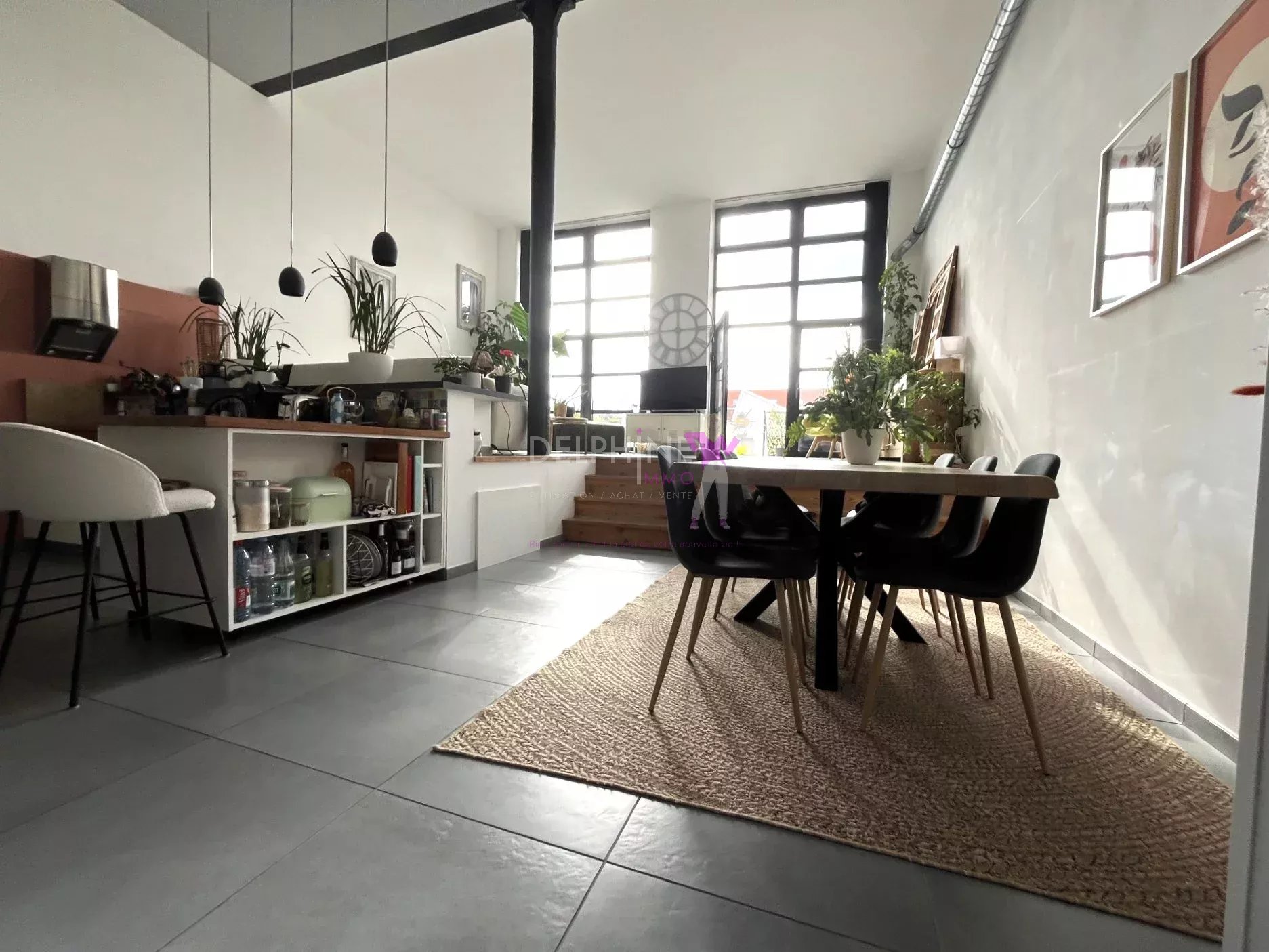 Au sein d'une copropriété calme et sécurisée, Splendide Loft de 144 m² avec terrasses et garage, à proximité des commerces et à 12 mn à pied du Métro et de la gare de Tourcoing.