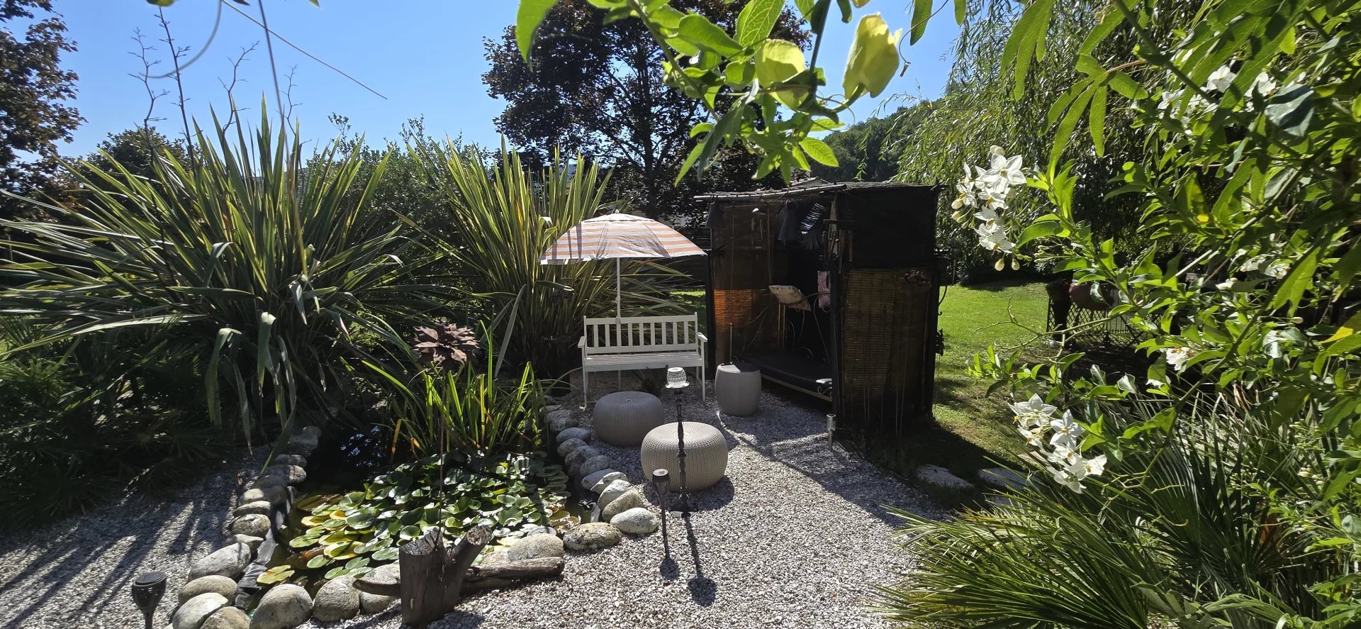 - Terrain de 2 339 m² clôturé, arboré, aménagé avec une pergola, une mare décorative, un joli puit .