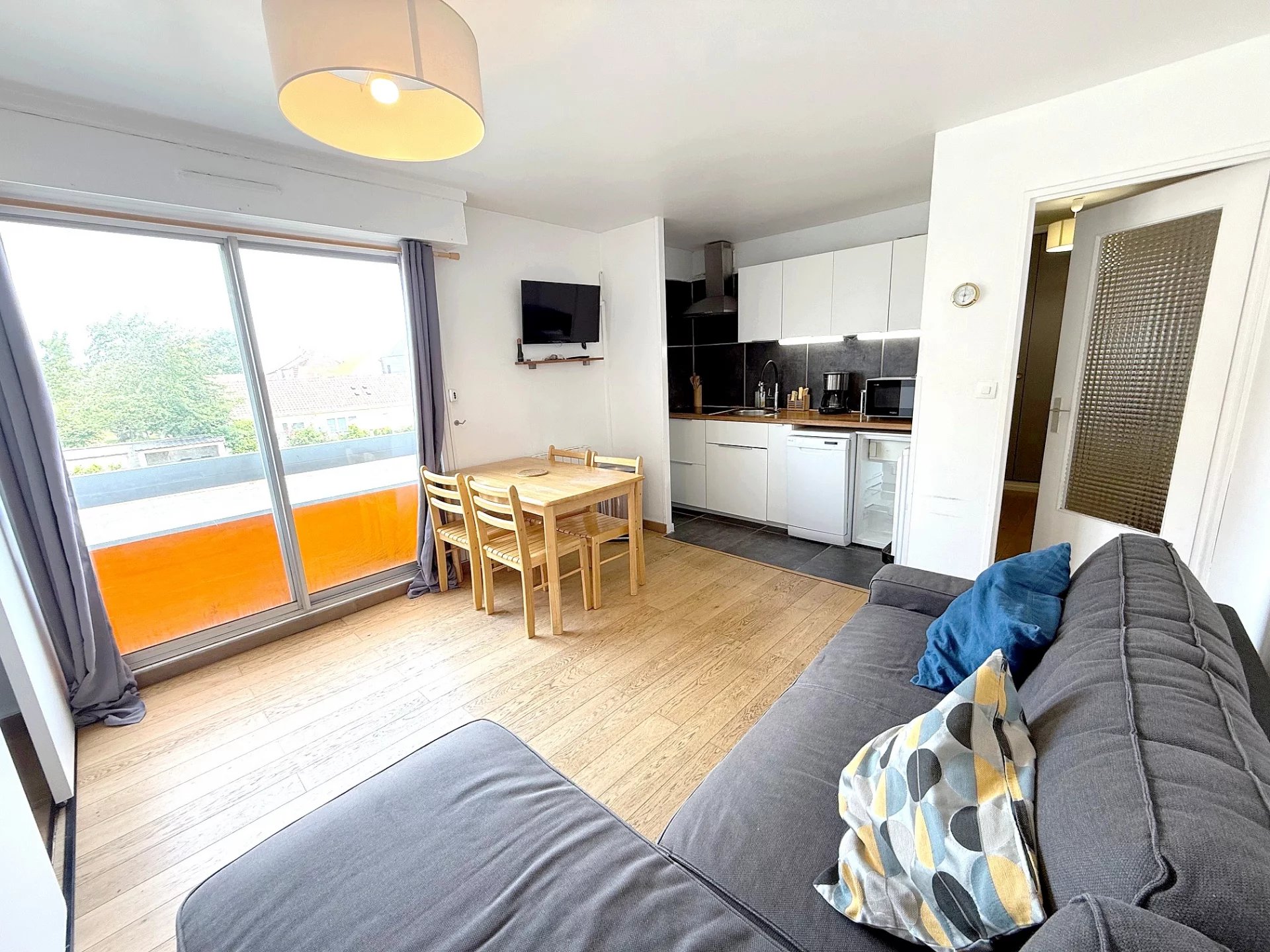 A 700 METRES DES PLAGES - Appartement de type studio cabine situé au 1er étage avec ascenseur d'une résidence sécurisée ; d'une superficie de 31 m² comprenant : entrée avec placard, pièce de vie avec cuisine ouverte aménagée, cabine, salle d'eau, toilettes... Une place de stationnement privative dans la résidence ! Tous nos biens sur boulland-immobilier.fr !