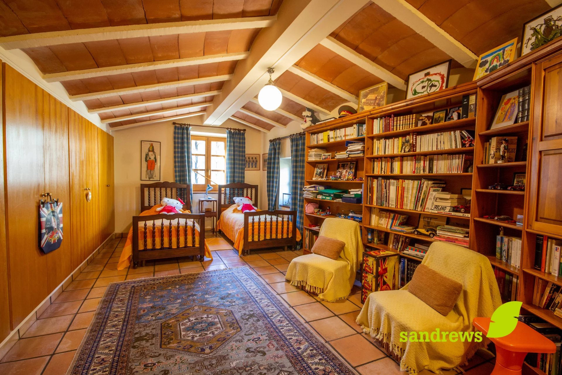 Au premier étage, vous trouverez deux chambres doubles dont une avec un accès à une terrasse et l’autre avec une salle de bains, un bureau avec un accès à une sonde terrasse (actuellement aménagé en un coin lecture) et plusieurs dressings.