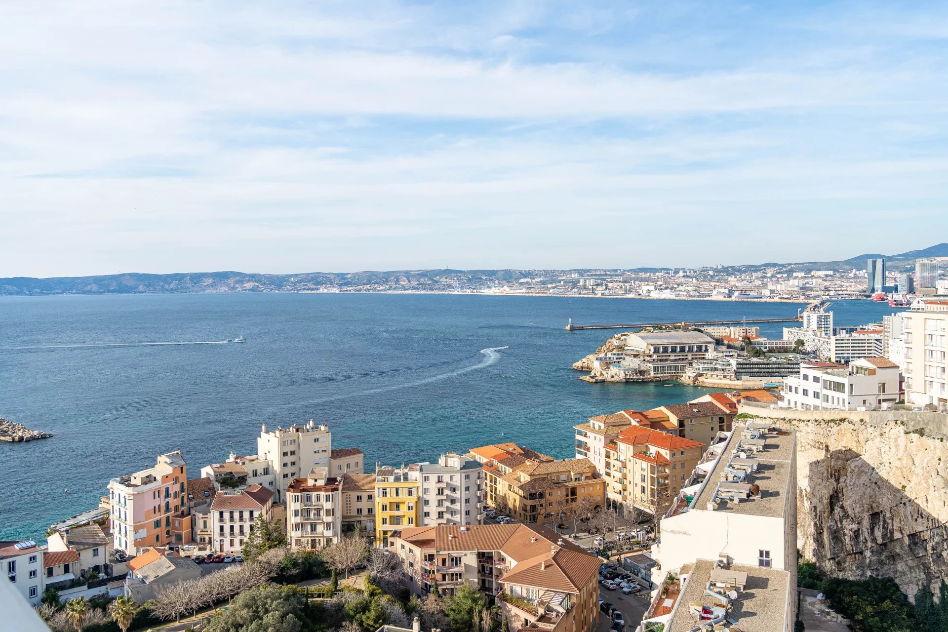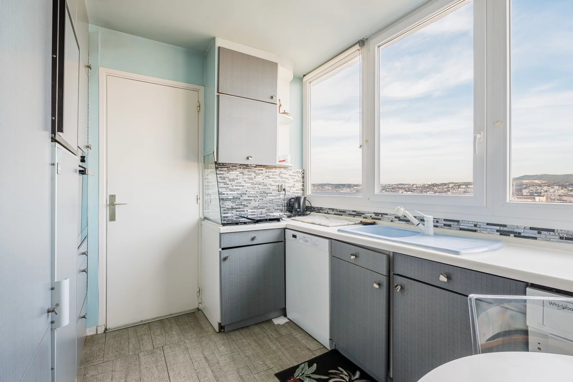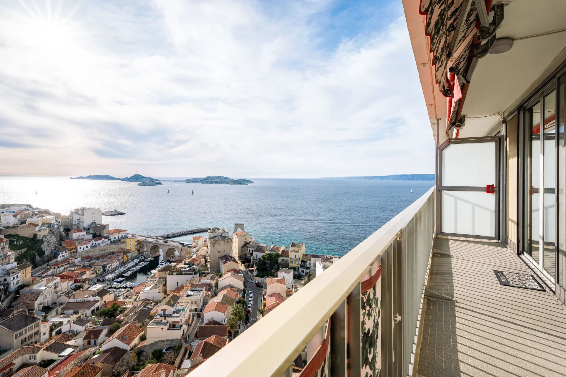 Dans une résidence avec gardien, à un étage élevé, bel appartement T3/4 orienté plein Sud avec une vue panoramique sur le vallon des Auffes, l'église d'Endoume et la mer. Côté Sud, double séjour avec terrasse ; côté Nord, cuisine avec loggia, 2 belles chambres. Salle de bains et toilettes séparées. L'appartement est en très bon état et bien entretenu. Aucun travaux à prévoir. Copropriété très bien tenu et bien habitée. L'appartement bénéficie également d'une très belle vue sur la ville et la rade depuis le côté Nord. À proximité immédiate des commodités et de la plage des Catalans et à 10mn à pied du futur tramway. Bien et emplacement de 1er ordre pour un investissement sécurisé.