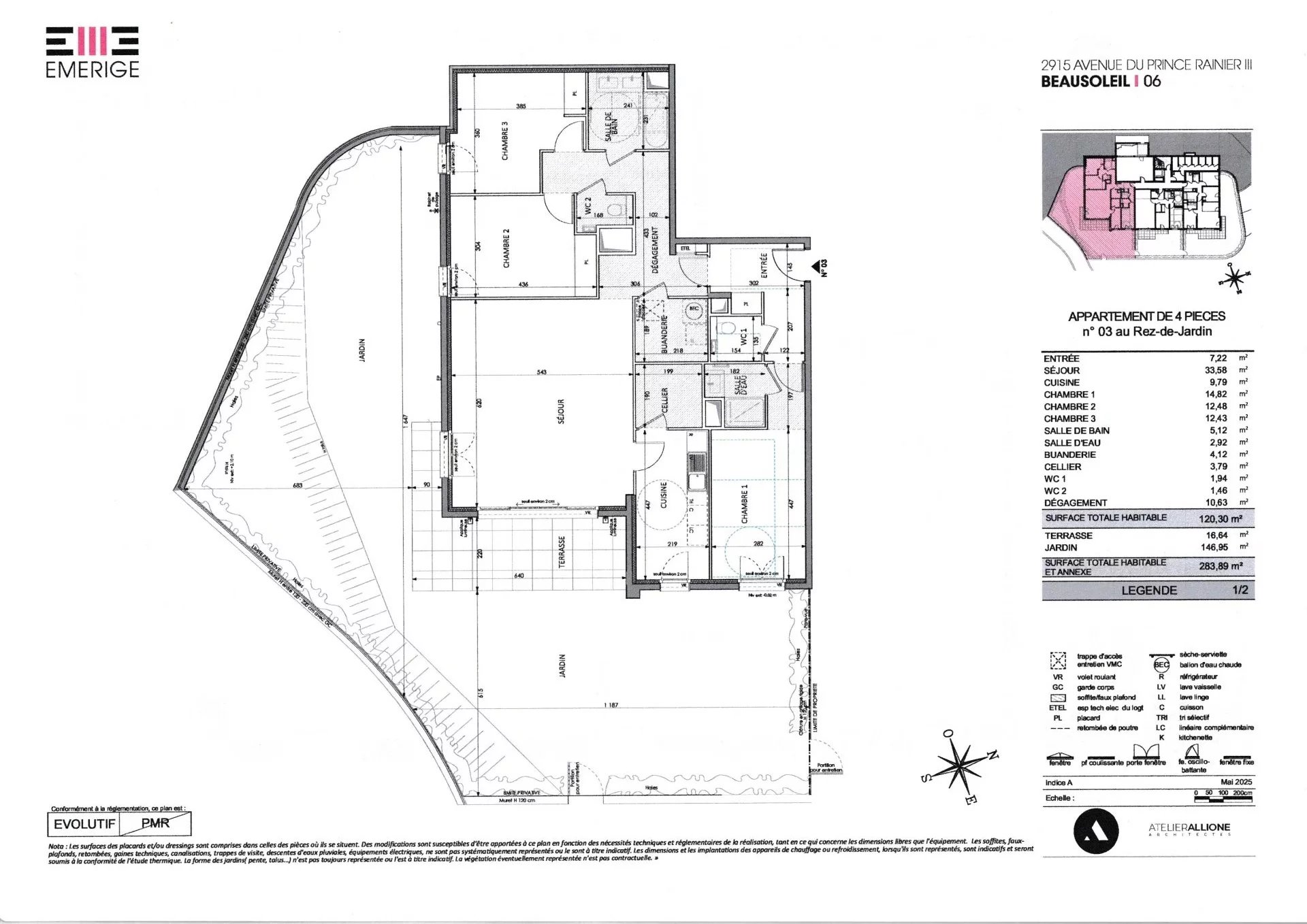 À seulement 500 m de la Principauté, découvrez ce splendide 4 pièces de 122,30 m², prolongé par un jardin privatif de 146,95 m² et une terrasse de 16,64 m².