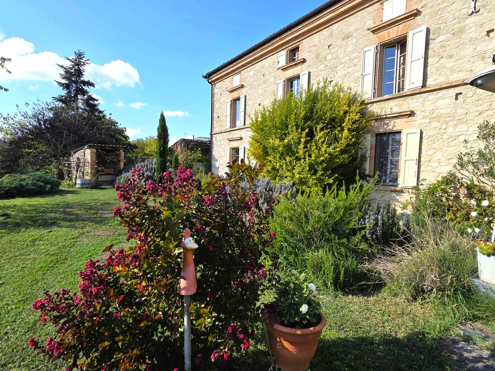 Une magnifique demeure de 260m² et ses dépendances se dressent sur un terrain de 1ha sur une colline dominant la vallée des deux cotés. Un endroit féerique où tout est parfait. Chaque centimètre de cette demeure est soigné, du portail d’entrée en fer forgé avec la vigne rampante, jusqu’au garage avec sa poutraison impressionnante, en passant par un jardin digne des revues de décoration et d’une maison, qui allie le charme des matériaux d'antan avec la sensation du nid cosy ...