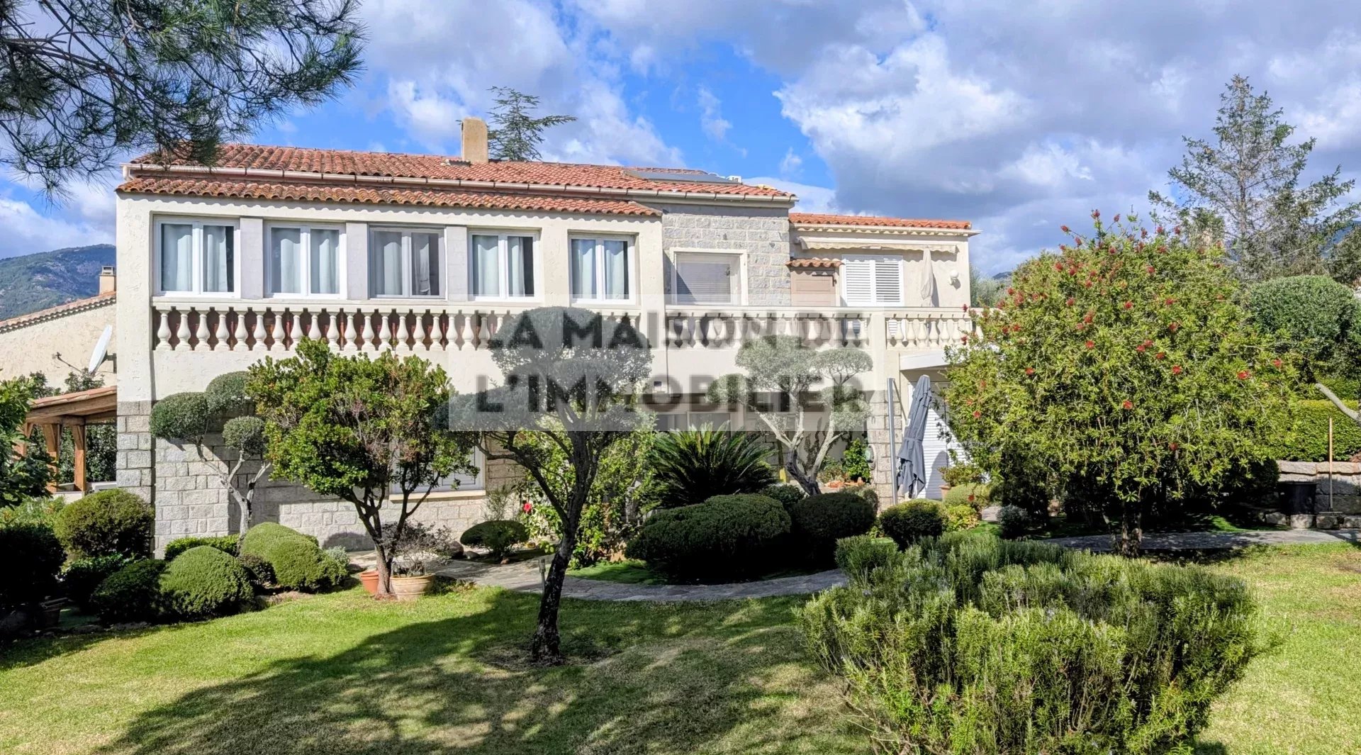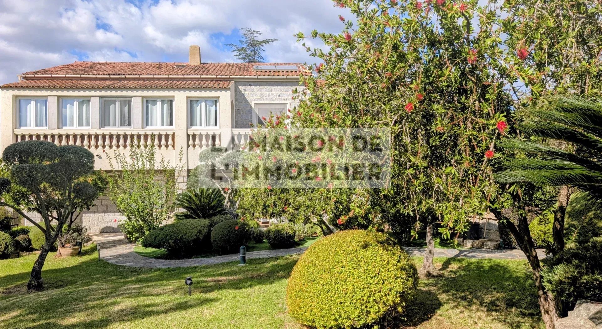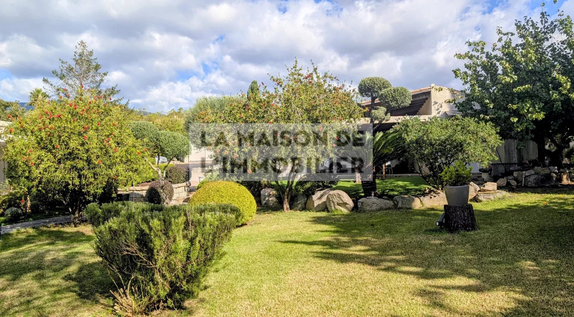 Au cœur du village de Muratello sur la commune de Porto-Vecchio, dans un jardin paysagé de grande qualité d'une surface de 2103 m² entièrement clos avec portail automatisé, se trouve une villa familiale de caractère composée de quatre appartements disposant chacun d'un accès indépendant. L'appartement principal, situé au premier étage, d'une surface Loi Carrez de 138,69 m² comprend : un séjour donnant sur une terrasse fermée, une cuisine indépendante, quatre chambres, une salle d'eau, une salle de bains et deux cabinets de toilette. L'appartement de type 3, situé au rez-de-jardin, d'une surface Loi Carrez de 55,73 m² comprend : un séjour avec cuisine attenante, un cellier, une salle d'eau, deux chambres et une terrasse couverte. L'appartement de type 2, situé au rez-de-jardin, d'une surface Loi Carrez de 60,18 m² comprend : un séjour, une cuisine, une salle d'eau, un cabinet de toilette et une terrasse couverte. L'appartement de type 1, d'une surface Loi Carrez de 32,65 m² comprend : un séjour avec cuisine attenante, une chambre, une salle d'eau avec WC et une terrasse. Un garage indépendant d'une surface d'environ 50 m² avec abri pour voitures. Sur demande, nous pouvons vous calculer la valeur locative de chaque appartement.