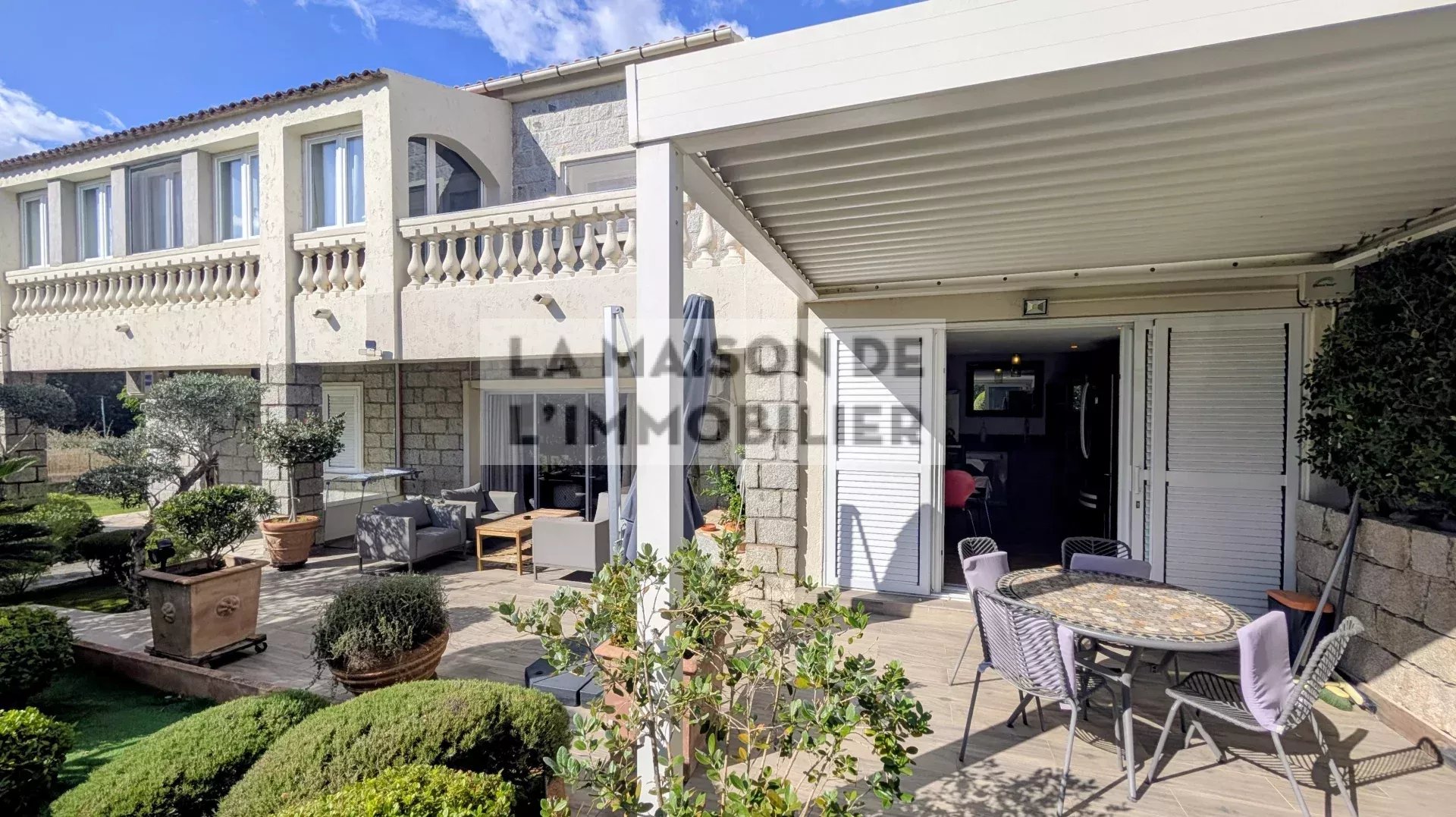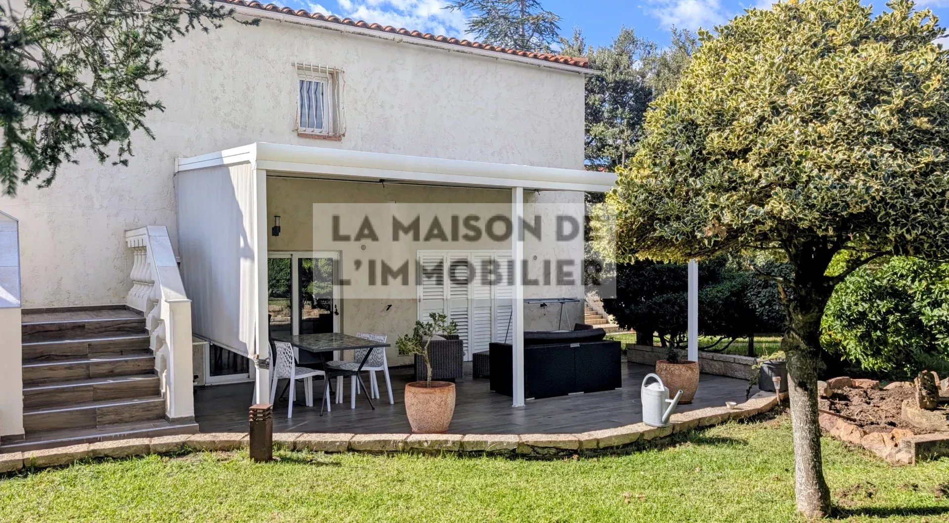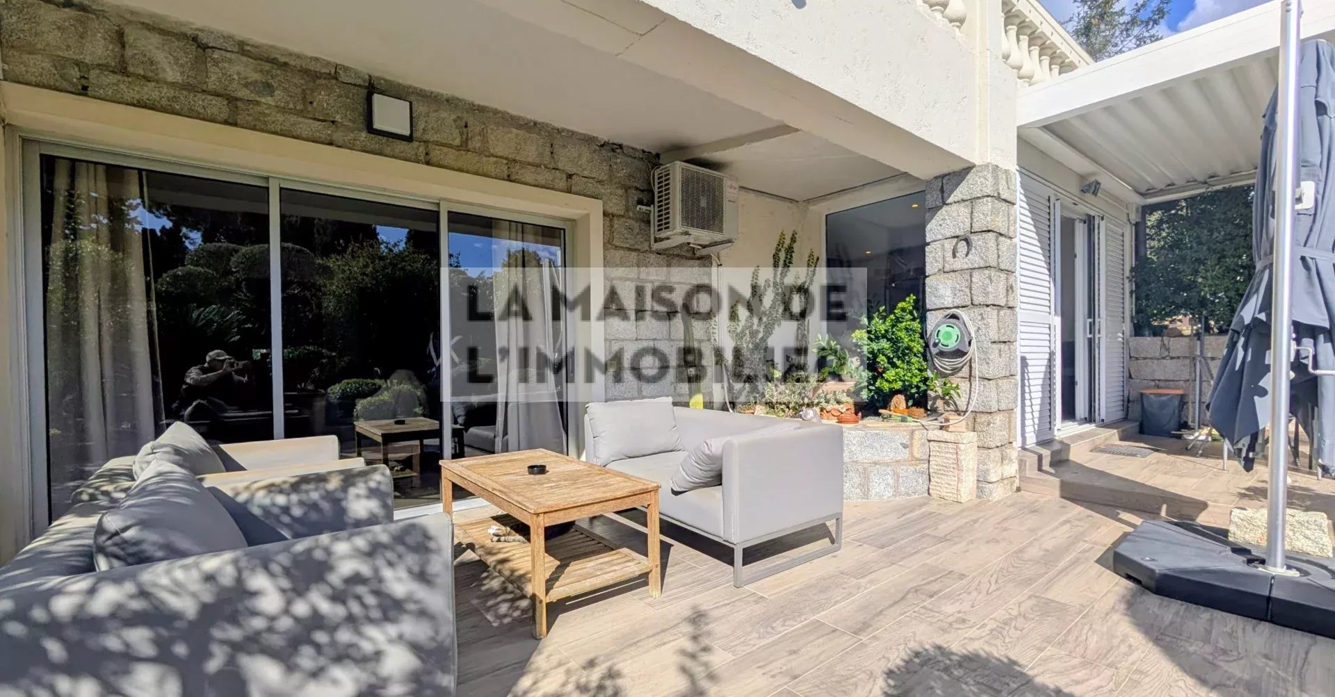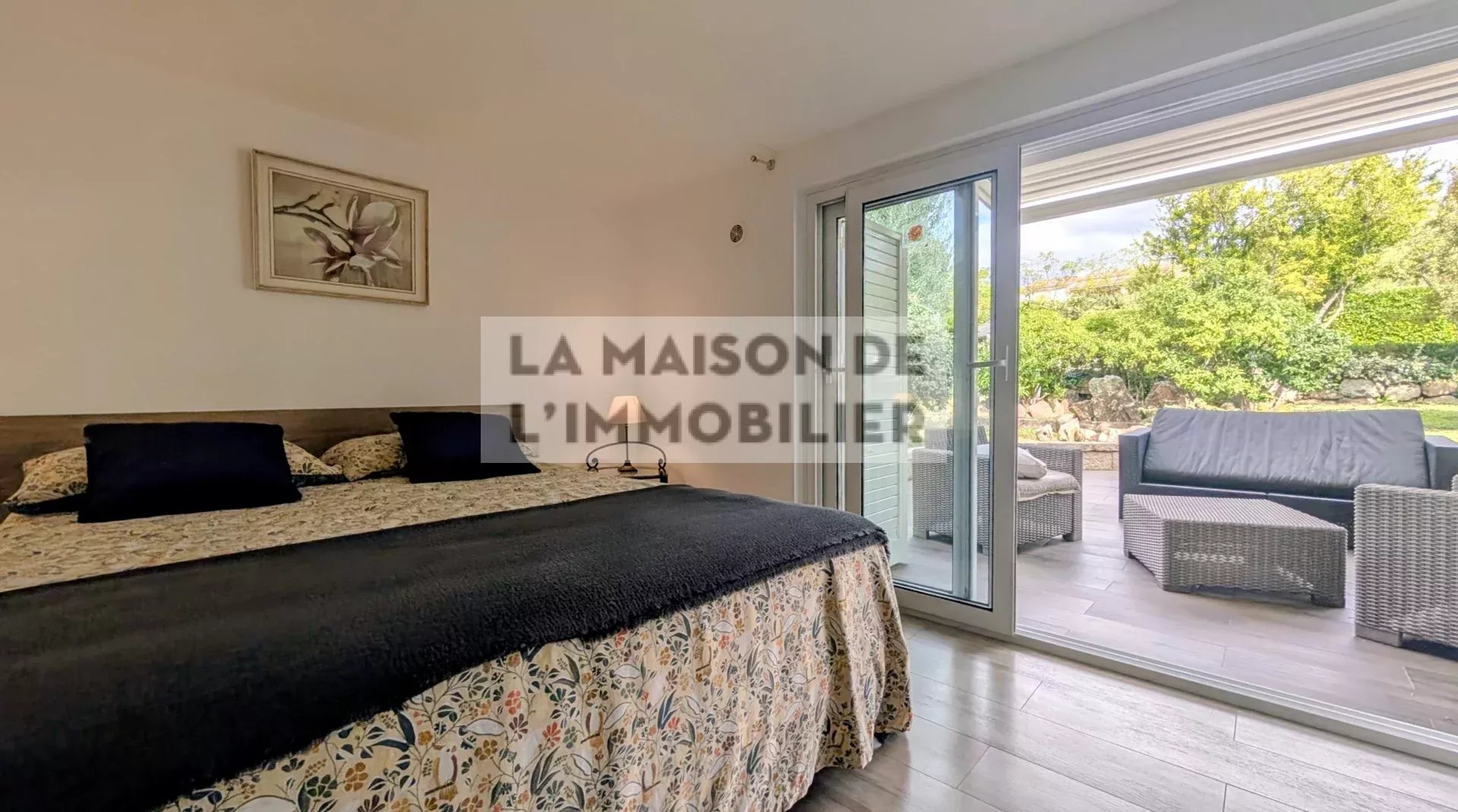 Au cœur du village de Muratello sur la commune de Porto-Vecchio, dans un jardin paysagé de grande qualité d'une surface de 2103 m² entièrement clos avec portail automatisé, se trouve une villa familiale de caractère composée de quatre appartements disposant chacun d'un accès indépendant. L'appartement principal, situé au premier étage, d'une surface Loi Carrez de 138,69 m² comprend : un séjour donnant sur une terrasse fermée, une cuisine indépendante, quatre chambres, une salle d'eau, une salle de bains et deux cabinets de toilette. L'appartement de type 3, situé au rez-de-jardin, d'une surface Loi Carrez de 55,73 m² comprend : un séjour avec cuisine attenante, un cellier, une salle d'eau, deux chambres et une terrasse couverte. L'appartement de type 2, situé au rez-de-jardin, d'une surface Loi Carrez de 60,18 m² comprend : un séjour, une cuisine, une salle d'eau, un cabinet de toilette et une terrasse couverte. L'appartement de type 1, d'une surface Loi Carrez de 32,65 m² comprend : un séjour avec cuisine attenante, une chambre, une salle d'eau avec WC et une terrasse. Un garage indépendant d'une surface d'environ 50 m² avec abri pour voitures. Sur demande, nous pouvons vous calculer la valeur locative de chaque appartement.