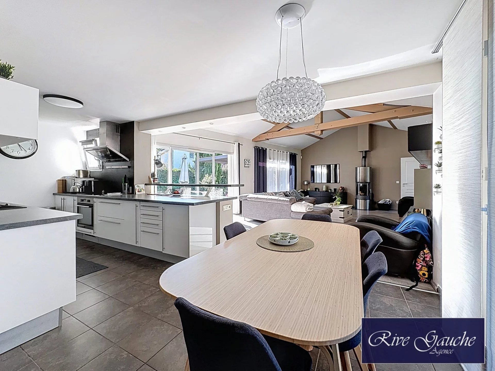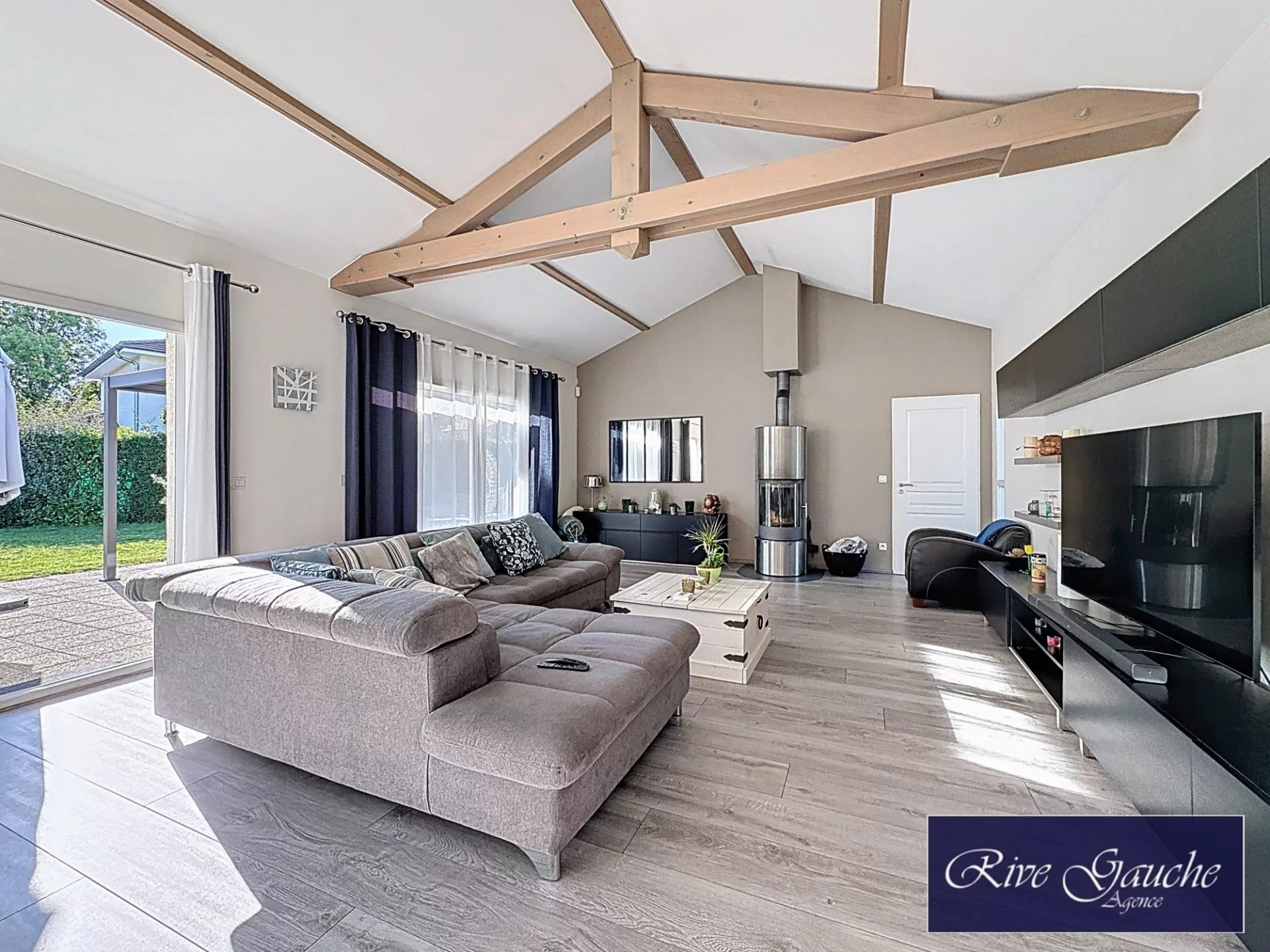 L'Agence Rive Gauche vous propose en exclusivité à Chens-sur-Léman, cette magnifique villa d'architecte de 152m2 habitables pour 241utiles édifiée en 2011 sur un terrain de 1674m2. Elle se compose d'une entrée avec penderie et wc indépendant donnant sur un espace de vie offrant une cuisine entièrement équipée avec table bar ouverte sur l'espace salle à manger/séjour agrémenté d'un poêle à bois, cette pièce de vie de 57m2 offre de très beaux volumes de par son architecture avec plafond cathédrale et profite d'une belle luminosité naturelle grâce aux ouvertures sur la terrasse qu'elle dispose. Nous trouvons également au rez-de-chaussée un espace parentale avec dressing, salle de bain + douche et wc. A l'étage la maison offre 4 chambres supplémentaires et une salle de bain avec wc. Au sous-sol aménagé : une pièce home cinema, poss salle de jeux ou de sport, une buanderie avec point d'eau, une pièce de rangement et un accès au vide sanitaire idéal pour servir de cave. A l'extérieur la maison profite d'une terrasse d'environ 90m2 exposée Sud-Ouest le terrain est piscinable et entièrement clos par une haie végétale, 2 portillons donnent accès à la maison et au jardin. Coté stationnement, un grand garage de 34,76m2 avec accès direct à l'habitation ainsi que 4 places de parking. A visiter sans tarder ! Honoraires inclus de 4.17% TTC à la charge de l'acquéreur. Prix hors honoraires 859 200 . Classe énergie C, Classe climat A Montant moyen estimé des dépenses annuelles d'énergie pour un usage standard, établi à partir des prix de l'énergie de l'année 2021 : entre 1500.00 et 2080.00 . Les informations sur les risques auxquels ce bien est exposé sont disponibles sur le site Géorisques : georisques.gouv.fr.