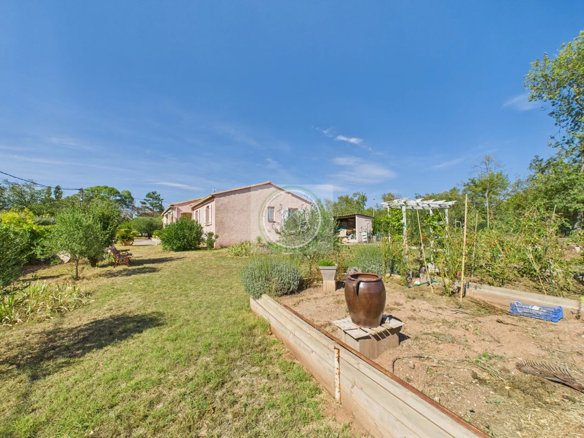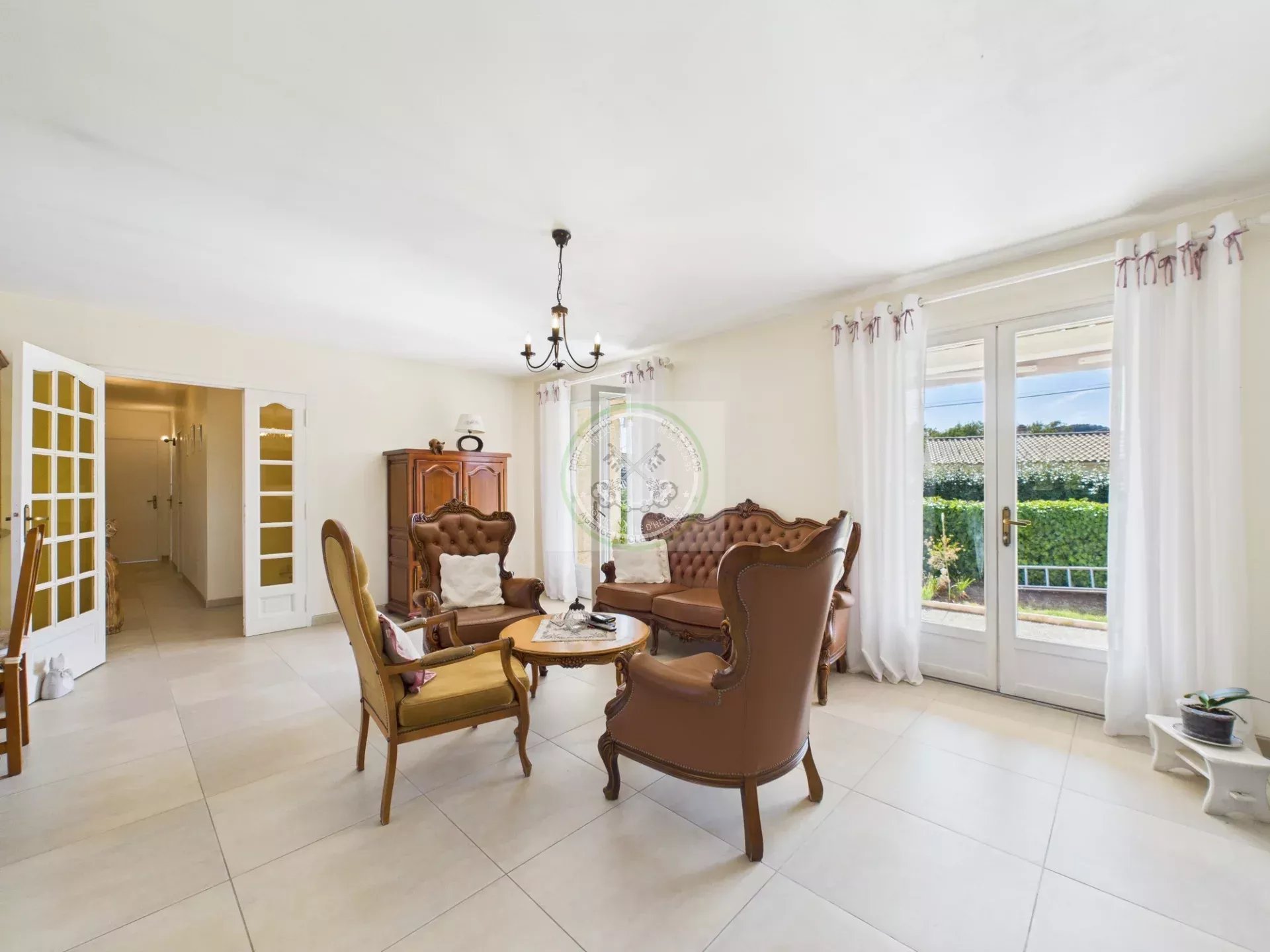 La Clé d'Hermès vous propose à la vente cette agréable maison de plain-pied offrant une surface habitable de 103 m², sur un vaste terrain clos et arboré de 1 213 m².