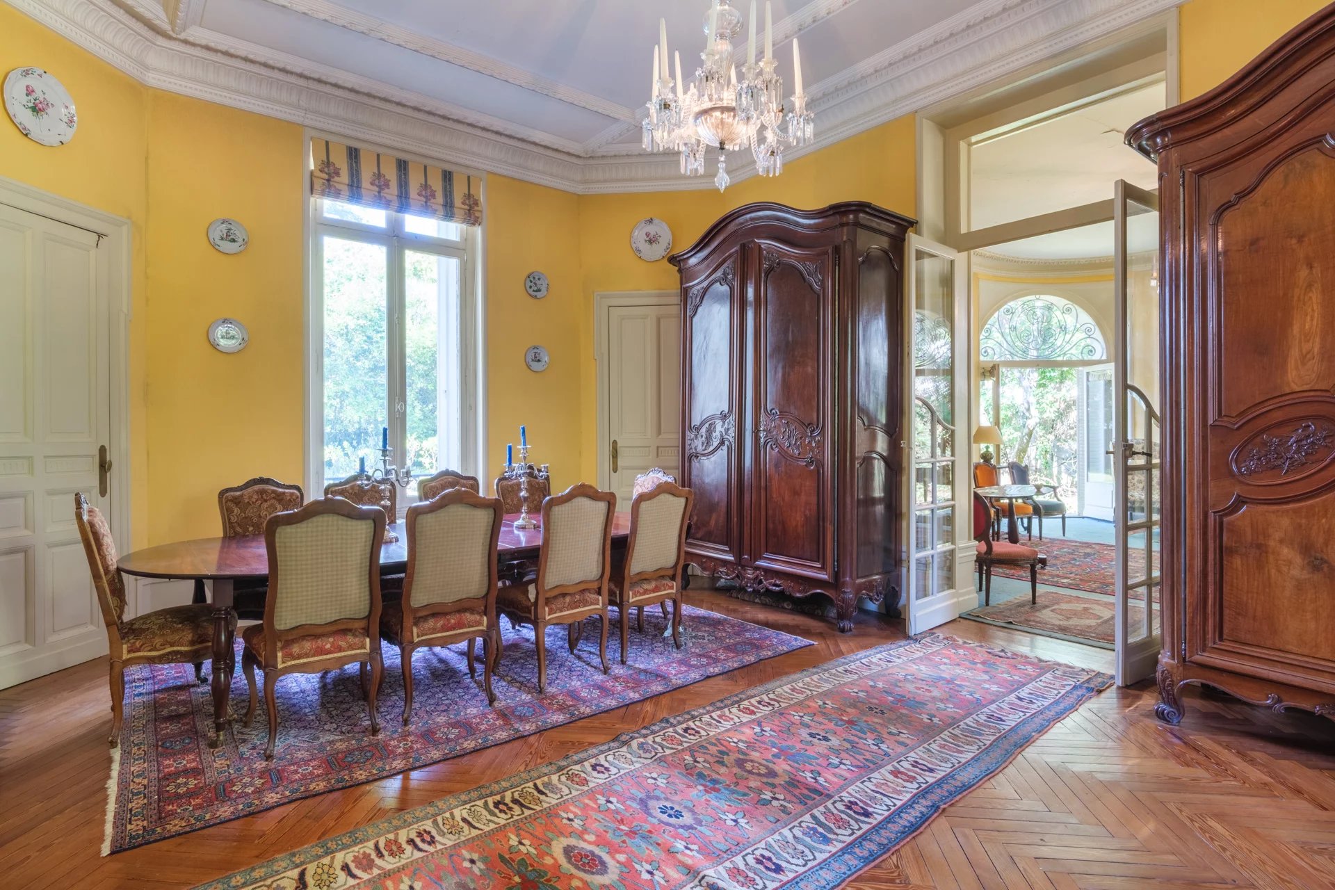 Villa bourgeoise à rénover – Le Bouscat Située au cœur du très recherché quartier du Bouscat, cette superbe demeure de maître du XIXe siècle, d'une surface de 445 m² sur trois niveaux, repose sur une vaste parcelle arborée de 3 000 m². Chargée de charme, elle offre un potentiel exceptionnel après rénovation. L’entrée, bordée d’un jardin soigné, dévoile une majestueuse façade et un bel escalier en bois massif. À l’intérieur, salons en enfilade, parquets à bâtons rompus et carreaux anciens préservent l’élégance d’époque. Une opportunité rare pour redonner vie à un bien d’exception.