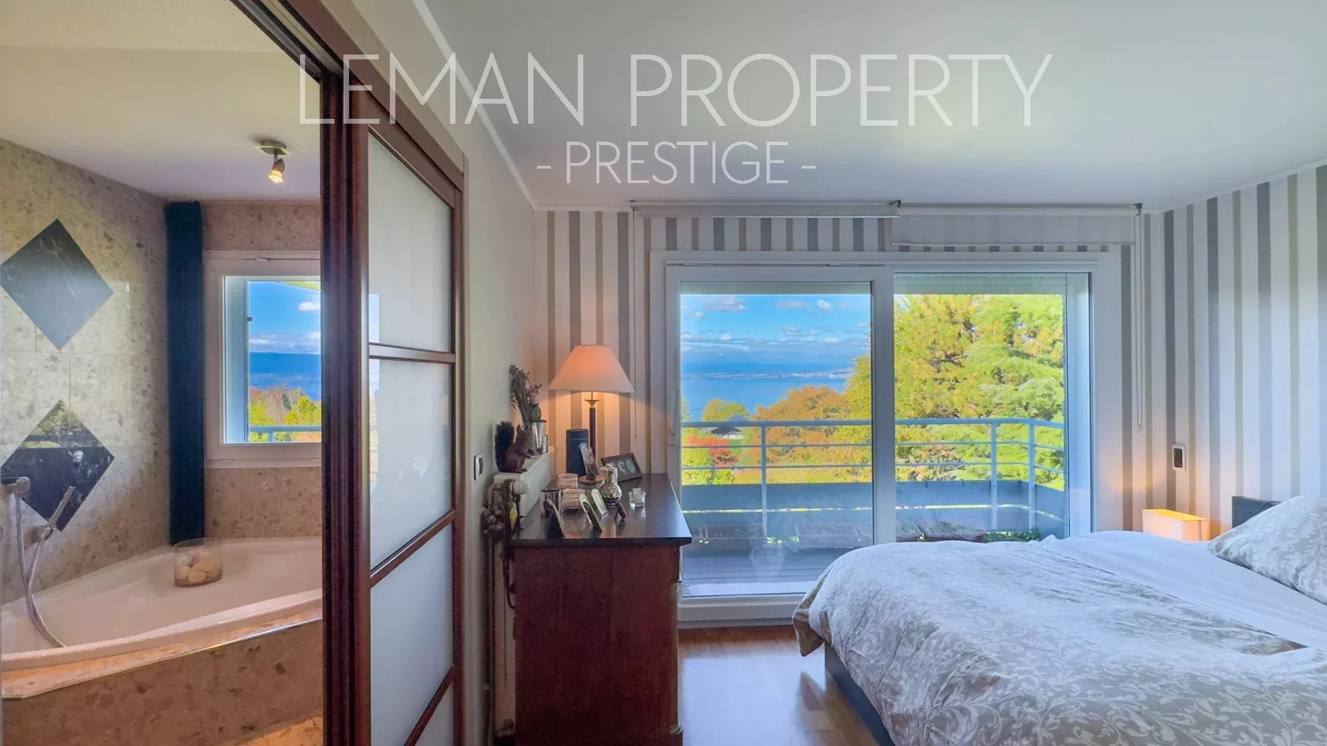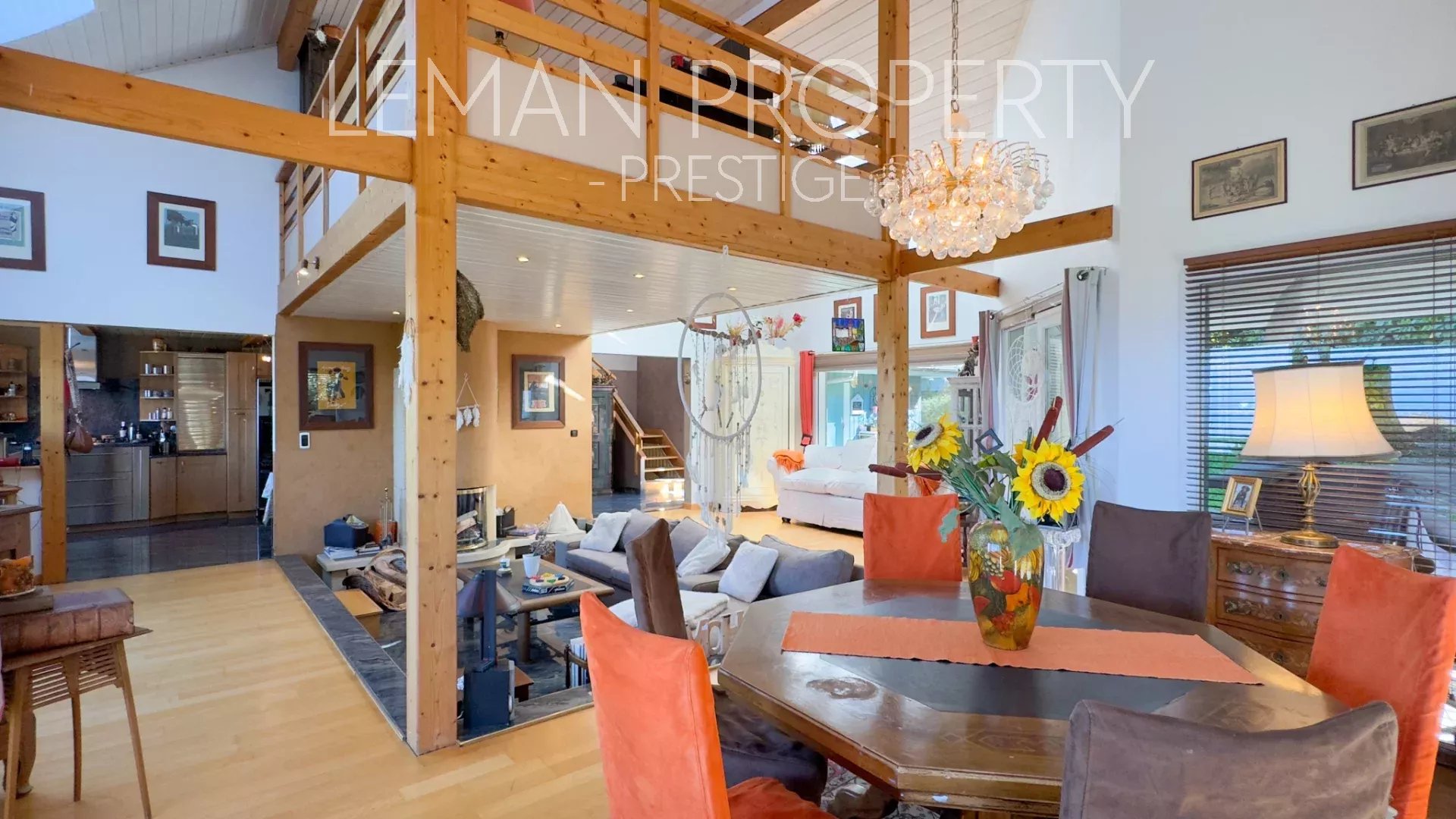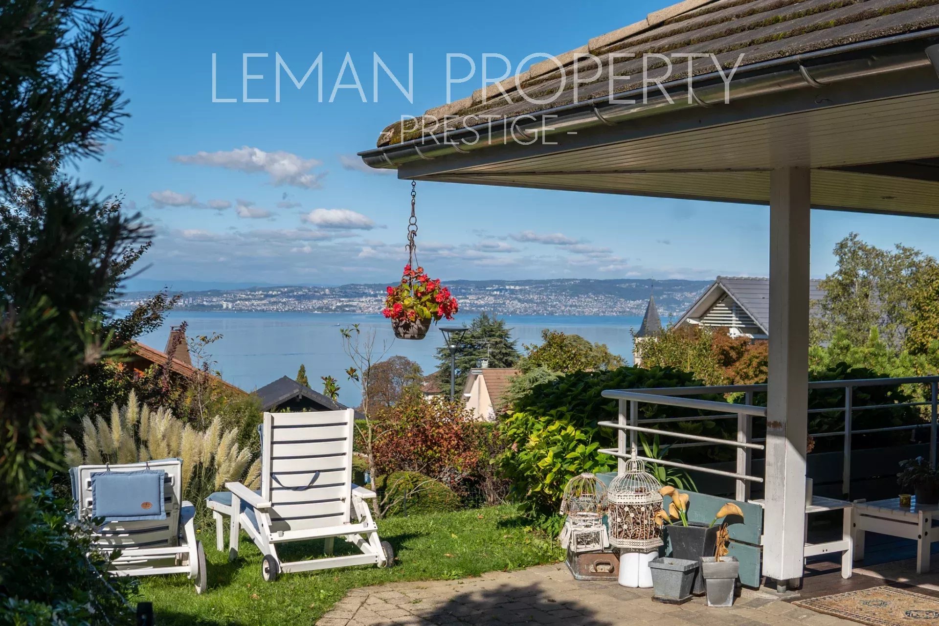 Maison au cœur du quartier prisé de l’Hermitage. Dans l’un des secteurs les plus recherchés, cette propriété VUE LAC rare de 7 pièces séduit par son emplacement d’exception. Elle comprend 4 chambres confortables, dont deux en rez-de-chaussée, ainsi que 4 salles de bains et un bureau en mezzanine. Les volumes généreux s’ouvrent sur de vastes espaces de vie baignés de lumière, grâce à de larges baies vitrées donnant directement sur la terrasse et le jardin, le tout sublimé par une cheminée. La propriété se distingue également par sa piscine intérieure, sa salle de sport et son espace bien-être, véritable écrin de détente qui prolonge le confort en toute saison. À l’extérieur, un jardin bucolique et une superbe terrasse avec vue panoramique viennent parfaire ce cadre unique. La maison dispose également d’un garage et d’un car-port. Honoraires d'agence charge vendeur. DPE : D GES : C