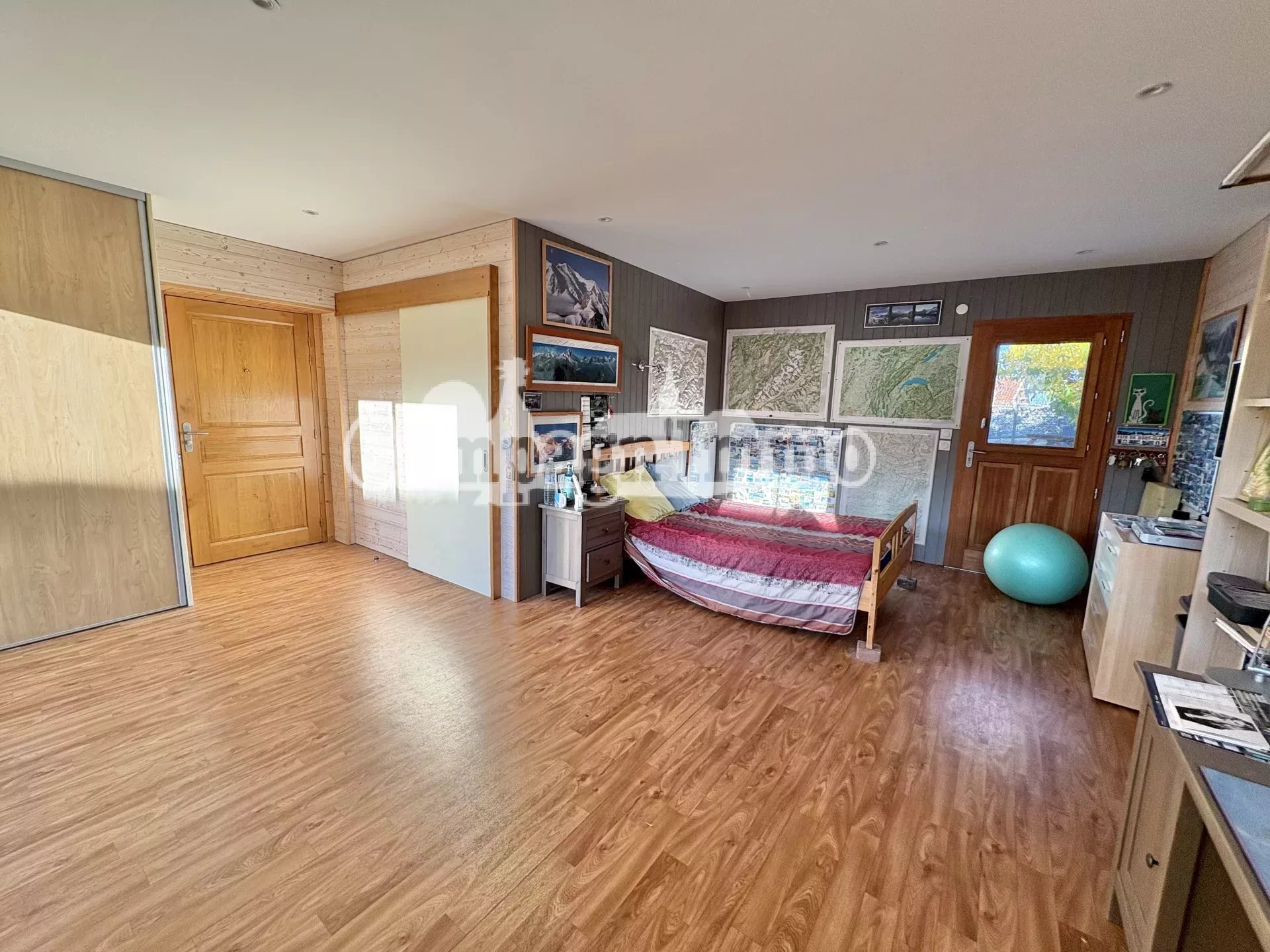 La partie habitable se compose d’une entrée donnant sur une pièce de vie traversante et lumineuse, avec une salle à manger qui s’ouvre sur deux terrasses, dont une couverte. La cuisine ouverte, entièrement équipée, est fonctionnelle et chaleureuse. Cette pièce à vivre est surplombée par une mezzanine spacieuse d'environ 38 m², idéale pour aménager un salon cosy et/ou un espace bureau.