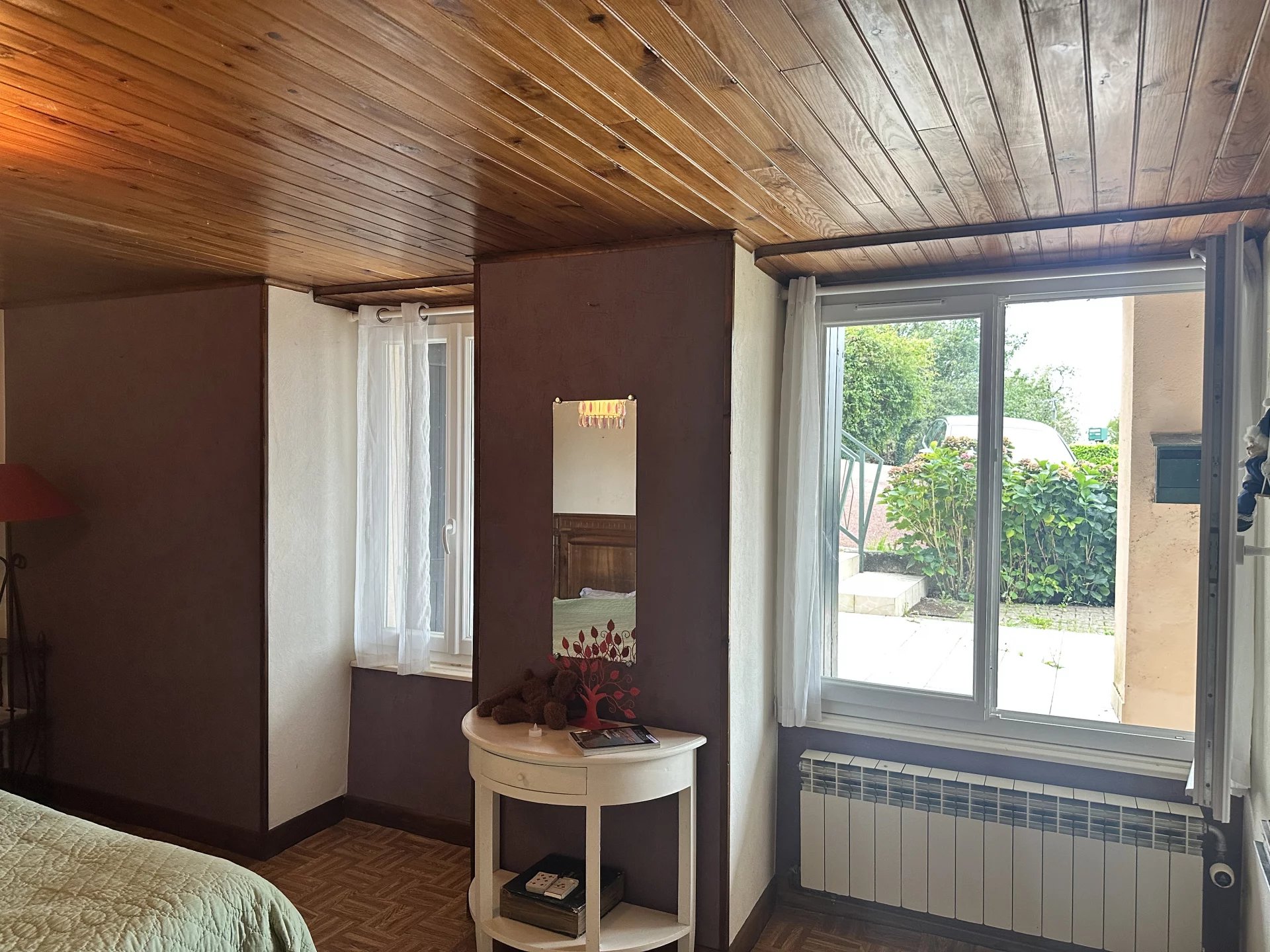 Maison mitoyenne (ancienne ferme rénovée) comprenant sur 2 niveaux 3 chambres, 1 séjour et 1 salon, une cuisine aménagée et fermée, 1 salle de bain et 1 wc sur chaque niveau. Grand garage atelier de plus de 20M2, très beau jardin avec abris. Chauffage par pompe à chaleur, gaz de ville dans la cuisine. Combles isolées. Fosse septique.