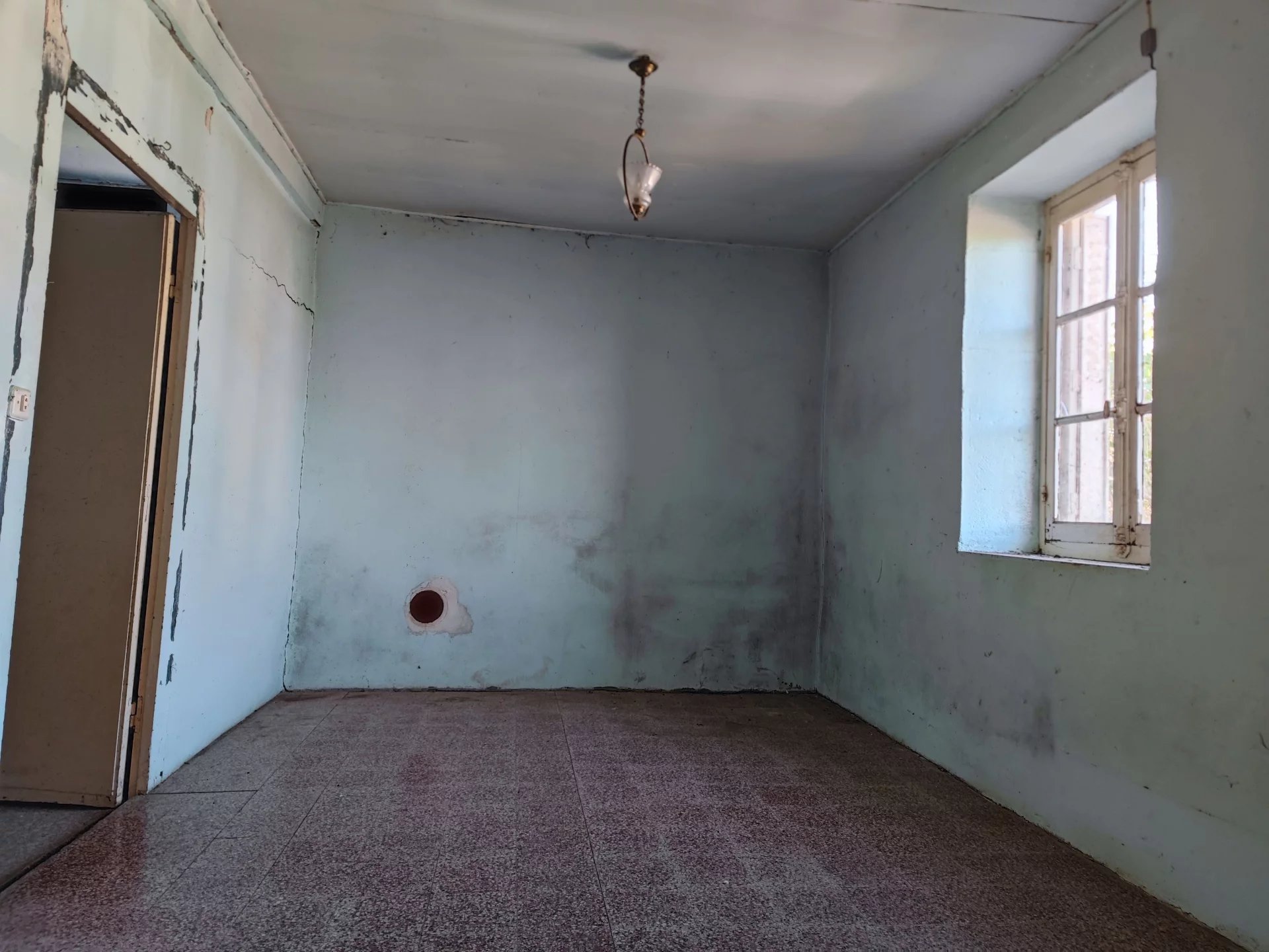 Cette maison, entièrement édifiée sur caves, se compose d’une belle pièce principale, suivi de deux pièces et d’une salle d’eau avec WC. Un grand grenier est également présent. De nombreux travaux sont à prévoir (isolation, huisseries, chauffage, électricité, fosse septique, etc).
