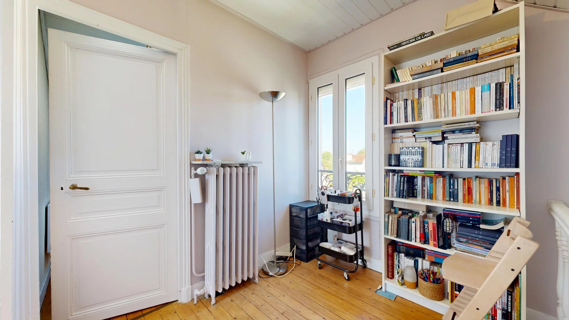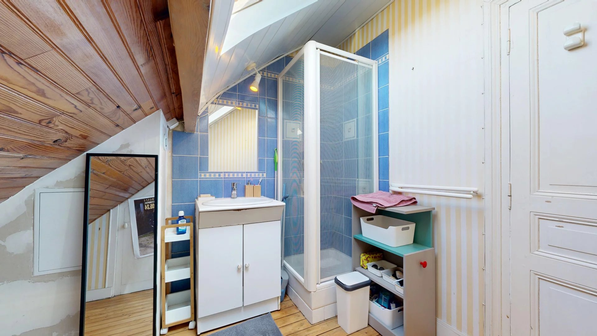 Au dernier étage, un grand dégagement permet l’installation d’un coin bureau, une troisième chambre, et une salle d’eau.