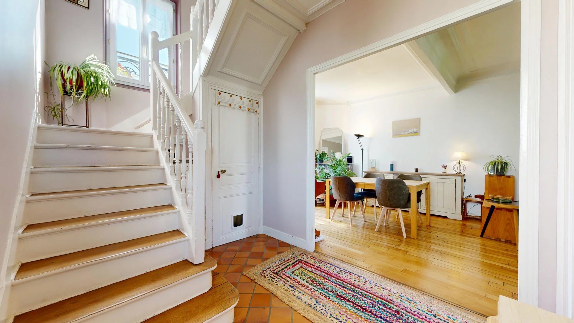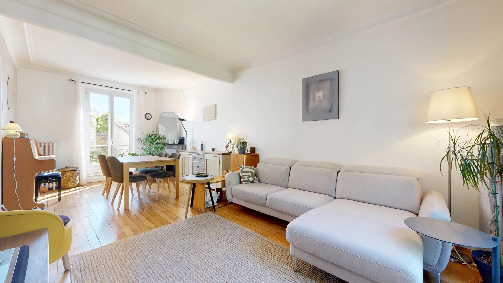 Au premier niveau, vous trouverez une entrée donnant accès à un salon-salle à manger plein de charme, avec parquet d’époque, cheminée et moulures. La cuisine indépendante et fonctionnelle complète cet étage conçu pour la vie de famille.