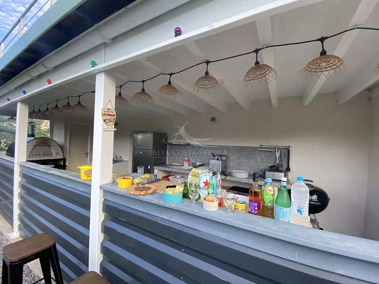 Une piscine avec cuisine d’été, idéale pour profiter des beaux jours.