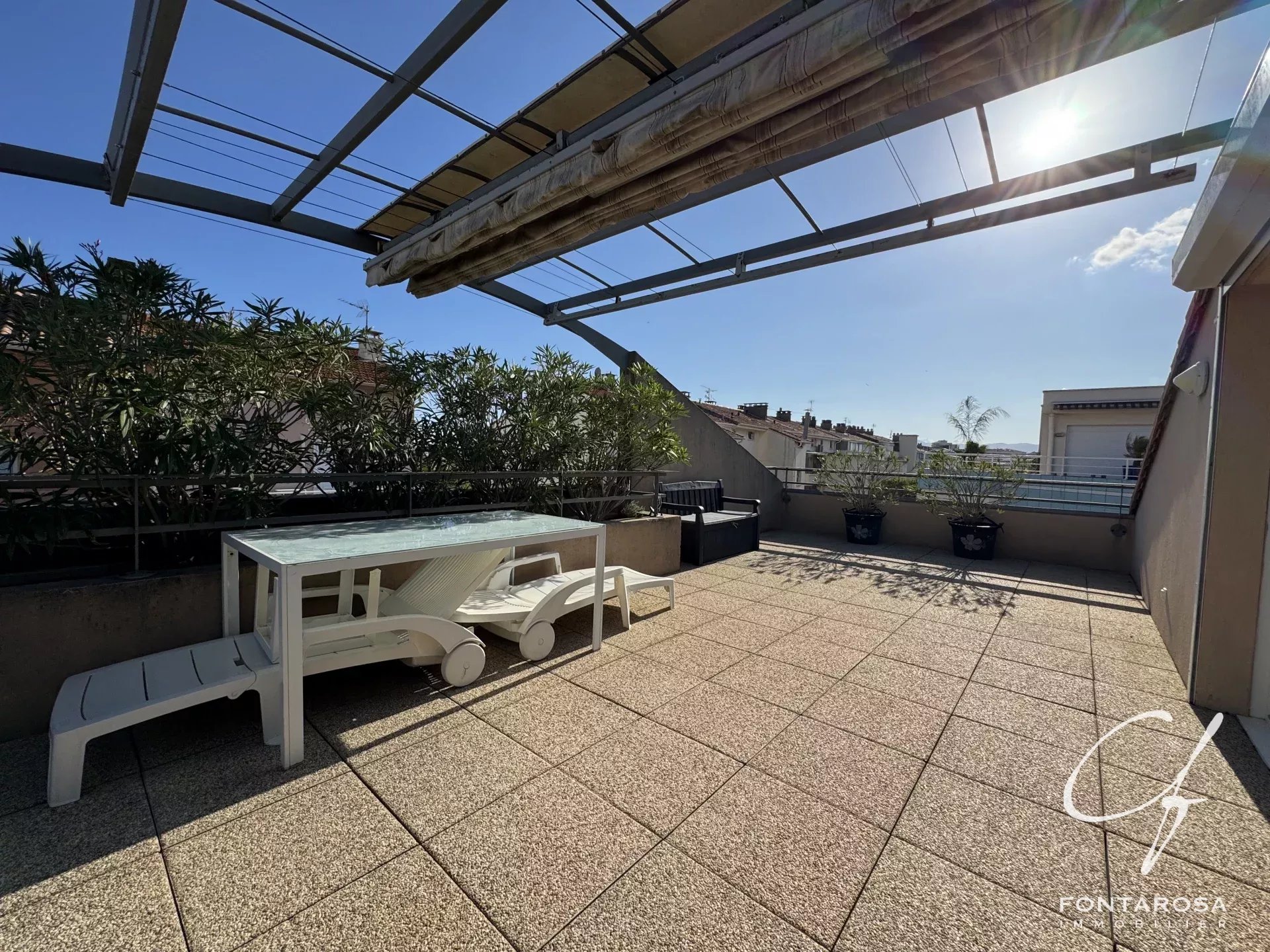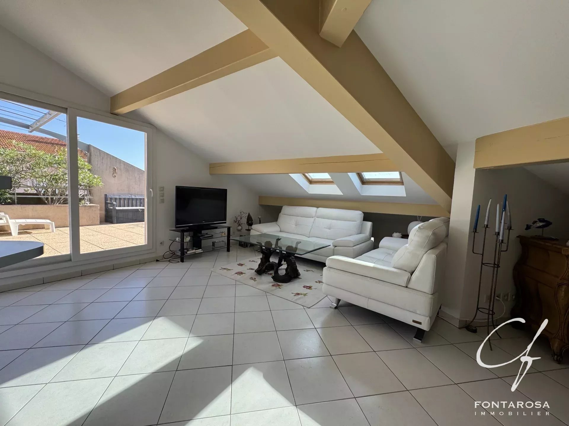 Scoprite questo magnifico appartamento duplex all'ultimo piano di Fréjus Plage, ideale per chi cerca un luogo tranquillo e confortevole in cui vivere.