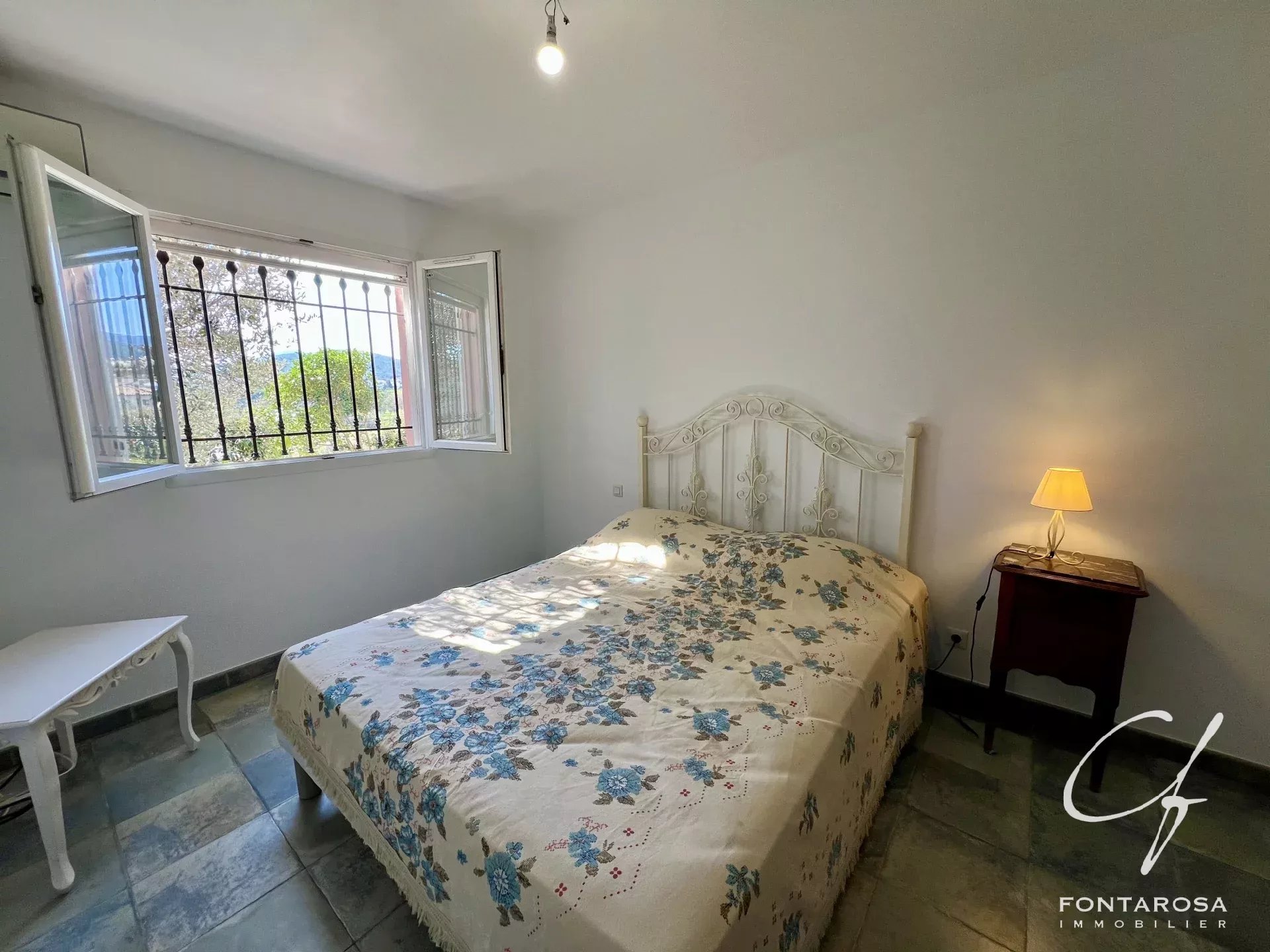 Al piano superiore si trova la suite padronale che si apre su una terrazza coperta con una magnifica vista sul verde e sulla roccia di Roquebrune.