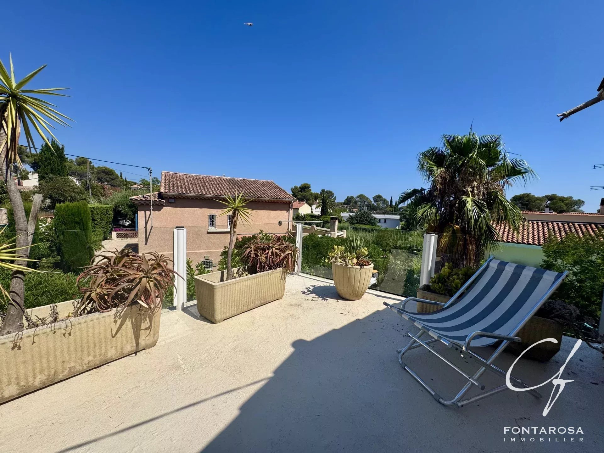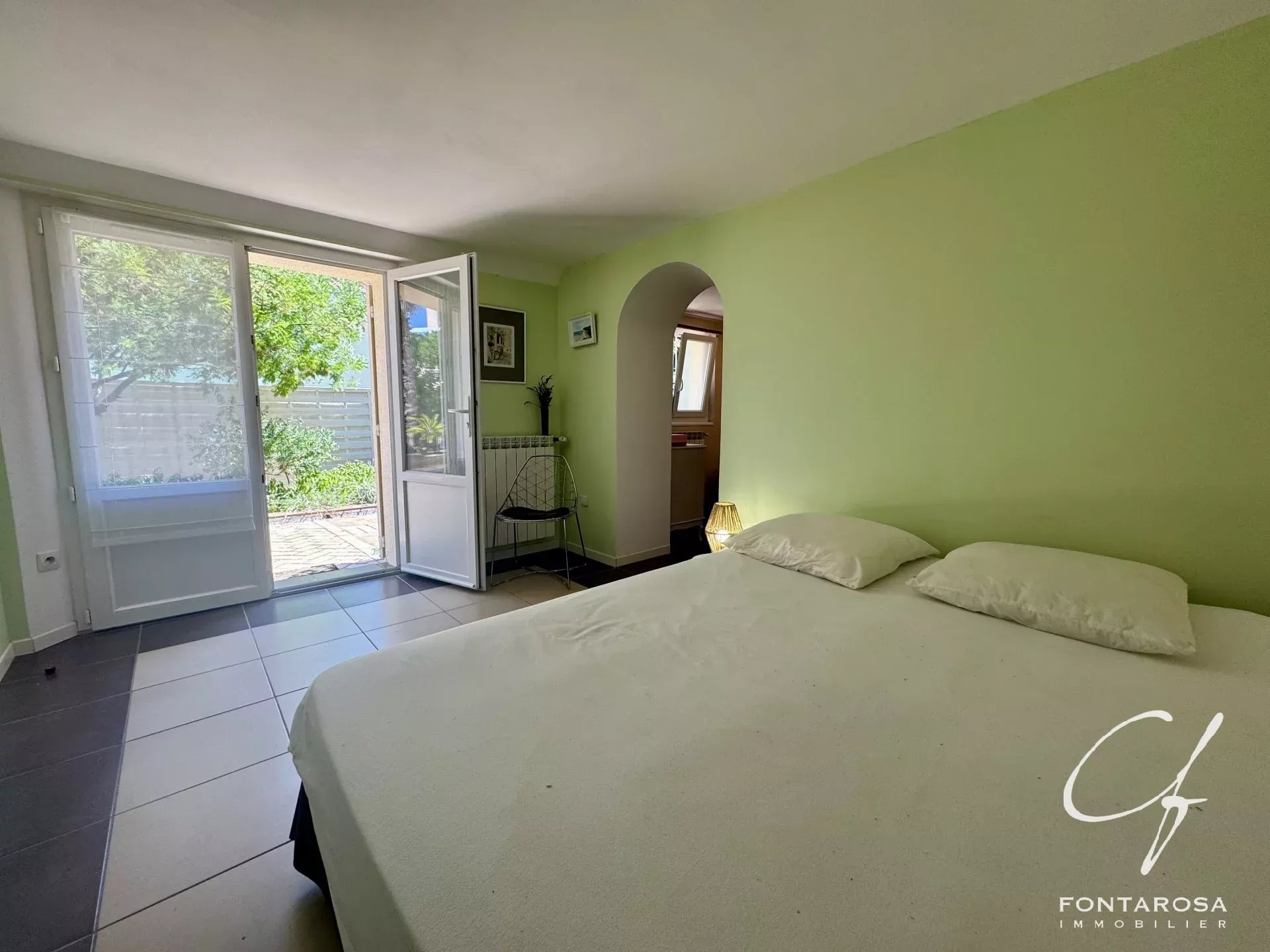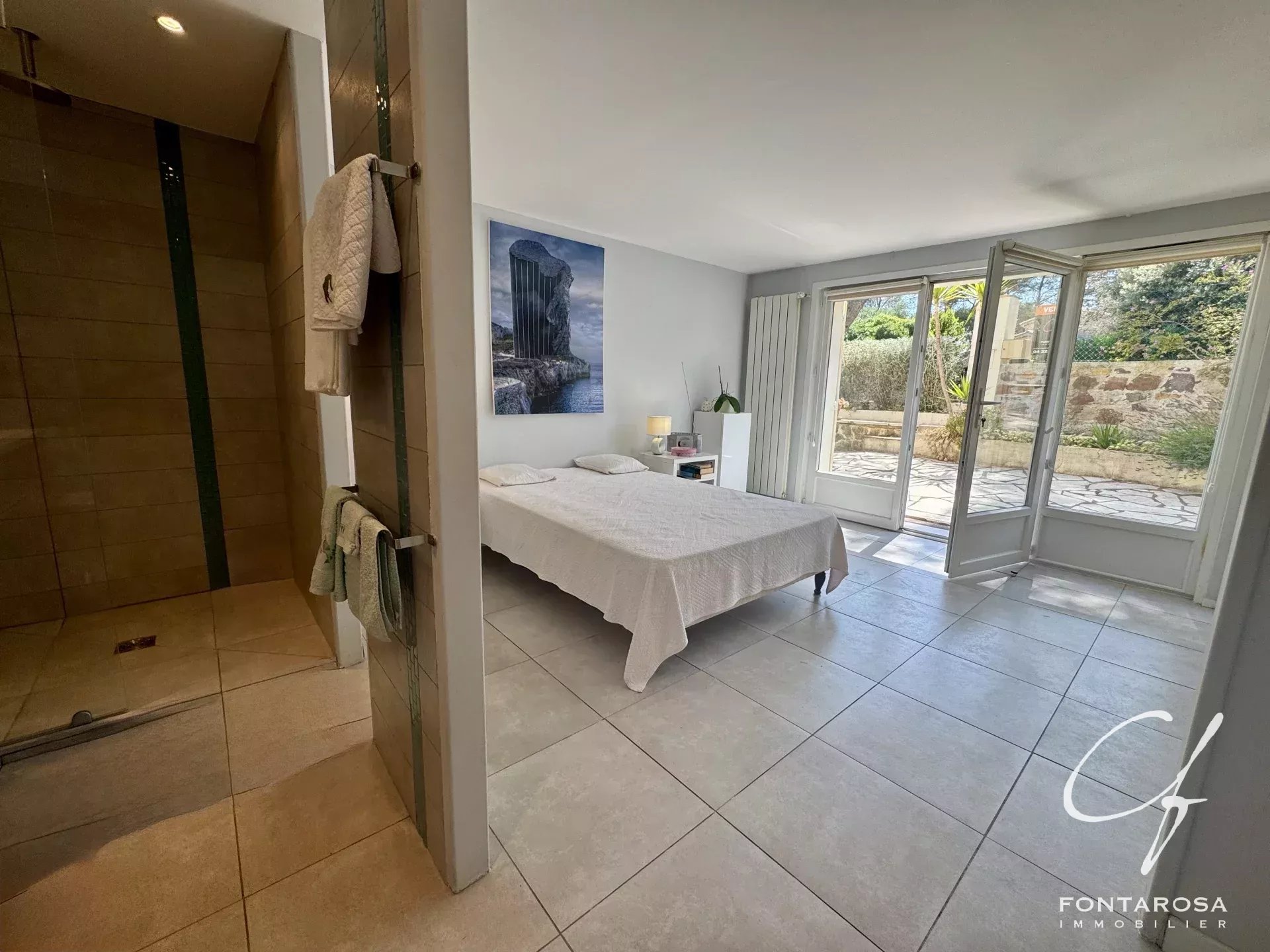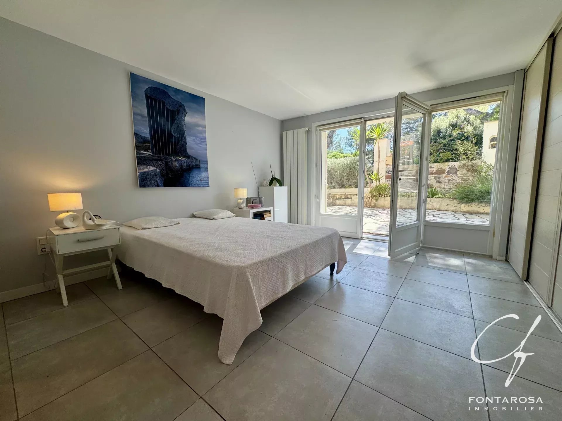 Un jardin soigné, des essences méditerranéennes, et la proximité immédiate de la mer font de cette villa un bien rare sur le marché.