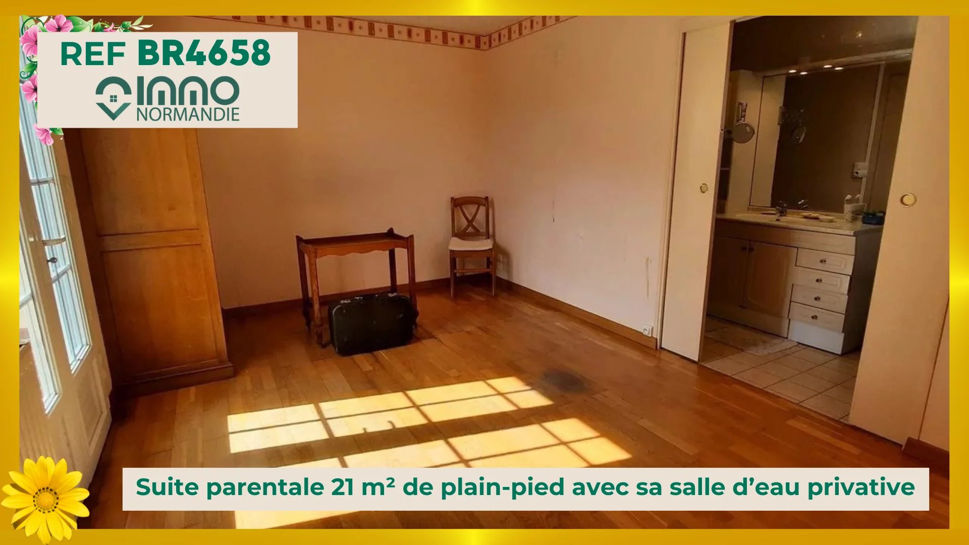 Vidéo disponible sur notre site immonormandie.fr L'Agence IMMO NORMANDIE vous propose une BELLE MAISON FAMILIALE - 4 CHAMBRES dont une suite parentale au RDC * En campagne, non isolée et sans vis à vis ; * A 8 minutes des commerces, écoles, collège ; Comprenant : Au rez-de-chaussée de PLAIN-PIED : - Entrée avec toilettes ; - Double séjour lumineux (34m²) ; - Cuisine aménagée dînatoire (18m²) suivie de son arrière cuisine/cellier/chaufferie avec accès extérieur ; - Suite parentale au RDC (15m²) avec sa salle de douche (6.30m²) et toilettes privatives ; A l'étage : - Palier spacieux ; - 3 chambres (19m² - 16m² - 11m²) ; - Salle de bains ; - Toilettes ; Double vitrage avec volets électriques roulants ; Chauffage central ; A l'extérieur : - Terrasse - Terrain clos (6400m²) - Double charretterie avec grenier sur l'ensemble (40m²) - Garage avec porte motorisée (28m²) - Cellier et cave - Atelier (électricité) - Réserve d'eaux pluviales - Assainissement fosse toutes eaux - Portail motorisé Agence IMMO-NORMANDIE 4 agences Pour vous accompagner dans votre Projet immobilier -- LA BARRE EN OUCHE -- BEAUMONT LE ROGER -- -- BRIONNE -- THIBERVILLE -- Retrouvez toutes nos annonces et vidéos sur notre site www.immonormandie.fr Contact : Benjamin ROMUALD -06.33.72.85.24- entrepreneur individuel (E.I.) agissant en sa qualité d'agent commercial, inscrit au Registre Spécial des Agents Commerciaux sous le numéro RSAC 812 264 455 00013