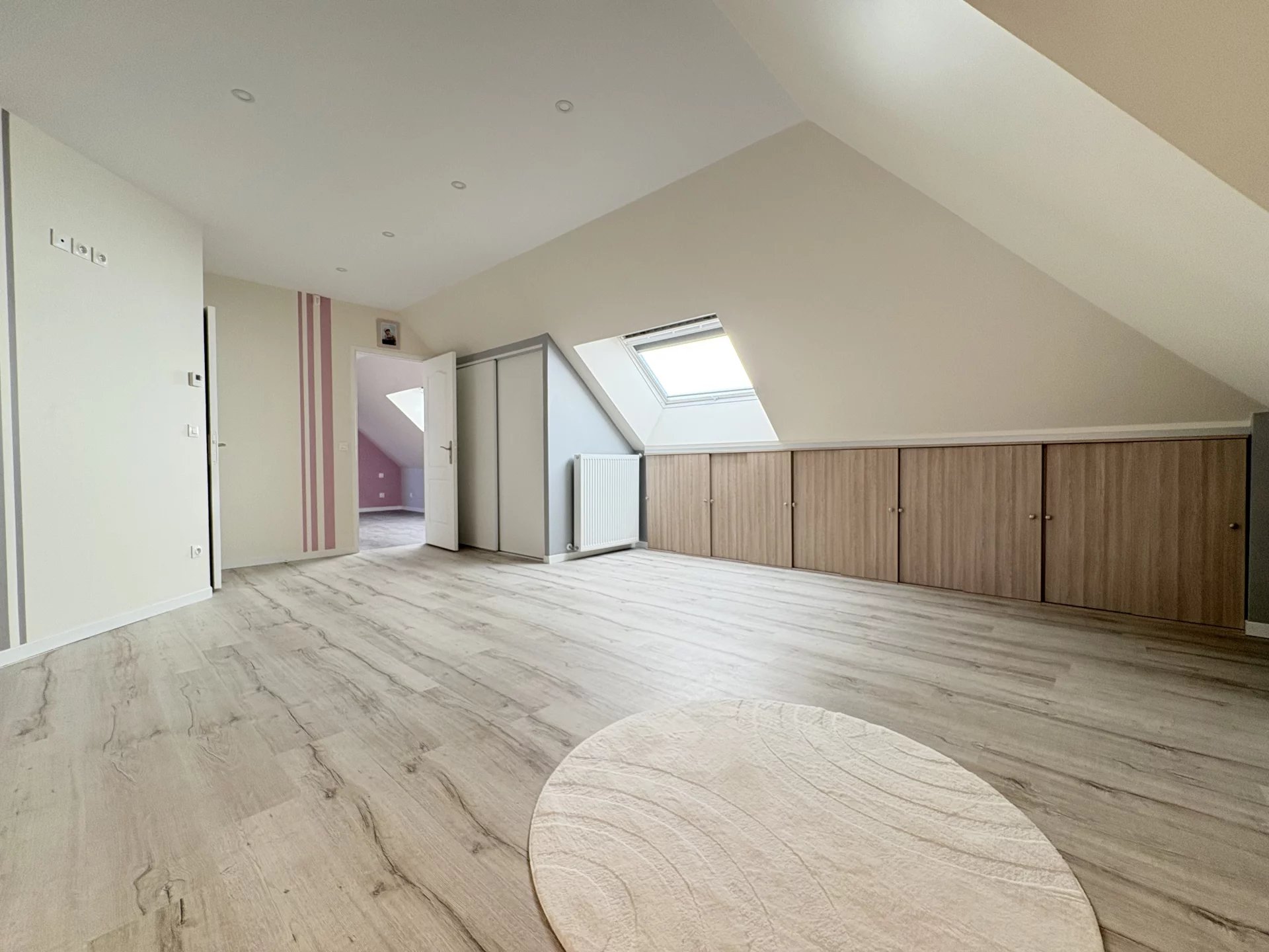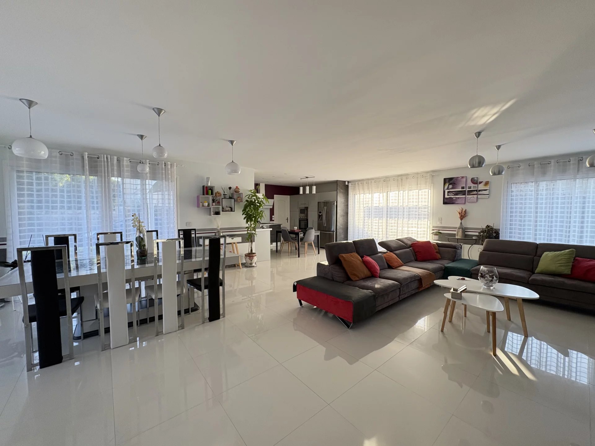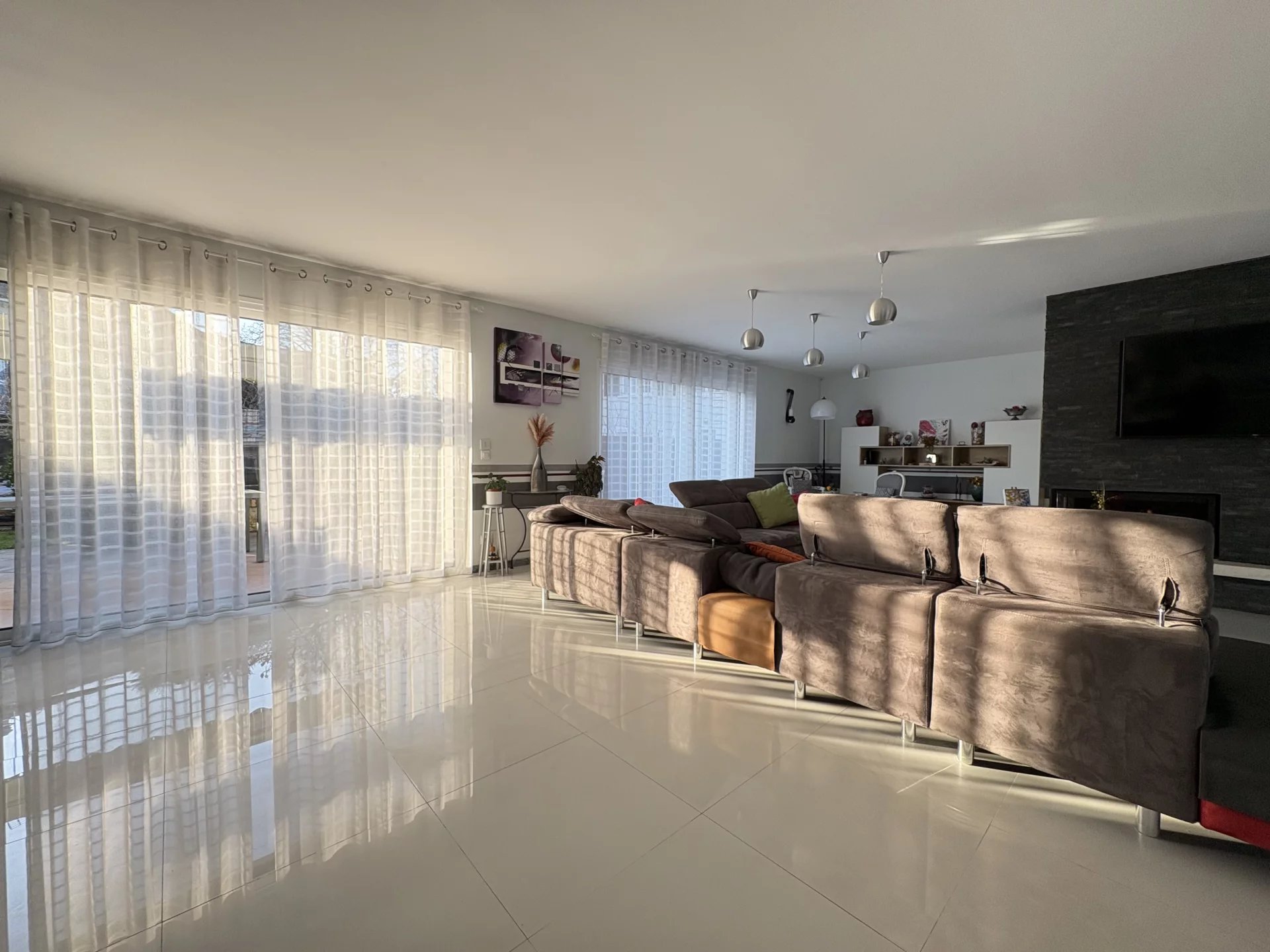 Immobilière Thomas Depresle vous propose une maison de 240 m² habitables sur semi-sous-sol de 2020, édifiée sur un terrain de 775 m². Dès l'entrée, vous découvrirez une vaste pièce de vie d'environ 80 m² très lumineuse, comprenant une cheminée, une cuisine ouverte entièrement équipée, ainsi qu'un cellier/buanderie donnant accès au garage, idéal pour y déposer vos courses et vous déshabiller avant d'entrer chez vous. Vous trouverez au rez-de-chaussée une suite parentale de 45 m² avec dressing et salle de bains équipée d'une douche et d'une baignoire (possibilité d'aménager deux chambres). Un WC séparé complète ce niveau, permettant aux invités d'éviter de pénétrer dans votre espace nuit. Toutes les pièces donnent sur la terrasse qui fait le tour de la maison.