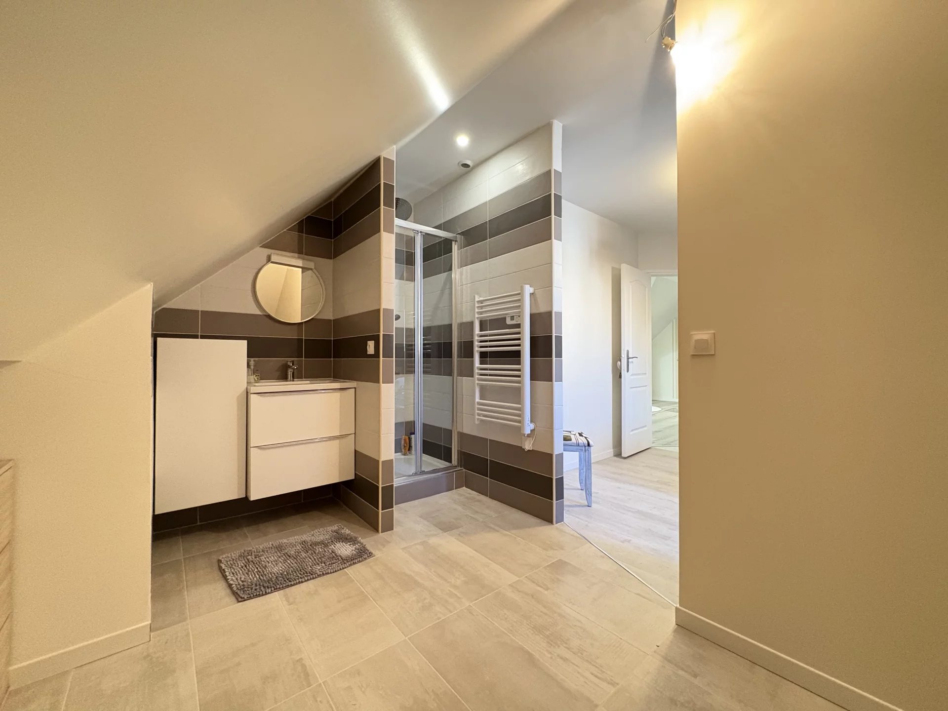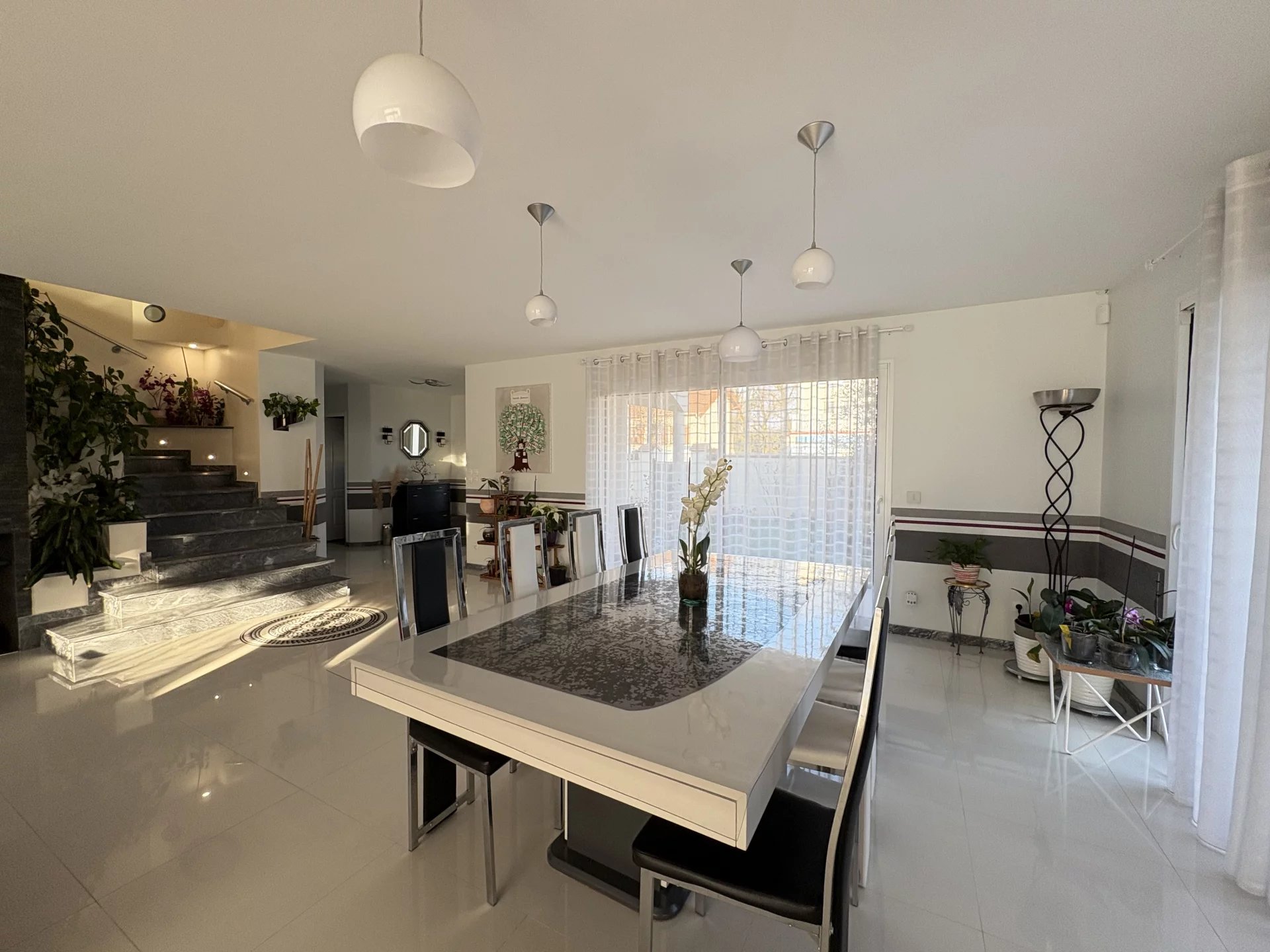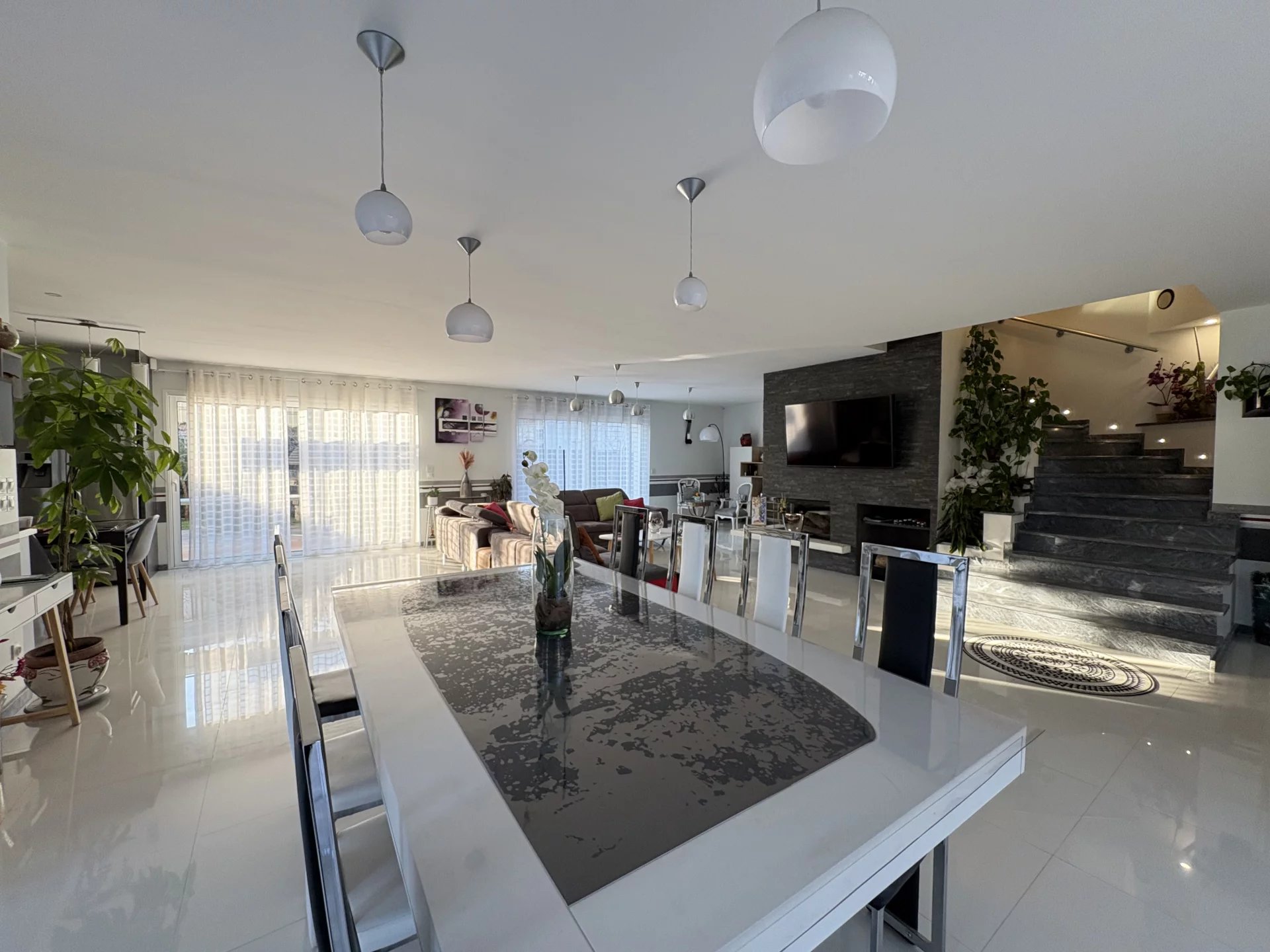 Immobilière Thomas Depresle vous propose une maison de 240 m² habitables sur semi-sous-sol de 2020, édifiée sur un terrain de 775 m². Dès l'entrée, vous découvrirez une vaste pièce de vie d'environ 80 m² très lumineuse, comprenant une cheminée, une cuisine ouverte entièrement équipée, ainsi qu'un cellier/buanderie donnant accès au garage, idéal pour y déposer vos courses et vous déshabiller avant d'entrer chez vous. Vous trouverez au rez-de-chaussée une suite parentale de 45 m² avec dressing et salle de bains équipée d'une douche et d'une baignoire (possibilité d'aménager deux chambres). Un WC séparé complète ce niveau, permettant aux invités d'éviter de pénétrer dans votre espace nuit. Toutes les pièces donnent sur la terrasse qui fait le tour de la maison.