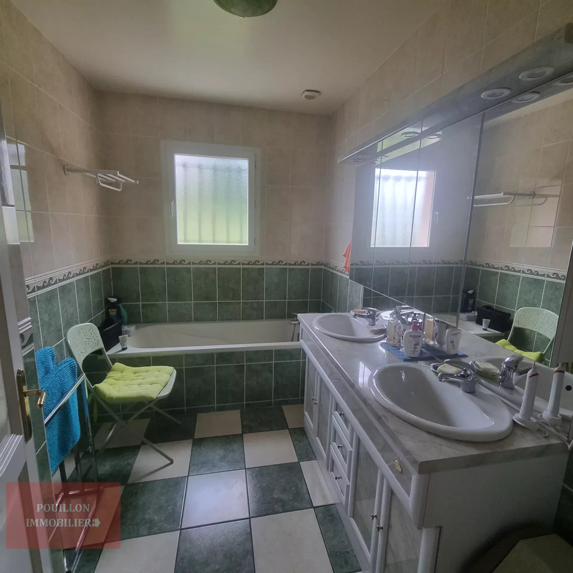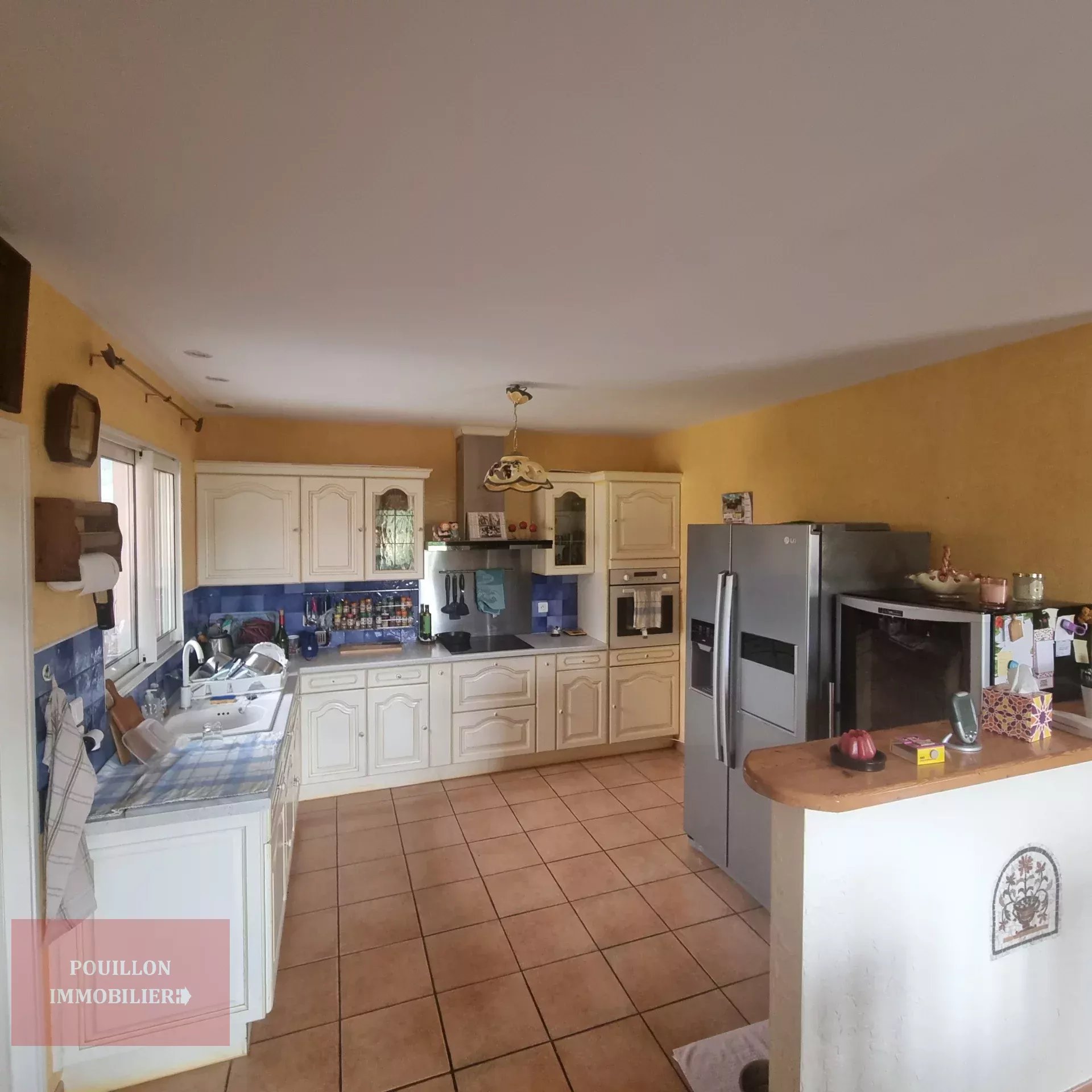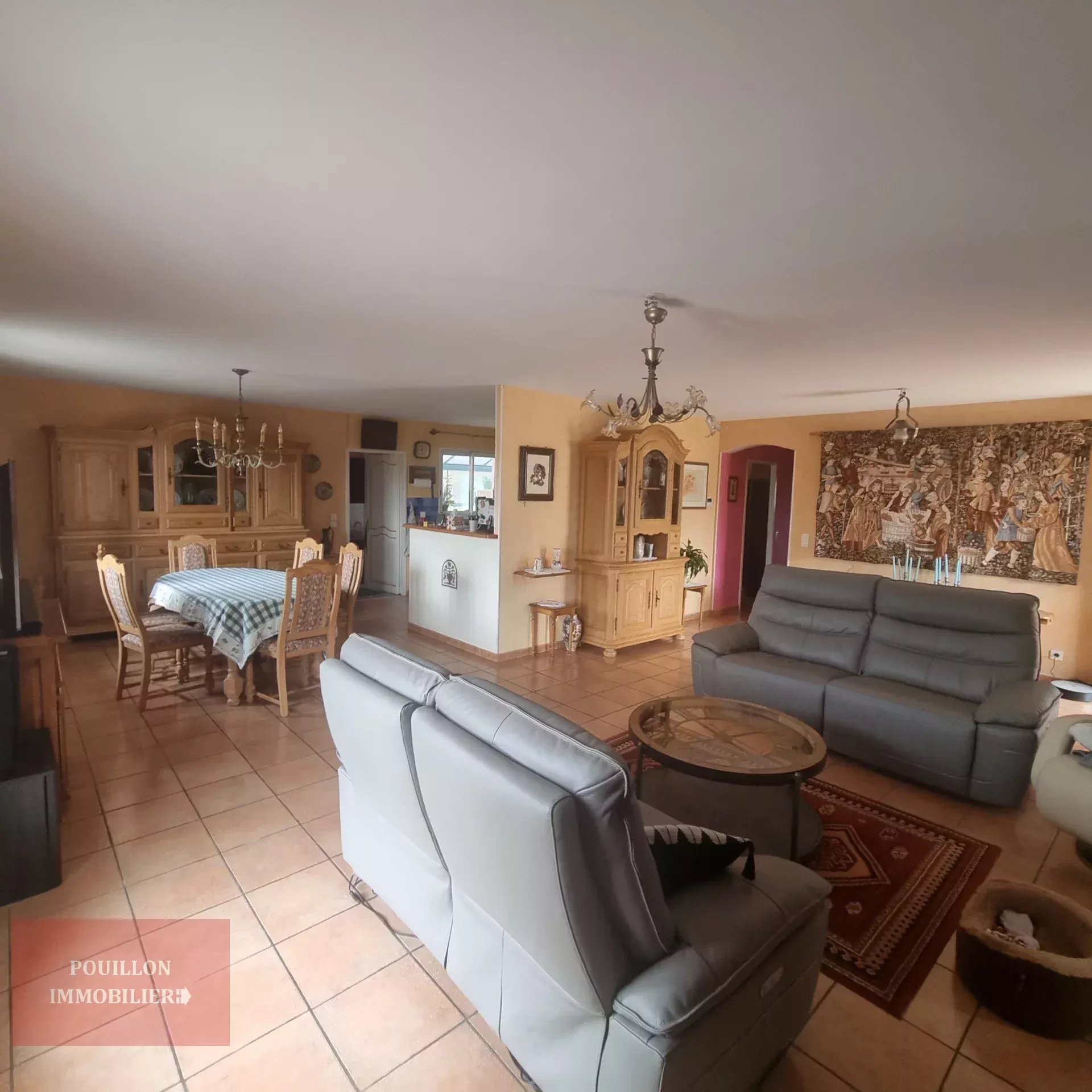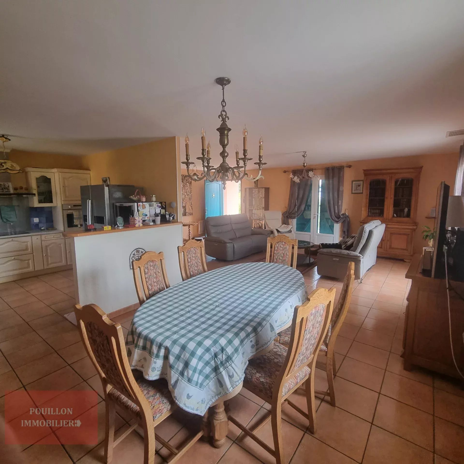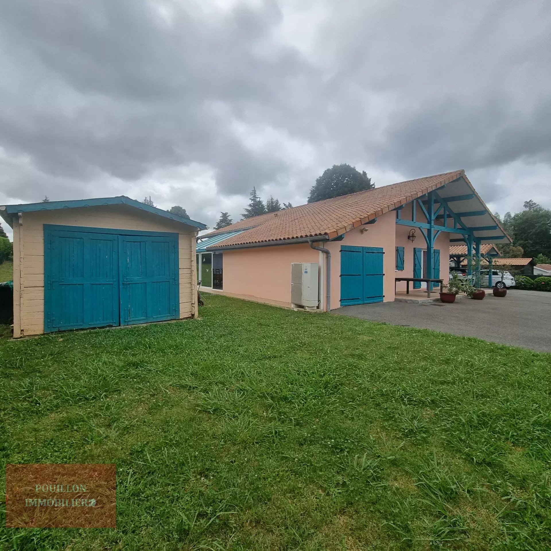 Landaise de plain-pied de 140m² comprenant 4 chambres, séjour/cuisine de 58 m², salle de bain avec douche, toilettes, cellier et véranda de 22m² - Climatisation réversible. Terrain de plus de 1700m²-