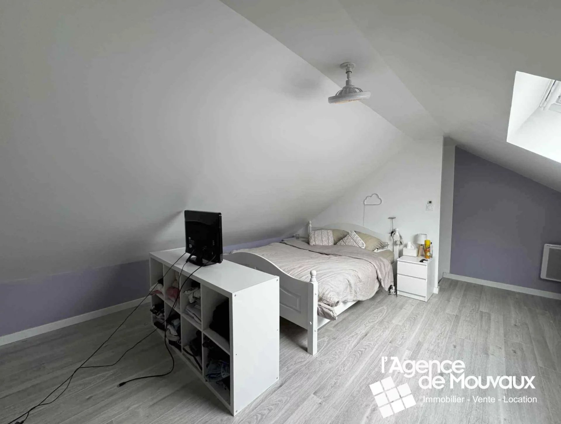 L’étage propose une grande chambre supplémentaire, idéale pour un adolescent, un bureau ou une chambre d’amis.