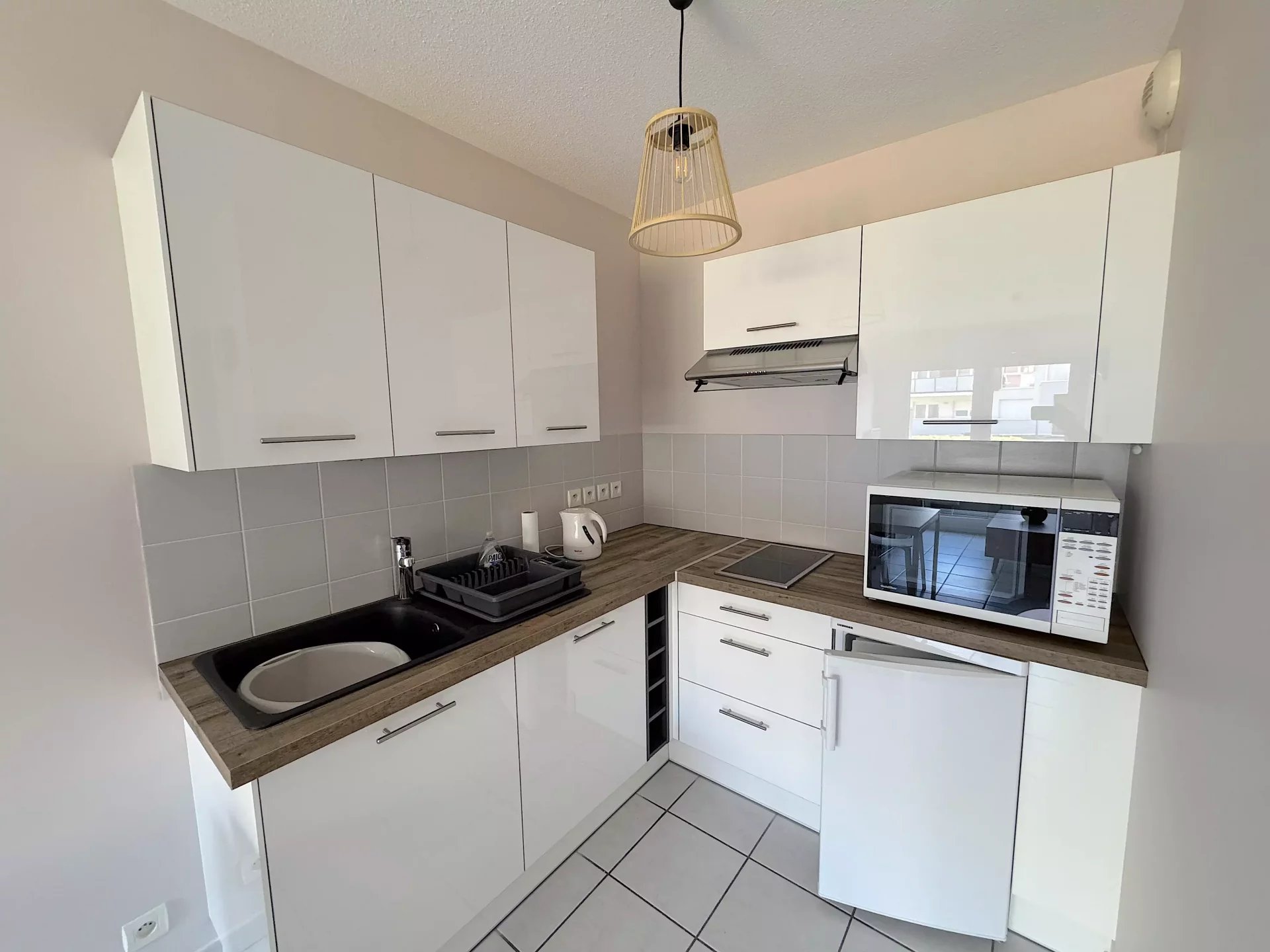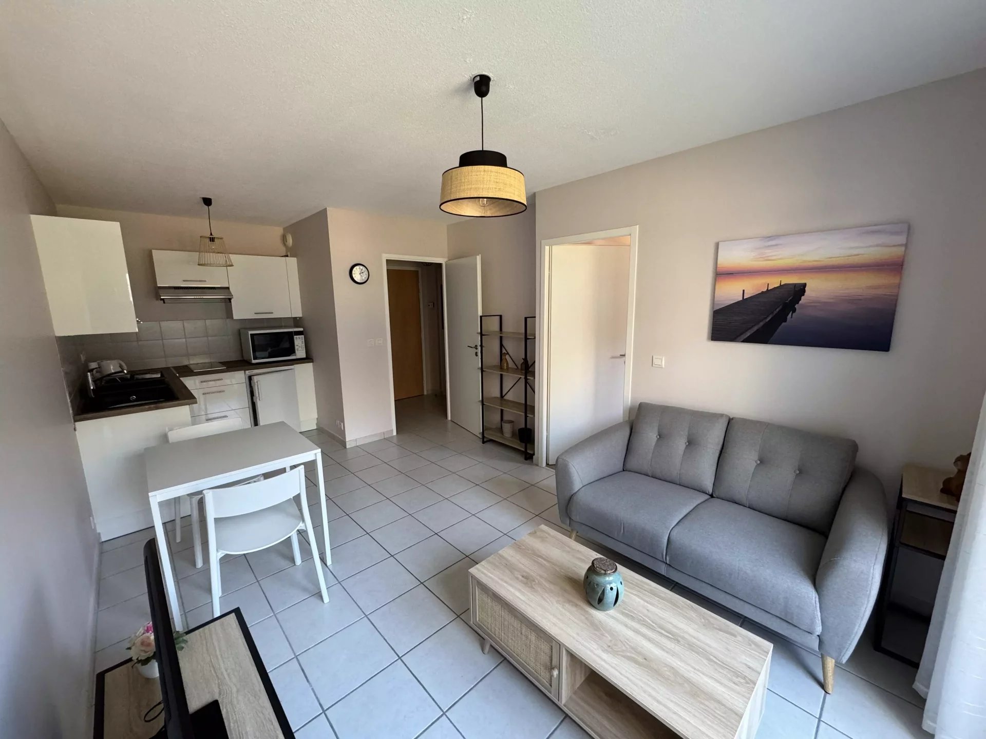 Proche du centre-ville et de la gare, Dans une résidence récente, appartement T2 meublé en très bon état général composé d'une entrée, une pièce de vie avec coin cuisine, une chambre, une salle de bains et WC séparés. En annexe, un balcon et un garage.